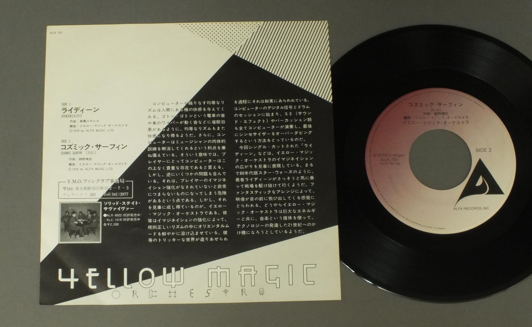 YELLO MAGIC ORCHESTRAイエロー・マジック・オーケストラ/RYDEENライディーン ALR701 製造国:日本盤 / Media:7inch外観:EX盤の状態:EX+ 価格(税込):¥550(売約済) 送料 7inch:定形外郵便 360円~LP:定形外郵便 660円~送料は、注文の最終画面で確認頂けます。 > > YELLO MAGIC ORCHESTRA/RYDEEN 外観 (EX)特記事項:ヨレが少し。外観EXの共通説明:ダメージが限定的。中古品としては保存状態がよい方。シミ、ヨゴレ、スレ 少し~軽度。 盤の状態 (EX+)特記事項:薄いスリキズ・スレ少し。一見してきれいな状態です。盤EX+の共通説明:盤面の極薄いスリキズ、スレ少し程度 音に出そうなものは無いように見える(極軽微なソフトティック音は除く)。 Tweet それぞれの画像をクリックすると、大きい写真が見られます こちらの商品もお勧めです 770円 MIYUKI NAKAJIMA中島みゆき / OAKERINASAIおかえりなさい 1,320円 FUKINOTOふきのとう / SAIJIKI歳時記 880円 SUGIYAMA-K杉山清貴 / KONA WEATHER 880円 YUMI MATSUTOYA松任谷由実 / RE INCARNATIONリ・インカーネイション 880円 MASA TAKAGI高木麻早 / 1st ALBUM高木麻早 990円 TAKASHI SATO佐藤隆 / UN HOMME ET UNE FEMME男と女 550円 SOUTHERN ALL STARSサザンオールスターズ / KAMAKURAKAMAKURA 1,540円 AKIO DOBASHI土橋安騎夫 / CHRONICLESクロニクルズ