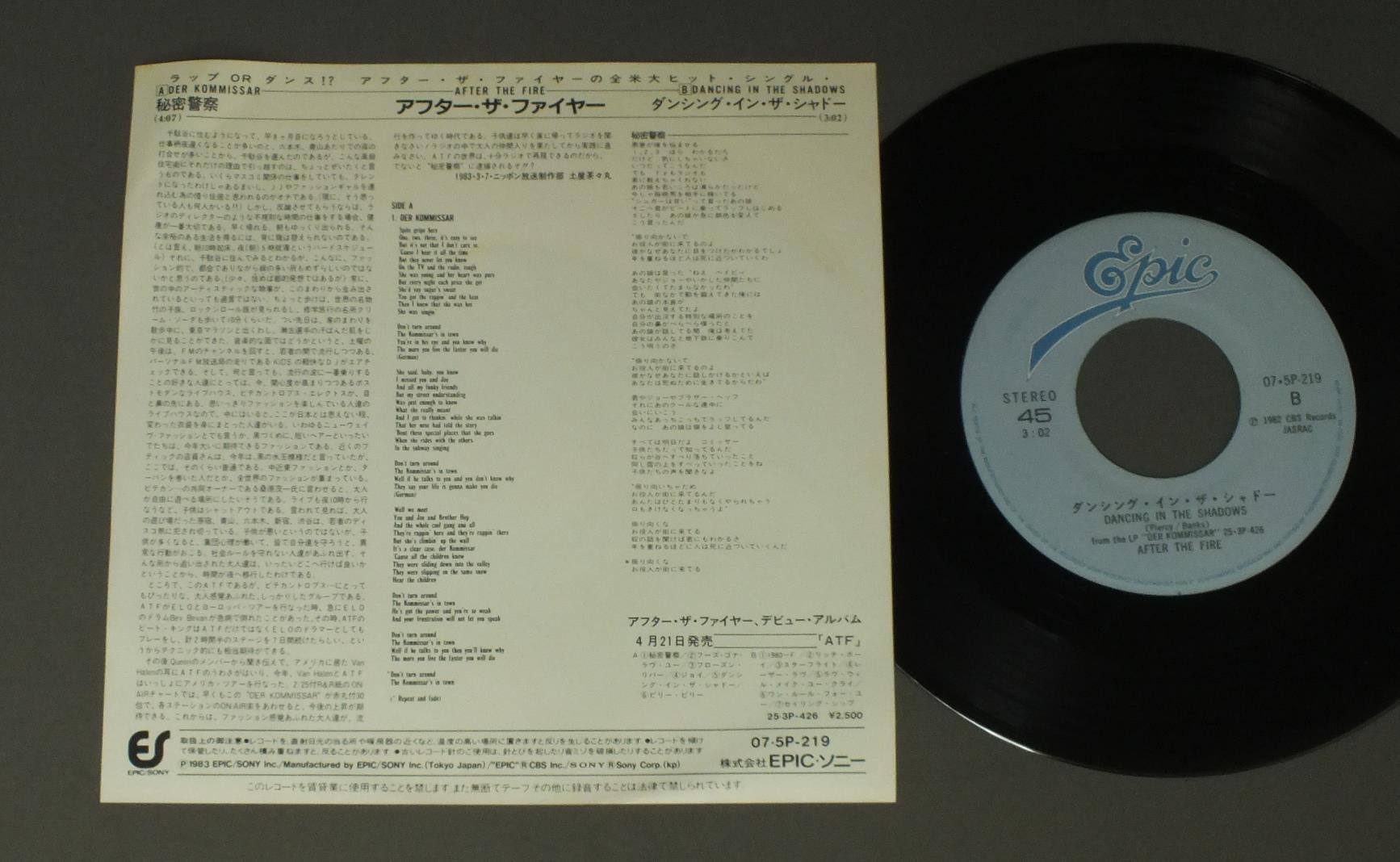 AFTER THE FIREアフター・ザ・ファイヤー/DER KOMMISSAR秘密警察 07・5P219 製造国:日本盤 / Media:7inch外観:EX盤の状態:EX 価格(税込):¥880 送料 7inch:定形外郵便 360円~LP:定形外郵便 660円~送料は、注文の最終画面で確認頂けます。 > > AFTER THE FIRE/DER KOMMISSAR 外観 (EX)特記事項:ヨレが少し。外観EXの共通説明:ダメージが限定的。中古品としては保存状態がよい方。シミ、ヨゴレ、スレ 少し~軽度。 盤の状態 (EX)特記事項:薄いスリキズ・スレ軽くある感じ。軽微なものの様子です。盤EXの共通説明:盤面のスリキズが薄いものが少し~軽度 音に出そうなものは無いように見える(軽微なソフトティック音は除く)。 Tweet それぞれの画像をクリックすると、大きい写真が見られます こちらの商品もお勧めです 1,210円 GO WESTゴー・ウェスト / MORE BANGS & CRASHESモア・バン ! アンド・クラッシュ ! 1,210円 OXOオクソ / 1st ALBUMオクソ 440円 WILD BLUEワイルド・ブルー / NO MORE JINXノー・モア・ジンクス 440円 BELLE STARSベル・スターズ / BELLE STARSベル・スターズ 1,320円 TAZMANIAN DEVILSタズマニアン・デヴィルズ / TAZMANIAN DEVILSアメリカン・ドリームを探して 550円 CORBIN HANNER BANDコーバン・ハナー・バンド / SON OF AMERICAサン・オブ・アメリカ 770円 CULTURE CLUBカルチャー・クラブ / WAR SONG戦争のうた 770円 CULTUTE CLUB / HOUSE ON FIRE