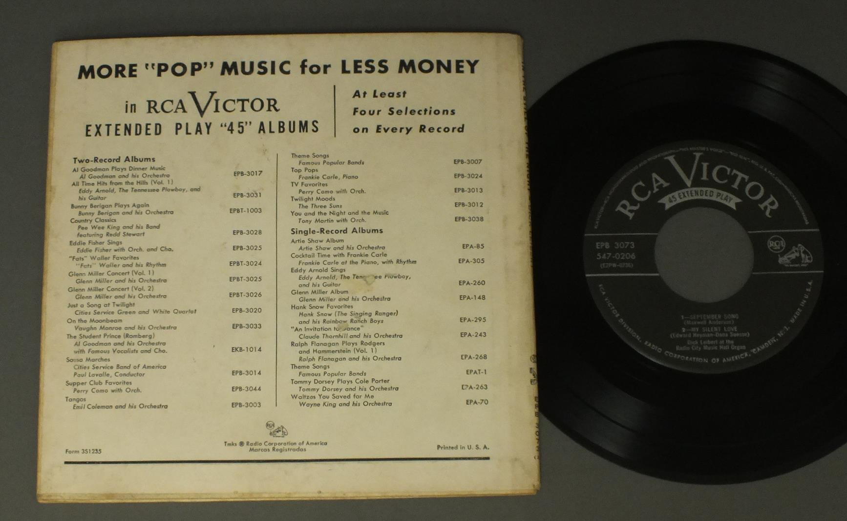 DICK LEIBERT/IN THE STILL OF THE NIGHT EPB3073 製造国:米国盤 / Media:7inch外観:EX-盤の状態:EX 価格(税込):¥1,320(売約済) 送料 7inch:定形外郵便 360円~LP:定形外郵便 660円~送料は、注文の最終画面で確認頂けます。 レコード検索 > > DICK LEIBERT/IN THE STILL OF THE NIGHT 外観 (EX-)特記事項:背は、上部に小さな破れ。角やヘリスレ多め。見開きは、中心にシミ大。外観EX-の共通説明:ダメージ軽度~多少。 中古品としては普通の状態。シミ、ヨゴレ、スレなど軽く~多少。 盤の状態 (EX)特記事項:薄いスリキズ・スレ軽くある感じ。軽微なものの様子です。盤EXの共通説明:盤面のスリキズが薄いものが少し~軽度 音に出そうなものは無いように見える(軽微なソフトティック音は除く)。 その他:2枚組。 Tweet それぞれの画像をクリックすると、大きい写真が見られます こちらの商品もお勧めです 440円 FRANK DAVENPORT AND HIS ORCHESTRA / GOLDEN ERA OF GLENN MILLER 440円 WARREN COVINGTON ORCHESTRA / WARREN COVINGTON ORCHESTRA PLAYS HITS OF THE 60`S VOL.1 770円 OSCAR PETERSON / GOLDEN ACHIVE SERIES 550円 TEDDY WILLSON etc / GREAT SWING JAM SESSIONS RECORDED 1940 770円 SADAO WATANABE渡辺貞夫 / HOW`S EVERYTHING ( LIVE AT BUDOKAN)武道館ライブ 770円 RED NORVO / TIME IN HIS HANDS 1,320円 ERNIE WATTS / SANCTUARY 440円 WORLD`S GREATEST JAZZ BAND / WORLD`S GREATEST JAZZ BAND PLAYS RODGERS & HART