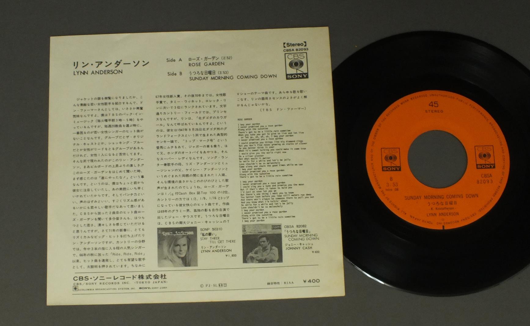 LYNN ANDERSONリン・アンダーソン/ROSE GARDENローズ・ガーデン CBSA82093 製造国:日本盤 / Media:7inch外観:EX盤の状態:EX 価格(税込):¥440(売約済) 送料 7inch:定形外郵便 360円~LP:定形外郵便 660円~送料は、注文の最終画面で確認頂けます。 > > LYNN ANDERSON/ROSE GARDEN 外観 (EX)特記事項:ヨレや薄いシミが少し。外観EXの共通説明:ダメージが限定的。中古品としては保存状態がよい方。シミ、ヨゴレ、スレ 少し~軽度。 盤の状態 (EX)特記事項:薄いスリキズ・スレ少しある感じ。一見してきれいな感じです。盤EXの共通説明:盤面のスリキズが薄いものが少し~軽度 音に出そうなものは無いように見える(軽微なソフトティック音は除く)。 Tweet それぞれの画像をクリックすると、大きい写真が見られます こちらの商品もお勧めです 1,320円 MADONNAマドンナ / LIKE A VIRGINライク・ア・ヴァージン 550円 OLIVIA NEWTON-JOHNオリビア・ニュートンジョン / PHYSICAL虹色の扉 770円 PAT BENATARパット・べネター / GET NERVOUSゲット・ナーヴァス 880円 ORIVIA NEWTON-JOHNオリビア・ニュートン・ジョン / DON`T STOP BELIEVIN`たそがれの恋 990円 DOLLY PARTON-ROSE MADDOXドリー・パートン-ローズ・マドックス-ドティー・ウェスト-メルバ・モンゴメリー 他 / BEST OF FEMALE SINGERS女性シンガーのすべて 1,320円 JUDY COLLINSジュディ・コリンズ / TRUE STORIES真実と夢 880円 DAMIAダミア / CHANSON BEST COLLECTION 1500 DAMIAシャンソン・ベスト・コレクション1500 ダミア-暗い日曜日 1,210円 KIM WILDEキム・ワイルド / CATCH AS CATCH CANキャッチ・アズ・キャッチ・キャン