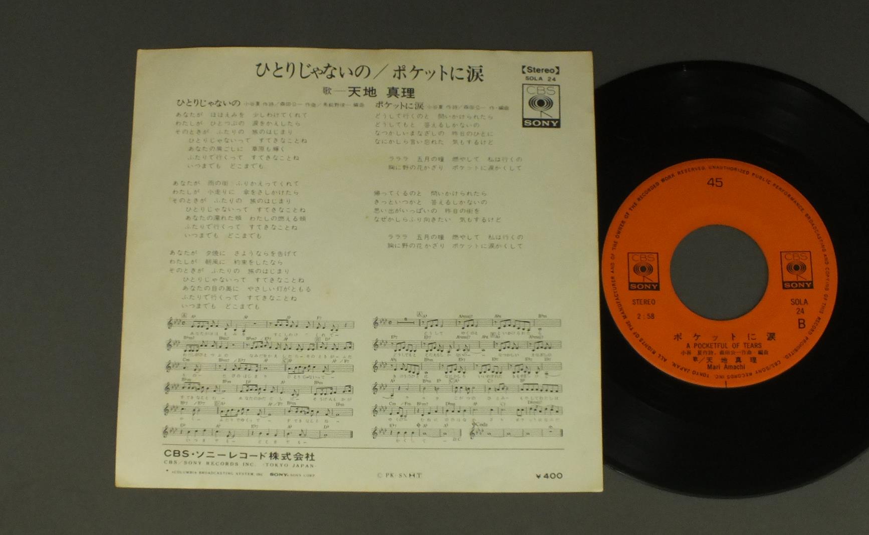 MARI AMACHI天地真理/YOUR SMILE. MY TEARSひとりじゃないの SOLA24 製造国:日本盤 / Media:7inch外観:EX-盤の状態:VG+ 価格(税込):¥330 送料 7inch:定形外郵便 360円~LP:定形外郵便 660円~送料は、注文の最終画面で確認頂けます。 > > MARI AMACHI/YOUR SMILE. MY TEARS 外観 (EX-)特記事項:薄いシミやヨレ多少有り。外観EX-の共通説明:ダメージ軽度~多少。 中古品としては普通の状態。シミ、ヨゴレ、スレなど軽く~多少。 盤の状態 (VG+)特記事項:B面にスレキズ有り。多少プチ出そうな感じ。盤VG+の共通説明:盤面にスリキズが多少~やや有り、音に出そうなものも多少ある。 Tweet それぞれの画像をクリックすると、大きい写真が見られます こちらの商品もお勧めです 1,650円 HAJIME TACHIBANA立花はじめ / H・マイナー 帯付 550円 MIKI ASAKURA麻倉未稀 / HERO & HEROINEHERO & HEROINE 1,650円 YOSHIKO SAGA嵯峨美子 / ANATANIあなたに 1,320円 TAKASHI SATO佐藤隆 / NUIT DU SAMEDI ET MATIN DU DIMANCHE土曜の夜と日曜の朝 1,210円 CANDIESキャンディーズ / SOUSHUNPU 早春譜 990円 SQUAREスクェア / ADVENTURESアドヴェンチャー 1,210円 MAYUMI ITSUWA五輪真弓 / SHIOSAI潮騒 770円 JAP`S GAP`Sジャップス・ギャップス / JAP`S GAP`Sジャップス・ギャップス
