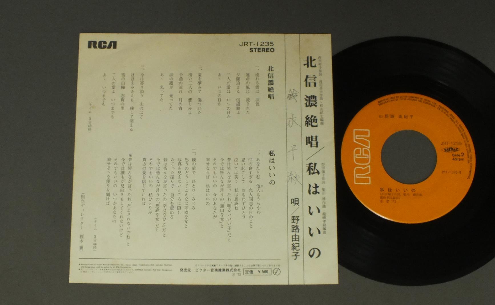 YUKIKO NOJI野路由紀子/KITASHINANO ZESSHO北信濃絶唱 JRT1235 製造国:日本盤 / Media:7inch外観:EX-盤の状態:EX 価格(税込):¥330(売約済) 送料 7inch:定形外郵便 360円~LP:定形外郵便 660円~送料は、注文の最終画面で確認頂けます。 > > YUKIKO NOJI/KITASHINANO ZESSHO 外観 (EX-)特記事項:ヨレが少し。裏側に書き込み有り。外観EX-の共通説明:ダメージ軽度~多少。 中古品としては普通の状態。シミ、ヨゴレ、スレなど軽く~多少。 盤の状態 (EX)特記事項:薄いスリキズ・スレ軽くある感じ。軽微なものの様子です。盤EXの共通説明:盤面のスリキズが薄いものが少し~軽度 音に出そうなものは無いように見える(軽微なソフトティック音は除く)。 Tweet それぞれの画像をクリックすると、大きい写真が見られます こちらの商品もお勧めです 770円 TULIPチューリップ / TULIP BEST心の旅 1,210円 ALFIEアルフィー / GREENHORN ( VICTOR YEARS 1974-76 ) + OUTER COVERGREENHORN ( VICTOR YEARS 1974-76 ) + オリジナル外袋 770円 KUMIKO YAMASHITA山下久美子 / BABY BABY 880円 YOUSUI INOUE井上陽水 / NO INVITATION SHOW招待状のないショー 770円 KUMIKO YAMASHITA山下久美子 / DANCIN` IN THE KITCHENダンシン・イン・ザ・キッチン 1,210円 MASA TAKAGI高木麻早 / 1st ALBUM思い出が多すぎて 1,210円 MOTOHARU SANO佐野元春 / BACK TO THE STREET 1,320円 CUTING EDGE / CUTING EDGE