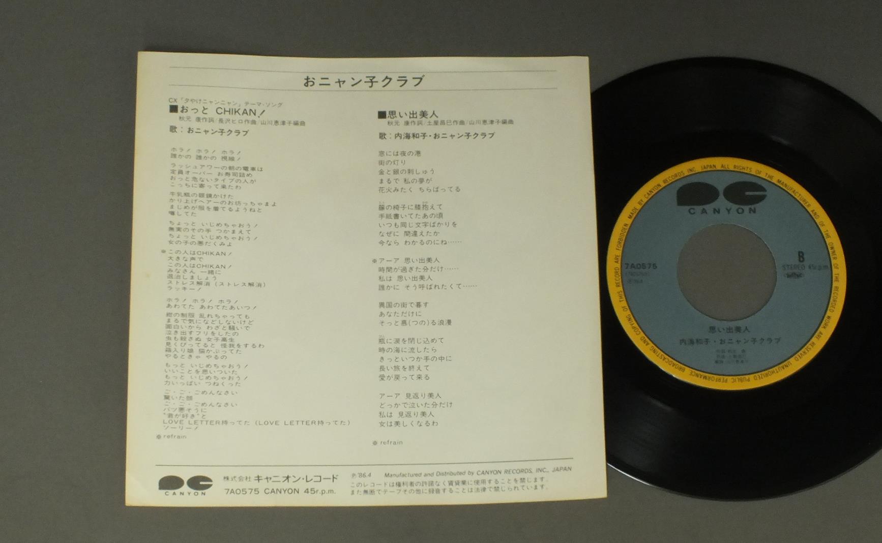 ONYANKO CLUBおニャン子クラブ/OH ! PERVERT !おっとCHIKAN! 7A0575 製造国:日本盤 / Media:7inch外観:EX盤の状態:EX+ 価格(税込):¥440 送料 7inch:定形外郵便 360円~LP:定形外郵便 660円~送料は、注文の最終画面で確認頂けます。 > > ONYANKO CLUB/OH ! PERVERT ! 外観 (EX)特記事項:折れ跡軽く有り。外観EXの共通説明:ダメージが限定的。中古品としては保存状態がよい方。シミ、ヨゴレ、スレ 少し~軽度。 盤の状態 (EX+)特記事項:薄いスリキズ・スレ少し。一見してきれいな状態です。盤EX+の共通説明:盤面の極薄いスリキズ、スレ少し程度 音に出そうなものは無いように見える(極軽微なソフトティック音は除く)。 Tweet それぞれの画像をクリックすると、大きい写真が見られます こちらの商品もお勧めです 770円 SHOKO SAWADA沢田聖子 / SHOKO LIVE 990円 PINK LADYピンク・レディー / CHALLENGE CONCERTチャレンジ・コンサート 1,210円 SONOKO KAWAI河合その子 / SIESTAシエスタ 1,210円 SONOKO KAWAI河合その子 / MODE DE SONOKO 550円 SONOKO KAWAI河合その子 / SONOKOその子 1,320円 MAKO ISHINO石野真子 / MY COLLECTIONマイ・コレクション 880円 YUMI MORIO森尾 由美 / YOU & ME 770円 TSUKASA ITOH伊藤つかさ / TSUKASA IN WONDERLANDふしぎの国のつかさ