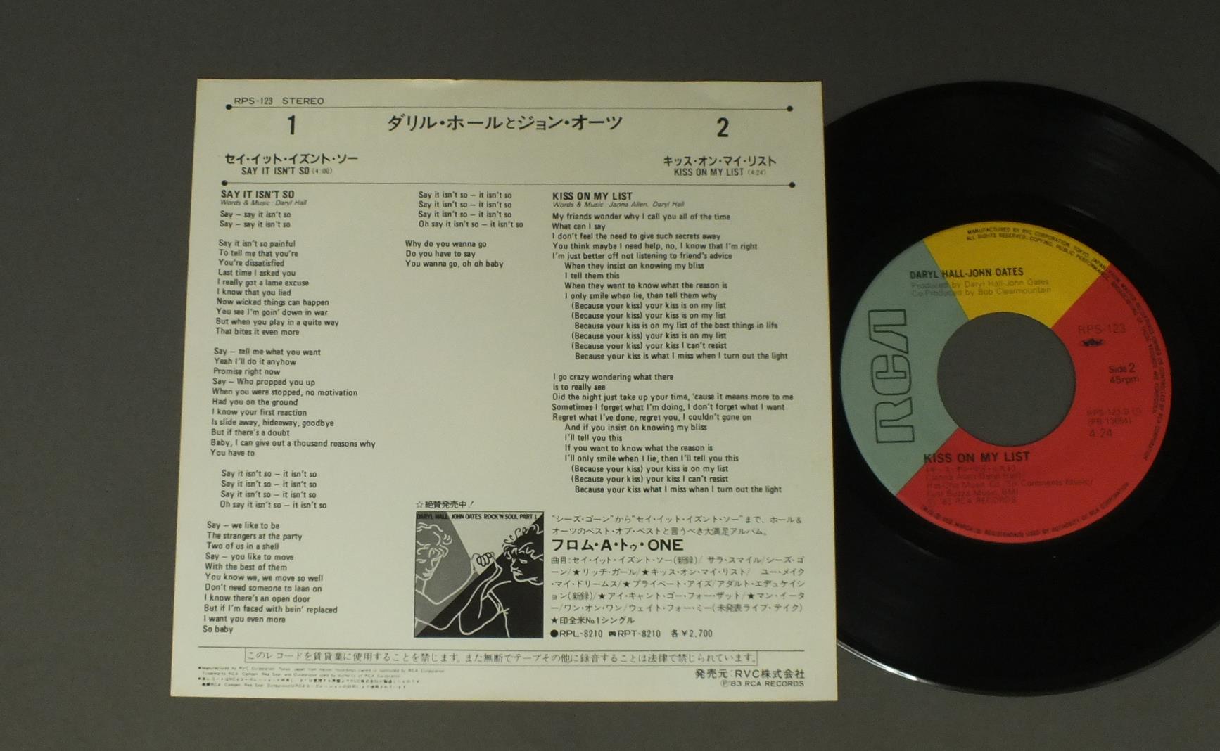 DARYL HALL JOHN OATESダリル・ホールとジョン・オーツ/SAY IT ISN`T SOセイ・イット・イズント・ソー RPS123 製造国:日本盤 / Media:7inch外観:EX+盤の状態:EX+ 価格(税込):¥330(売約済) 送料 7inch:定形外郵便 360円~LP:定形外郵便 660円~送料は、注文の最終画面で確認頂けます。 レコード検索 > ALL Genre > DARYL HALL JOHN OATES/SAY IT ISN`T SO 外観 (EX+)特記事項:特記なし。外観EX+の共通説明:中古としては美品、一見してきれいでダメージが軽微。シミ、ヨゴレ、スレ有っても僅か~少し。 盤の状態 (EX+)特記事項:薄いスリキズ・スレ少し。一見してきれいな状態です。盤EX+の共通説明:盤面の極薄いスリキズ、スレ少し程度 音に出そうなものは無いように見える(極軽微なソフトティック音は除く)。 Tweet それぞれの画像をクリックすると、大きい写真が見られます こちらの商品もお勧めです 990円 EMERSON LAKE & PALMERエマーソン・レイク & パーマー / WORKS VOL 1ELP四部作 1,210円 VANGELISヴァンゲリス / ALBEDO 039反射率 039 880円 ASIAエイジア / ALPHAアルファ 990円 UKUK / UK憂国の四士 660円 EMERSON LAKE&PALMERエマーソン・レイク & パーマー / PICTURES AT AN EXHIBITION展覧会の絵 880円 RICK WAKEMANリック・ウェイクマン / JOURNEY TO THE CENTRE OF THE EARTH地底探検 770円 ASIAエイジア / ALFHAアルファ 1,210円 RICK WAKEMANリック・ウェイクマン / JOURNEY TO THE CENTER OF THE EARTH地底探検 ライブ