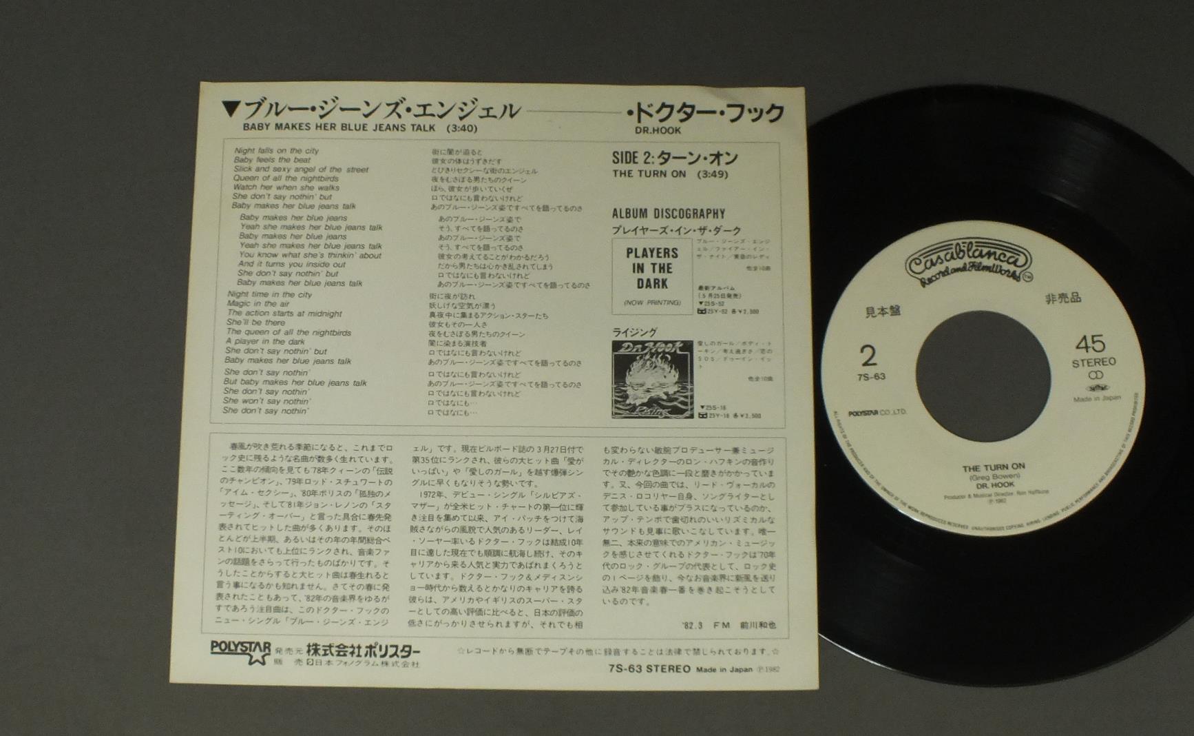 DR.HOOKドクター・フック/BABY MAKES HER BLUE JEANS TALKブルー・ジーンズ・エンジェル 7S63 製造国:日本盤 / Media:7inch外観:EX盤の状態:EX+ 価格(税込):¥770 送料 7inch:定形外郵便 360円~LP:定形外郵便 660円~送料は、注文の最終画面で確認頂けます。 レコード検索 > CLASSIC CHAMBER > DR.HOOK/BABY MAKES HER BLUE JEANS TALK 外観 (EX)特記事項:ヨレが少し。外観EXの共通説明:ダメージが限定的。中古品としては保存状態がよい方。シミ、ヨゴレ、スレ 少し~軽度。 盤の状態 (EX+)特記事項:薄いスリキズ・スレ少し。一見してきれいな状態です。盤EX+の共通説明:盤面の極薄いスリキズ、スレ少し程度 音に出そうなものは無いように見える(極軽微なソフトティック音は除く)。 その他:白見本 Tweet それぞれの画像をクリックすると、大きい写真が見られます こちらの商品もお勧めです 770円 NEIL DIAMONDニール・ダイアモンド / I`M GLAD YOU`RE HERE WITH ME TONIGHT愛のぬくもり 770円 BOZ SCAGGSボズ・スキャッグス / DOWN TWO THEN LEFTダウン・トゥー・ゼン・レフト 990円 ROGER VOUDOURISロジャー・ヴドゥーリス / GUY LIKE MEロマンの囁き 770円 YVES MONTANDイヴ・モンタン / WONDERFUL MELODIESイヴ・モンタン・ヒット集 770円 GALY WRIGHTゲイリー・ライト / RIGHT PLACEライト・プレイス 1,210円 WILLIE NELSONウィリー・ネルソン / PARTNERSサムシング 880円 BERTIE HIGGINSバーティ・ヒギンズ / JUST ANOTHER DAY IN PARADISEカサブランカ 440円 JONNY WINTER / JOHN DAWSON WINTER 3