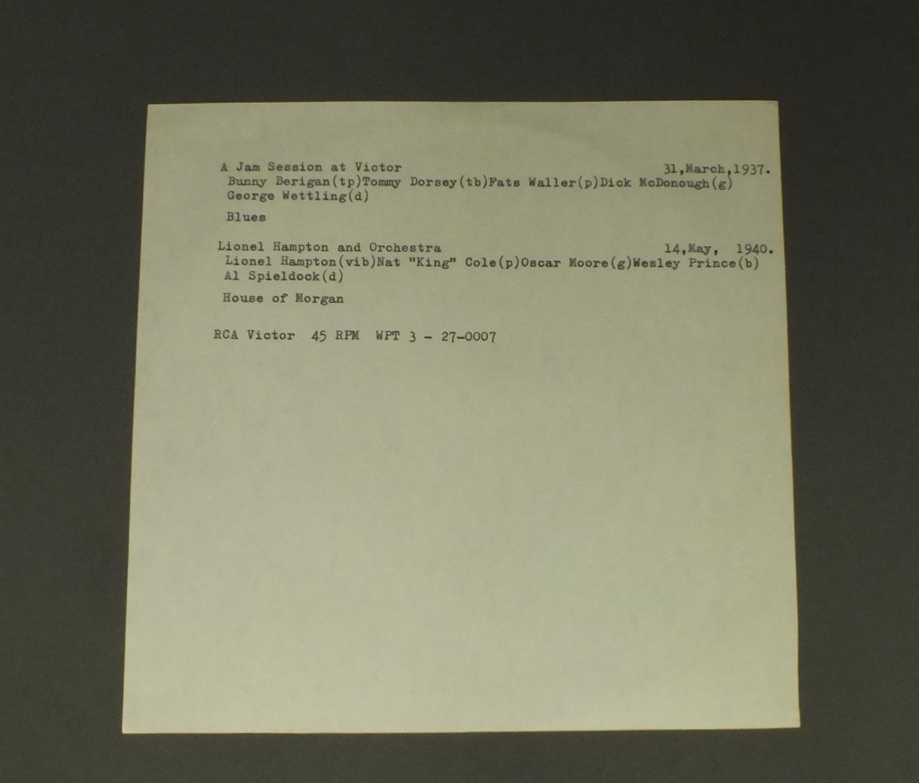 JAM SESSION AT VICTOR/BLUES WPT3 27 0007 製造国:米国盤 / Media:7inch盤の状態:EX 価格(税込):¥880(売約済) 送料 7inch:定形外郵便 360円~LP:定形外郵便 660円~送料は、注文の最終画面で確認頂けます。 > > JAM SESSION AT VICTOR/BLUES 盤の状態 (EX)特記事項:薄いスリキズ・スレ軽くある感じ。軽微なものの様子です。盤EXの共通説明:盤面のスリキズが薄いものが少し~軽度 音に出そうなものは無いように見える(軽微なソフトティック音は除く)。 Tweet それぞれの画像をクリックすると、大きい写真が見られます こちらの商品もお勧めです 770円 PAUL QUINICHETTE / KID FROM DENVER 1,210円 RALPH SUTTON / COSENZA JAZZ WORKSHOP AUTOGRAPHEDCOSENZA JAZZ WORKSHOP サイン付 2,200円 RED NORVO / MAINSTREAM JAZZ 990円 SPIKE JONES / KING OF CORN 440円 WILD BILL DAVISON AND HIS JAZZ BAND / WILD BILL DAVISON AND HIS JAZZ BAND 1943 770円 ART HODGES / GOSPEL ACCORDING TO ART 770円 BERT LIGON / CONDOR 550円 GORDON JENKINS / FRANCE