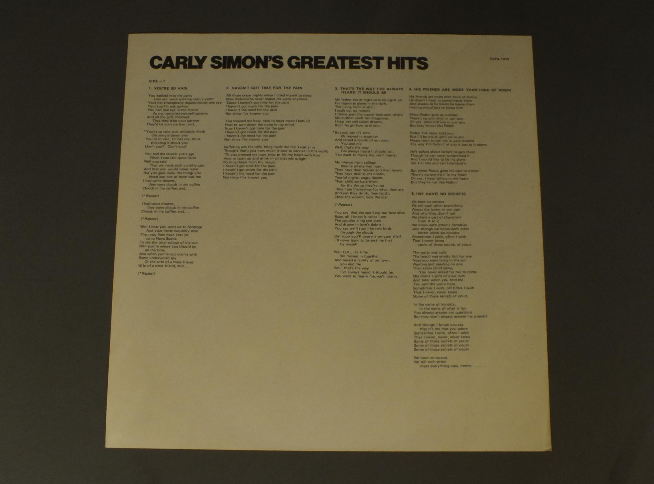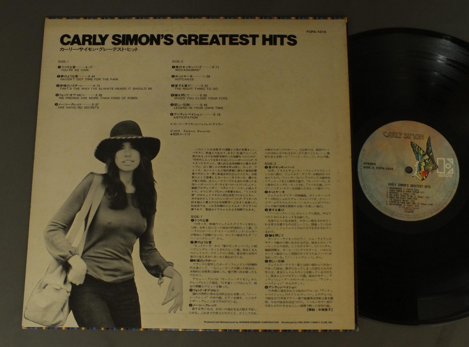 CARLY SIMONカーリー・サイモン/CARLY SIMON`S GREATEST HITSカーリー・サイモン・グレーテスト・ヒット FCPA1015 製造国:日本盤 / Media:LP外観:EX盤の状態:EX+ 価格(税込):¥660(売約済) 送料 7inch:定形外郵便 360円~LP:定形外郵便 660円~送料は、注文の最終画面で確認頂けます。 > > CARLY SIMON/CARLY SIMON`S GREATEST HITS 外観 (EX)特記事項:特記なし。外観EXの共通説明:ダメージが限定的。中古品としては保存状態がよい方。シミ、ヨゴレ、スレ 少し~軽度。 盤の状態 (EX+)特記事項:極薄いスリキズ・スレ少し。一見してきれいな状態です。盤EX+の共通説明:盤面の極薄いスリキズ、スレ少し程度 音に出そうなものは無いように見える(極軽微なソフトティック音は除く)。 Tweet それぞれの画像をクリックすると、大きい写真が見られます こちらの商品もお勧めです 660円 JESSI COLTERジェシー・コルター / DIAMOND IN THE ROUGH粗野なダイアモンド 770円 LYNN ANDERSONリン・アンダーソン / STAY THERE `TIL I GET THERE私の願い 770円 RITA COOLIDGEリタ・クーリッジ / SOUNDS CAPSULE 660円 OLVIA NEWTON-JOHNオリビア・ニュートン・ジョン / OLVIA NEWTON-JOHN DON’T STOP BELIEVINたそがれの恋 1,210円 OLIVIA NEWTON-JOHNオリビア・ニュートン・ジョン / DON`T STOP BELIEVIN`たそがれの恋 770円 DANIELE LICARIダニエル・リカーリ / GOLDEN PRIZEゴールデン・プライズ 1,650円 CHISTINE MCVIEクリスティン・マクヴィー / CHISTINE MCVIEクリスティン・マクヴィー 1,320円 OLIVIA NEWTON-JOHNオリビア・ニュートン・ジョン / PHYSICAL虹色の扉