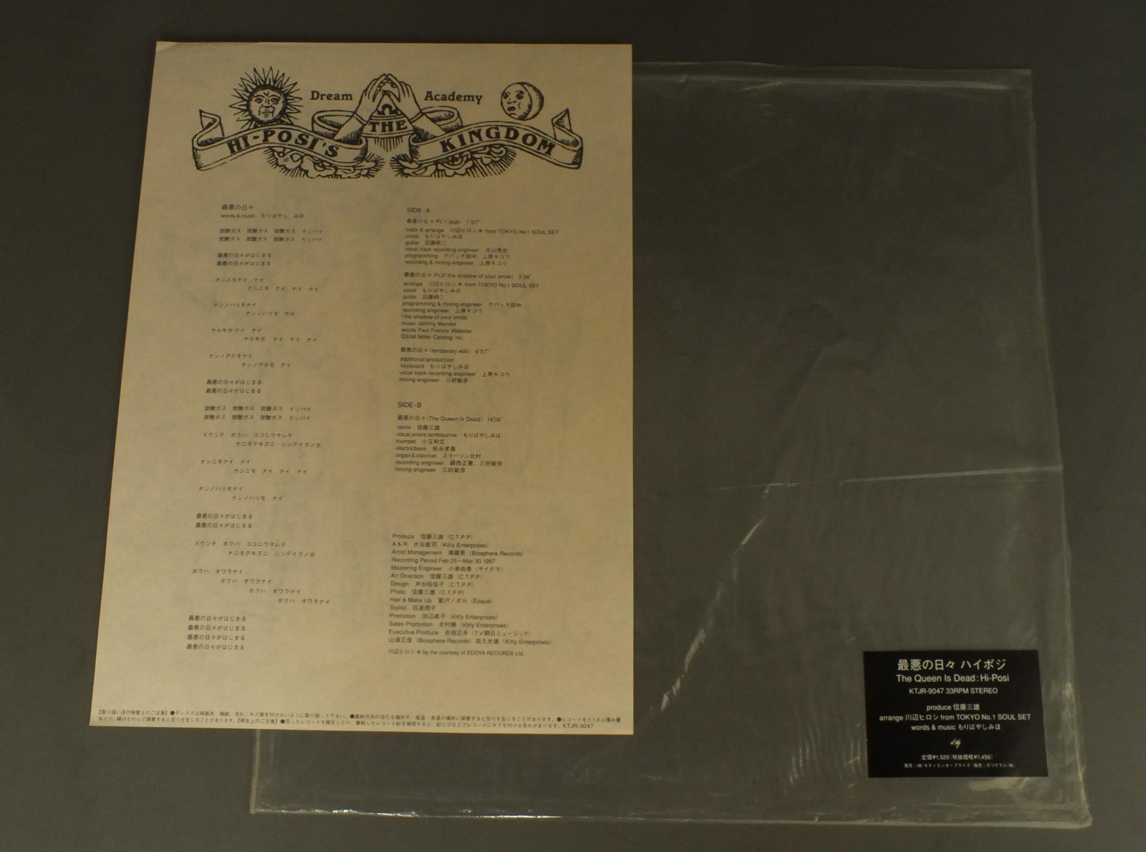 HI-POSIハイポジ/QUEEN IS DEAD最悪の日々 KTJR9047 製造国:日本盤 / Media:12inch外観:EX+盤の状態:EX+ 価格(税込):¥1,100(売約済) 送料 7inch:定形外郵便 360円~LP:定形外郵便 660円~送料は、注文の最終画面で確認頂けます。 > > HI-POSI/QUEEN IS DEAD 外観 (EX+)特記事項:特記なし。外観EX+の共通説明:中古としては美品、一見してきれいでダメージが軽微。シミ、ヨゴレ、スレ有っても僅か~少し。 盤の状態 (EX+)特記事項:極薄いスリキズ・スレ少し。一見してきれいな状態です。盤EX+の共通説明:盤面の極薄いスリキズ、スレ少し程度 音に出そうなものは無いように見える(極軽微なソフトティック音は除く)。 Tweet それぞれの画像をクリックすると、大きい写真が見られます こちらの商品もお勧めです 990円 MIZUKI OHURA大浦みずき / NIGHT & DAYナイト&デイ 660円 GO NAGABUCHI長渕 剛 / GYAKURYU逆流 770円 KUMIKO YAMASHITA山下久美子 / DANCIN`IN THE KITCHEN 880円 NUMBER ONE BANDナンバーワン・バンド / TOKYO ATARI東京あたり 1,210円 CANDIESキャンディーズ / SOUSHUNPU 早春譜 880円 SUGIYAMA-K杉山清貴 / KONA WEATHER 770円 I SEONG-AE季成愛 / SAYONARAさよなら - 演歌の源流を探る 1,540円 AKIO DOBASHI土橋安騎夫 / CHRONICLESクロニクルズ