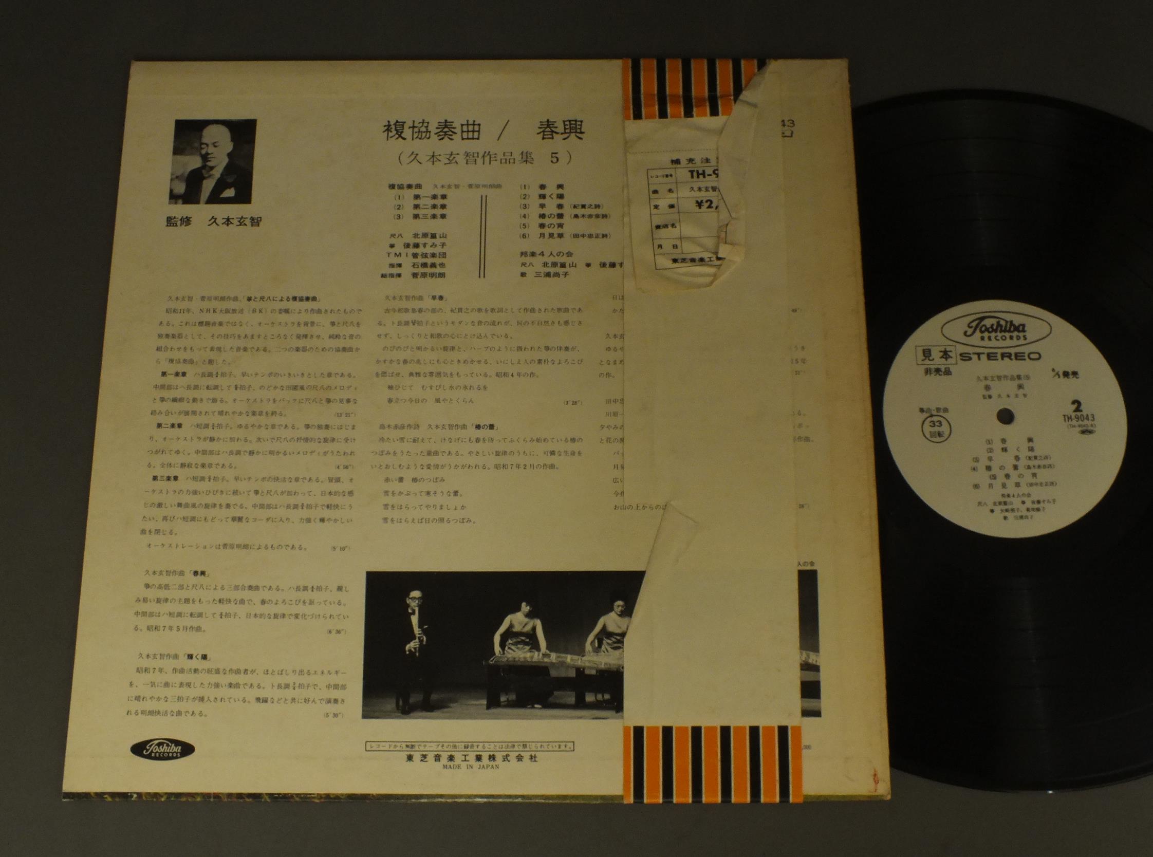 GENCHI HISAMOTO邦楽4人の会他/JAPANESE INSTRUMENTAL CLASSIC久本玄智作品集(5) 複協奏曲・春興 TH9043 製造国:日本盤 / Media:12inch外観:EX-盤の状態:EX+帯:VG+ 価格(税込):¥1,870(売約済) 送料 7inch:定形外郵便 360円~LP:定形外郵便 660円~送料は、注文の最終画面で確認頂けます。 > > GENCHI HISAMOTO/JAPANESE INSTRUMENTAL CLASSIC 外観 (EX-)特記事項:特記なし。外観EX-の共通説明:ダメージ軽度~多少。 中古品としては普通の状態。シミ、ヨゴレ、スレなど軽く~多少。 盤の状態 (EX+)特記事項:極薄いスリキズ・スレ少し。一見してきれいな状態です。盤EX+の共通説明:盤面の極薄いスリキズ、スレ少し程度 音に出そうなものは無いように見える(極軽微なソフトティック音は除く)。 帯の状態 (VG+):特記なし。 その他:白見本盤 Tweet それぞれの画像をクリックすると、大きい写真が見られます こちらの商品もお勧めです 770円 SHINNTAROU SUGIYAMA杉山真太郎 / INTRODUCING JAPANESE MUSIC日本音楽の手引き 1,210円 NATARSHER SEVENナターシャー・セブン / GOOD LOOKI`N道-世界のうた 編 990円 HOZAN YAMAMOTO山本邦山 / BEST SELECTION VOL4古典名曲選集第3集 662円 KEIKO MATSUO松尾恵子 / IKUTA STYLE KOTO VOL2生田流 筝曲選集 その2 660円 DUCK ACESデューク・エイセス / NIHON NO UTA VOL1にほんのうた 第1集 660円 YASUKO NAKAJIMA中島靖子 / 中島靖子の音楽 440円 SHINTAROU SUGIYAMA杉山真太郎 / INTRODUCING JAPANESE MUSIC日本音楽の手引き 1,210円 MICHIO MIYAGI宮城道雄 / MASTERPIECES OF KOTO 60s ISSUE宮城道雄名曲選集ペラジャケ