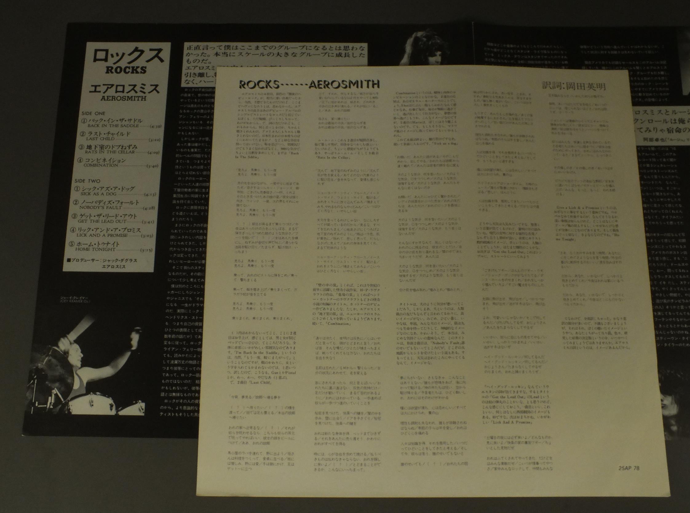 AEROSMITHエアロスミス/ROCKSロックス 25AP78 製造国:日本盤 / Media:LP外観:EX盤の状態:EX+ 価格(税込):¥550(売約済) 送料 7inch:定形外郵便 360円~LP:定形外郵便 660円~送料は、注文の最終画面で確認頂けます。 > > AEROSMITH/ROCKS 外観 (EX)特記事項:特記なし。外観EXの共通説明:ダメージが限定的。中古品としては保存状態がよい方。シミ、ヨゴレ、スレ 少し~軽度。 盤の状態 (EX+)特記事項:薄いスリキズ・スレ少し。一見してきれいな状態です。盤EX+の共通説明:盤面の極薄いスリキズ、スレ少し程度 音に出そうなものは無いように見える(極軽微なソフトティック音は除く)。 Tweet それぞれの画像をクリックすると、大きい写真が見られます こちらの商品もお勧めです 2,200円 HARDCHOIRハードクワイア / HARDCHOIR WLP華麗なる戦慄 1,980円 MACHAEL SCHENKER GROOPマイケル・シェンカー・グループ / MSG神話 770円 TED NUGENTテッド・ニュージェント / DOUBLE LIVE GONZO絶叫のライブ・ゴンゾー 990円 ANGELエンジェル / ANGEL天使の美学 660円 ANGELエンジェル / ANGEL 1,320円 RUSSIA露西亜 / RUSSIA露西亜 `ペテルスブルグ炎上` 770円 MONTROSEモントローズ / WARNER BROS PRESENTS MONTROSEワーナー・ブラザース・プレゼンツ・モントローズ 2,200円 KEELキール / FINAL FRONTIERファイナル・フロンティア