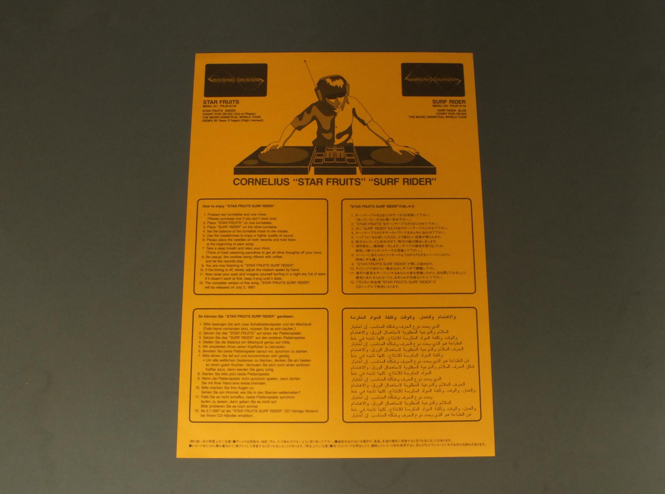 CORNELIUS/SURF RIDER PSJR9119 製造国:日本盤 / Media:12inch外観:EX盤の状態:EX+ 価格(税込):¥1,100(売約済) 送料 7inch:定形外郵便 360円~LP:定形外郵便 660円~送料は、注文の最終画面で確認頂けます。 > > CORNELIUS/SURF RIDER 外観 (EX)特記事項:特記なし。外観EXの共通説明:ダメージが限定的。中古品としては保存状態がよい方。シミ、ヨゴレ、スレ 少し~軽度。 盤の状態 (EX+)特記事項:極薄いスリキズ・スレ少し。一見してきれいな状態です。盤EX+の共通説明:盤面の極薄いスリキズ、スレ少し程度 音に出そうなものは無いように見える(極軽微なソフトティック音は除く)。 Tweet それぞれの画像をクリックすると、大きい写真が見られます こちらの商品もお勧めです 770円 AYUMI NAKAMURA中村 あゆみ / BOY 550円 HIDEKI SAIJO西城秀樹 / KOU NO BOUSOU恋の暴走 1,210円 MASA TAKAGI高木麻早 / 1st ALBUM思い出が多すぎて 770円 TAKURO YOSHIDA吉田拓郎 / ONLY YOUオンリー・ユー 1,210円 SHOGO HAMADA浜田省吾 / SAND CASTLESAND CASTLE 440円 MARI AMACHI天地真理 / BRIDGE OF A RAINBOW虹をわたって 770円 YUMI MATSUTOYA松任谷由実 / ALARM A LAMODEアラーム・ア・ラ・モード 440円 KUWATA BAND桑田バンド / NIPPON NO ROCK BAND