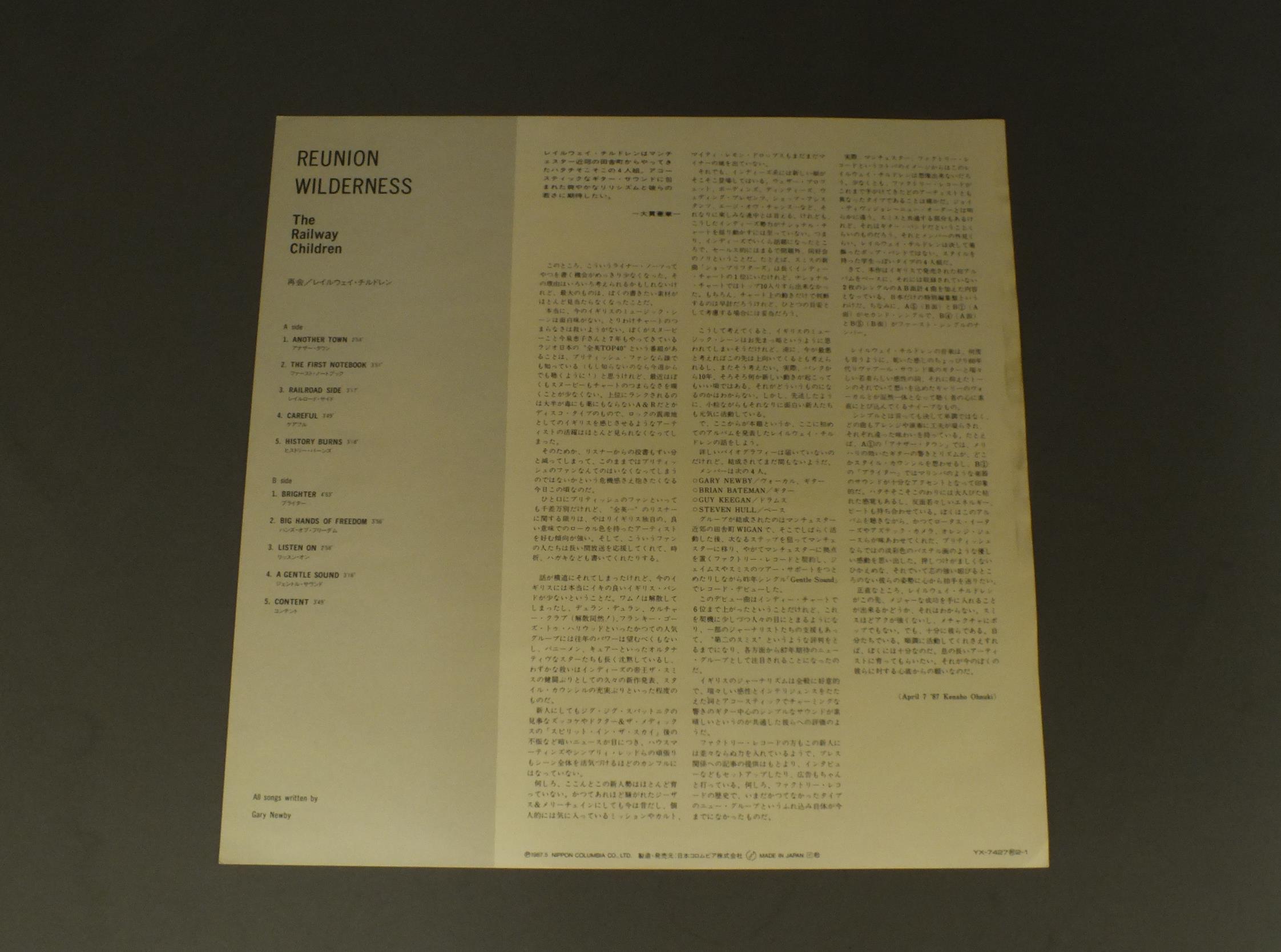 RAILWAY CHILDRENレイルウェイ・チルドレン/REUNION WILDERNESS再会 YX7427 製造国:日本盤 / Media:LP外観:EX盤の状態:EX+ 価格(税込):¥1,650(売約済) 送料 7inch:定形外郵便 360円~LP:定形外郵便 660円~送料は、注文の最終画面で確認頂けます。 > > RAILWAY CHILDREN/REUNION WILDERNESS 外観 (EX)特記事項:特記なし。外観EXの共通説明:ダメージが限定的。中古品としては保存状態がよい方。シミ、ヨゴレ、スレ 少し~軽度。 盤の状態 (EX+)特記事項:極薄いスリキズ・スレ少し。一見してきれいな状態です。盤EX+の共通説明:盤面の極薄いスリキズ、スレ少し程度 音に出そうなものは無いように見える(極軽微なソフトティック音は除く)。 Tweet それぞれの画像をクリックすると、大きい写真が見られます こちらの商品もお勧めです 550円 TOUCH / TOUCH 550円 BOOM CRASH OPERAブーム・クラッシュ・オペラ / GREAT WALLグレイト・ウォール 440円 TEN TENテン・テン / WALK ONウォーク・オン 550円 CORBIN HANNER BANDコーバン・ハナー・バンド / SON OF AMERICAサン・オブ・アメリカ 440円 HIPSWAYヒップスウェイ / HIPSWAYヒップスウェイ 440円 TAXXIタクシー / STATES OF EMERGENCY緊急発進 ! 770円 CHEAP TRICKチープ・トリック / AT BUDOKANAT 武道館 1,210円 GO WESTゴー・ウェスト / MORE BANGS & CRASHESモア・バン ! アンド・クラッシュ !