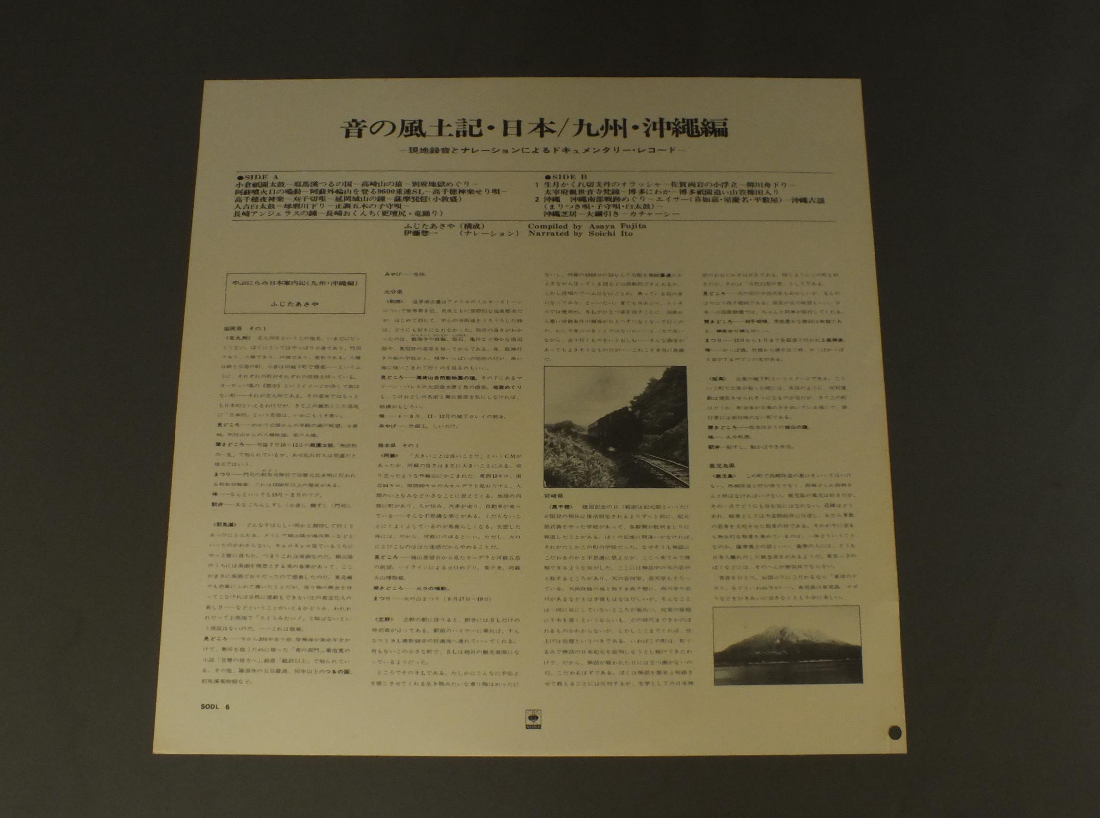 伊藤惣一/JAPANESE FESTIVAL ( KYUSHU&OKINAWA )音の風土記・日本 九州・沖縄編 SODL6 製造国:日本盤 / Media:LP外観:EX盤の状態:EX+帯:EX 価格(税込):¥1,870(売約済) 送料 7inch:定形外郵便 360円~LP:定形外郵便 660円~送料は、注文の最終画面で確認頂けます。 > > /JAPANESE FESTIVAL ( KYUSHU&OKINAWA ) 外観 (EX)特記事項:特記なし。外観EXの共通説明:ダメージが限定的。中古品としては保存状態がよい方。シミ、ヨゴレ、スレ 少し~軽度。 盤の状態 (EX+)特記事項:薄いスリキズ・スレ少し。一見してきれいな状態です。盤EX+の共通説明:盤面の極薄いスリキズ、スレ少し程度 音に出そうなものは無いように見える(極軽微なソフトティック音は除く)。 帯の状態 (EX):特記なし。 Tweet それぞれの画像をクリックすると、大きい写真が見られます こちらの商品もお勧めです 550円 KOTO MUSIC日本の旋律 箏曲 / BEST 30お茶の間箏曲ベスト30 770円 JAPANESE HARP山内喜美子と清流会 / JAPANESE MERODY琴の旅 - 美しき日本のしらべ 770円 PCM RECORDINGPCM録音 / WORLD OF SHAKUHACHI尺八の世界 770円 JAPANESE HARP山内喜美子 / JAPANESE HARP MUSIC COLLECTION琴の調べ 日本の名曲集 1,210円 YASUKO NAKAJIMA中島靖子 / COLLECTION VOL3中島靖子の音楽第3集 2,200円 SHINICHI YUIZE唯是震一 / MUSIC OF SHINICHI YUIZE VOL6唯是震一の音楽第6集 440円 TOHO KAGESAWA影澤藤峰 / JAPANESE TRADITIONAL FOLK SONG (HOKKAIDO & TOHOKU)民謡おさらい集(東北・北海道編) 990円 HOZAN YAMAMOTO山本邦山 / BEST SELECTION VOL4古典名曲選集第4集