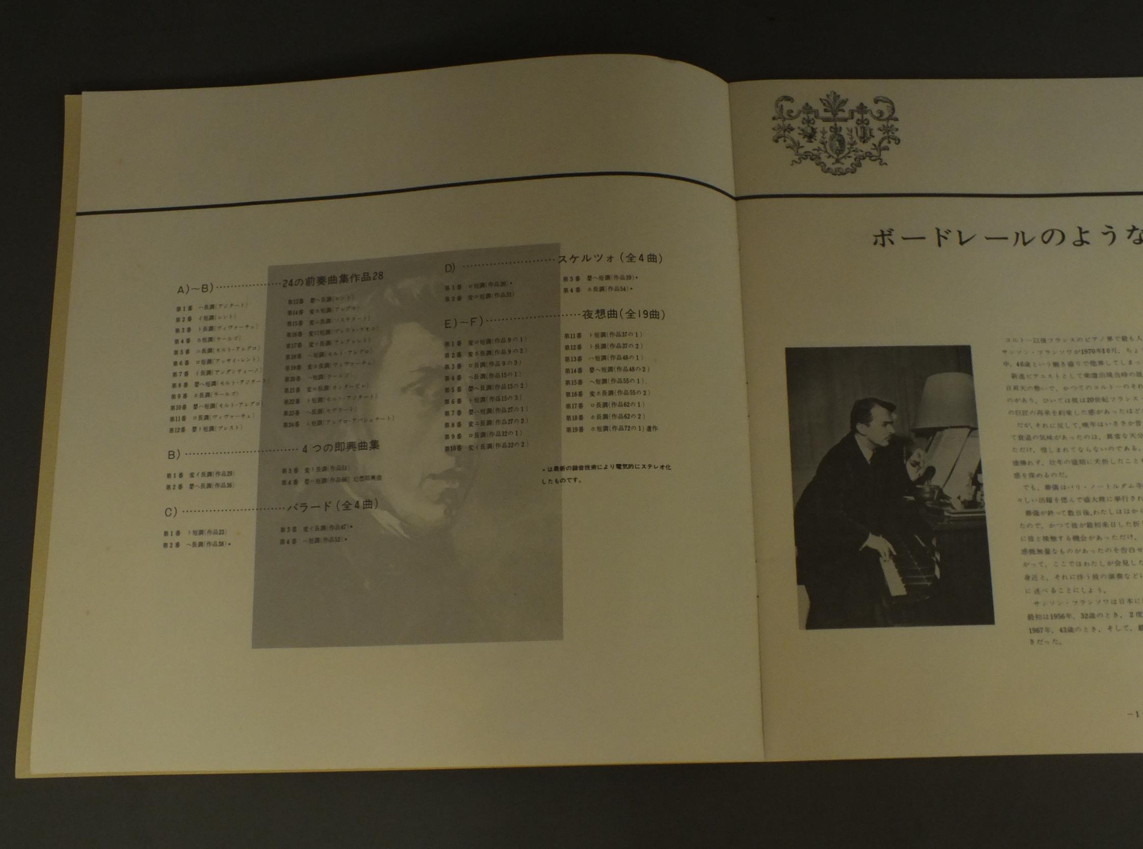 FRANCOISフランソワ/CHOPIN PIANO WORKS(COMPLETE)VOL.2ショパン・ピアノ音楽全集(中巻) AA9634D 製造国:日本盤 / Media:LP外観:EX盤の状態:EX+ 価格(税込):¥4,950(売約済) 送料 7inch:定形外郵便 360円~LP:定形外郵便 660円~送料は、注文の最終画面で確認頂けます。 > > FRANCOIS/CHOPIN PIANO WORKS(COMPLETE)VOL.2 外観 (EX)特記事項:特記なし。外観EXの共通説明:ダメージが限定的。中古品としては保存状態がよい方。シミ、ヨゴレ、スレ 少し~軽度。 盤の状態 (EX+)特記事項:薄いスリキズ・スレ少し。一見してきれいな状態です。盤EX+の共通説明:盤面の極薄いスリキズ、スレ少し程度 音に出そうなものは無いように見える(極軽微なソフトティック音は除く)。 その他:白見本盤 Tweet それぞれの画像をクリックすると、大きい写真が見られます こちらの商品もお勧めです 1,320円 REDEL - BUCHNER - SCHMID - SCHNERLLERレーデル - ビュヒナー - シュミット - シュネルラー / MOZART - QUATRE QUATUORS AVEC FLUTEモーツアルト - フルート四重奏曲 770円 HUMGARIAN STRING QUARTETハンガリー弦楽四重奏団 / BARTOK - STRING QUARTETS NO1&2バルトーク - 弦楽四重奏曲第1番2番 2,420円 LEOPOLD WLACHウラッハ / ART OF LEOPOLD WLACH 5LP BOXウラッハの芸術 4枚組 1,430円 QUARTETT COLLEGIUM AUREUMコレギウム・アウレウム四重奏団 / SCHUBERT - STREICHQUARTETTEシューベルト - 弦楽四重奏 990円 BOSTOVSKY - THE VIENNA MOZART ENSEMBLEボスコフスキー - ウィーン・モーツァルト合奏団 / MOZART - A MUSICAL JOKEモーツァルト - 音楽の冗談 1,320円 HOLLIGER - NEGRI - DRESDEN STATE ORCHESTRAホリガー - ネグリ - ドレスデン国立管弦団員 / FAMOUS OBOE CONCERTOSバロック名協奏曲集 770円 RAMPAL - ROUSSEL - ORCHESTRE ANTIQUA MUSIQUAランパル - セル - ミュージカ・アンティカ合奏団 / サン・ スーシー宮のランパル 990円 JEAN-LOUIS BEAUMADIERユージェーヌ・ダマレ / LA BELLE EPOQUE DE PICCOLOピッコロの妙技(19世紀フランスのピッコロ作品集)
