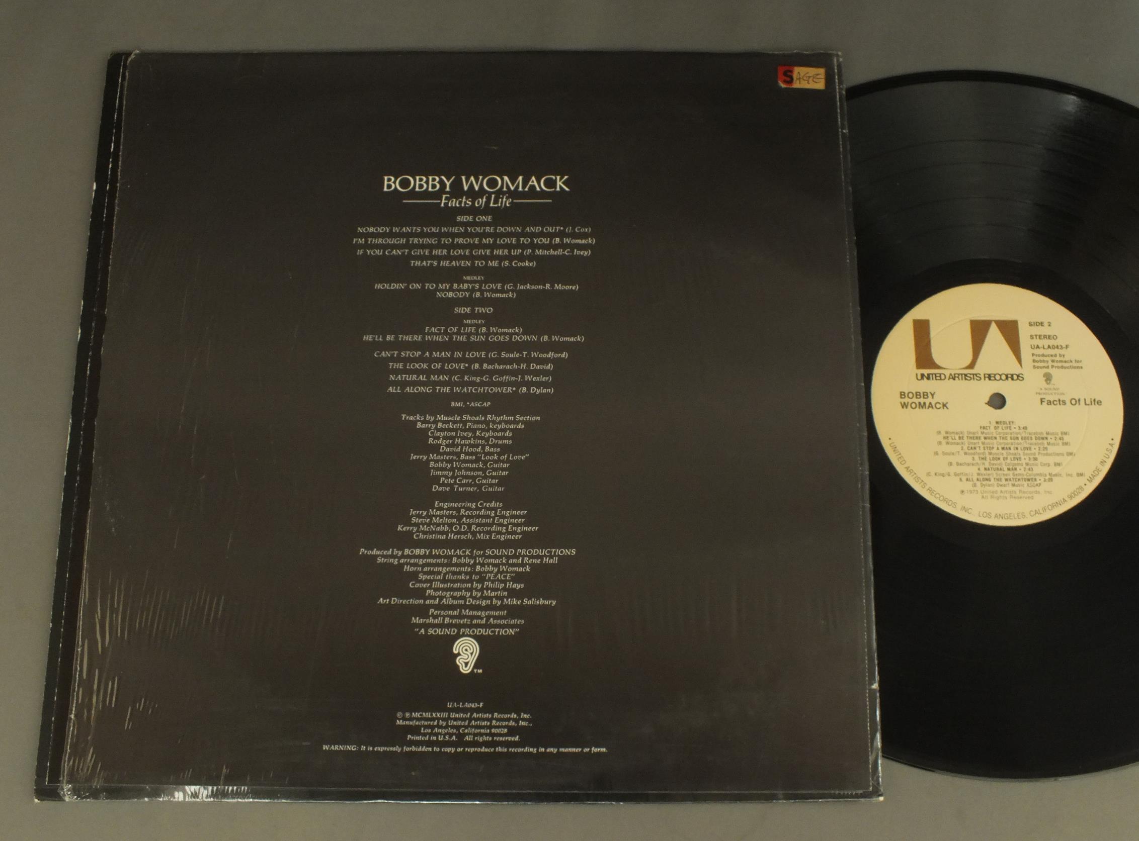 BOBBY WOMACK/FACTS OF LIFE UA LA043F 製造国:米国盤 / Media:LP外観:EX+盤の状態:EX 価格(税込):¥1,100(売約済) 送料 7inch:定形外郵便 360円~LP:定形外郵便 660円~送料は、注文の最終画面で確認頂けます。 > > BOBBY WOMACK/FACTS OF LIFE 外観 (EX+)特記事項:特記なし。外観EX+の共通説明:中古としては美品、一見してきれいでダメージが軽微。シミ、ヨゴレ、スレ有っても僅か~少し。 盤の状態 (EX)特記事項:薄いスリキズ・スレ軽くある感じ。軽微なものの様子です。盤EXの共通説明:盤面のスリキズが薄いものが少し~軽度 音に出そうなものは無いように見える(軽微なソフトティック音は除く)。 Tweet それぞれの画像をクリックすると、大きい写真が見られます こちらの商品もお勧めです 1,100円 WILSON PICKETT / BEST OF WILSON PICKETT 1,100円 DELLS / SECOND TIME 1,650円 BILLY PRESTON / WHOLE NEW THING 1,650円 SMOKEY ROBINSON / DEEP IN MY SOUL 1,100円 BILLY OCEAN / TEAR DOWN THESE WALLS 880円 FOUR TOPS / TONIGHT 1,100円 S.O.S.BAND / TOO 1,100円 TROUBLE FUNK / TROUBLE OVER HERE