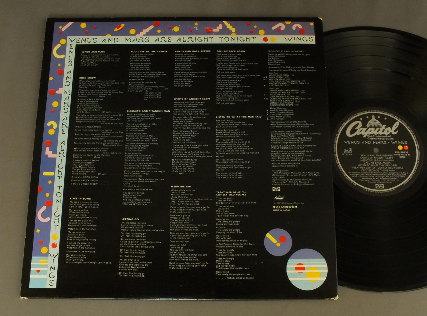WINGSポール・マッカートニー&ウイングス/VENUS AND MARSヴィーナス・アンド・マース EPS80236 製造国:日本盤 / Media:LP外観:EX-盤の状態:EX+ 価格(税込):¥880(売約済) 送料 7inch:定形外郵便 360円~LP:定形外郵便 660円~送料は、注文の最終画面で確認頂けます。 > > WINGS/VENUS AND MARS 外観 (EX-)特記事項:特記なし。外観EX-の共通説明:ダメージ軽度~多少。 中古品としては普通の状態。シミ、ヨゴレ、スレなど軽く~多少。 盤の状態 (EX+)特記事項:薄いスリキズ・スレ少し。一見してきれいな状態です。盤EX+の共通説明:盤面の極薄いスリキズ、スレ少し程度 音に出そうなものは無いように見える(極軽微なソフトティック音は除く)。 Tweet それぞれの画像をクリックすると、大きい写真が見られます こちらの商品もお勧めです 1,980円 GEORGE HARRISONジョージ・ハリスン / LIVING IN THE MATERIAL WORLDリヴィング・イン・ザ・マテリアル・ワールド 1,320円 WINGSウイングス / WINGS OVER AMERICAウイングス U.S.A.ライヴ!! 1,540円 WINGSポール・マッカートニーとウイングス / LONDON TOWN 880円 PAUL McCARTNEYポール・マッカートニー / TUG OF WARタグ・オブ・ウォー 1,650円 GEORGE HARRISONジョージ・ハリスン / DARK HORSEダーク・ホース 1,650円 WINGSウィングス / OVER AMERICAUSAライブ 1,650円 PAUL McCARTNEYポール・マッカートニー / PIPES OF PEACEパイプス・オブ・ピース 770円 JOHN LENNONジョン・レノン / PLASTIC ONO BANDプラスティック・オノ・バンド