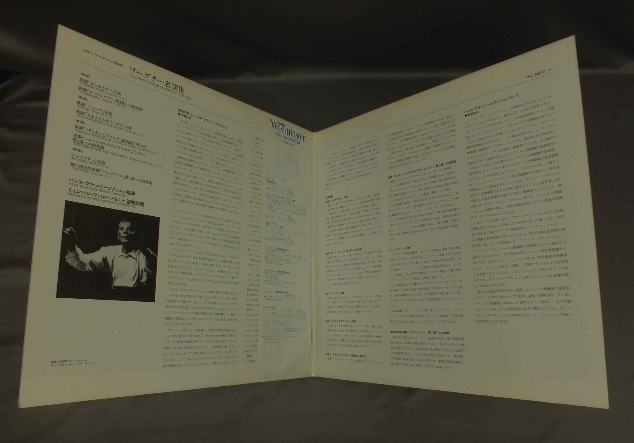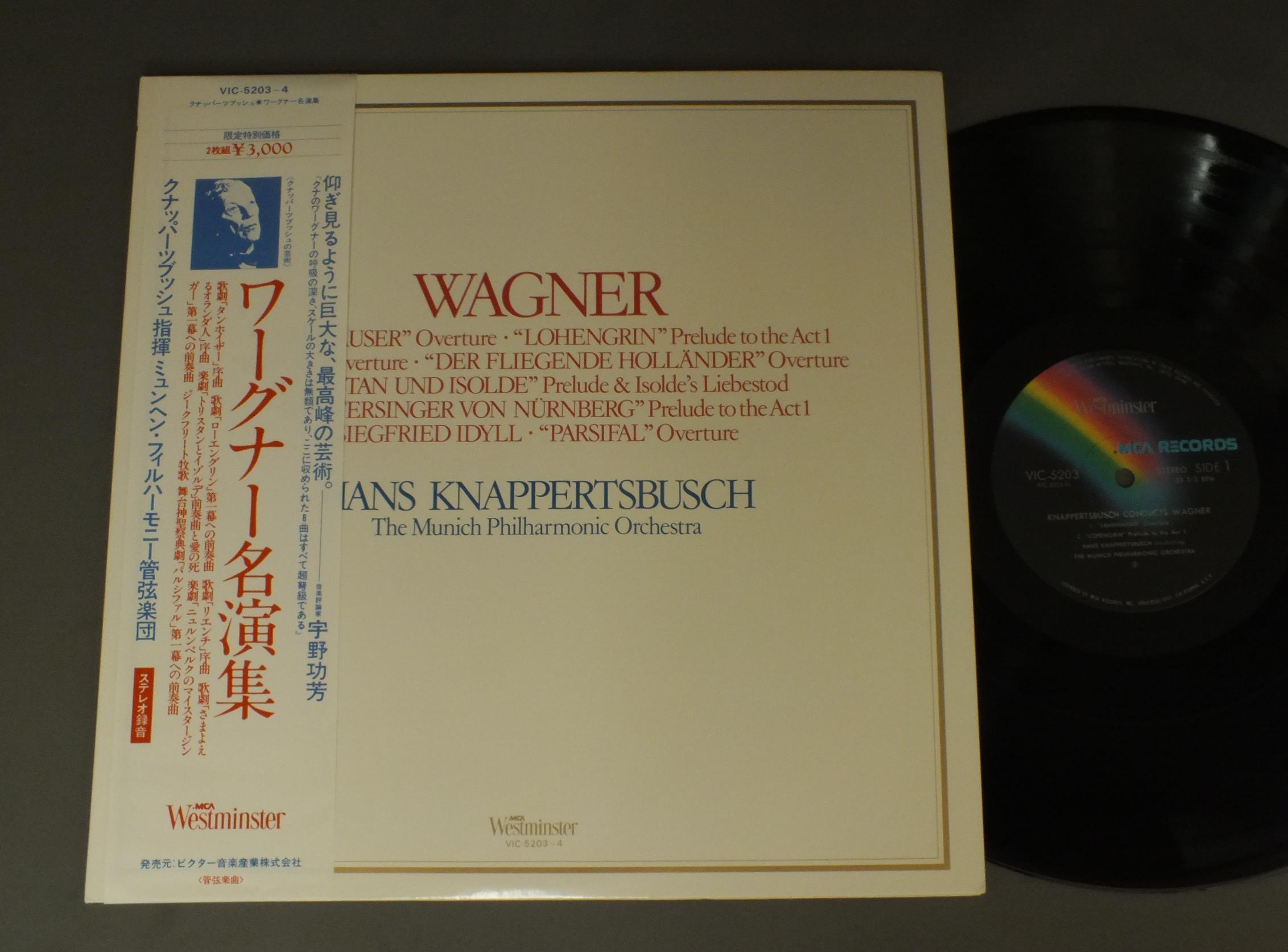 KNAPPERTSBUSCHクナッパーツブッシュ/CONDUCTS WAGNERワーグナー名演集 VIC5203-4 製造国:日本盤 / Media:LP外観:EX+盤の状態:EX+ 価格(税込):¥1,587(売約済) 送料 7inch:定形外郵便 360円~LP:定形外郵便 660円~送料は、注文の最終画面で確認頂けます。 > > KNAPPERTSBUSCH/CONDUCTS WAGNER 外観 (EX+)特記事項:特記なし。外観EX+の共通説明:中古としては美品、一見してきれいでダメージが軽微。シミ、ヨゴレ、スレ有っても僅か~少し。 盤の状態 (EX+)特記事項:極薄いスリキズ・スレ少し。一見してきれいな状態です。盤EX+の共通説明:盤面の極薄いスリキズ、スレ少し程度 音に出そうなものは無いように見える(極軽微なソフトティック音は除く)。 帯の状態 ():特記なし。 Tweet それぞれの画像をクリックすると、大きい写真が見られます こちらの商品もお勧めです 990円 KLEMPERER - PHILHARMONIA ORCH.クレンペラー - ニュー・フィルハーモニック管弦楽団 / SCHUMANN- SYMPHONY No3 AND No4シューマン 交響曲第3番 990円 HAITINK - LONDON PHIL. ORCH.ハイティンク - ロンドン・フィル / STRAVINSKY - RITE OF SPRINGストラヴィンスキー - 春の祭典 1,870円 KUBELIK - BOSTON SYMPHOMY ORCHESTRAクーベリック - ボストン交響楽団 / SMETANA - MA VLASTスメタナ - 交響詩わが祖国 770円 BACKHAUSバックハウス / BEETHOVEN - COMPLETE PIANO SONATAS VOL1 (NO1 2 & 3 )ベートーヴェン - ピアノ奏鳴曲全集第1集 990円 WALTER - BBC SYMPHONY ORCESTRAワルター - BBC交響楽団 / MOZART - SYMPHONY No39モーツァルト - 交響曲 第39番 990円 ORMANDY - PHILADELPHIA ORCHESTRAオーマンディ - フィラデルフィア管弦楽団 / SIBELIUS - SYMPHONY NO2 FINLANDIAシベリウス交響曲第2番 990円 FIEDLERフィードラー / PERSIAN MARKETペルシャの市場 770円 GIULINI - CHICAGO SYM.ジュリーニ- シカゴ交響楽団 / SCHUBERT - SYM. NO9シューベルト - 交響曲第9番