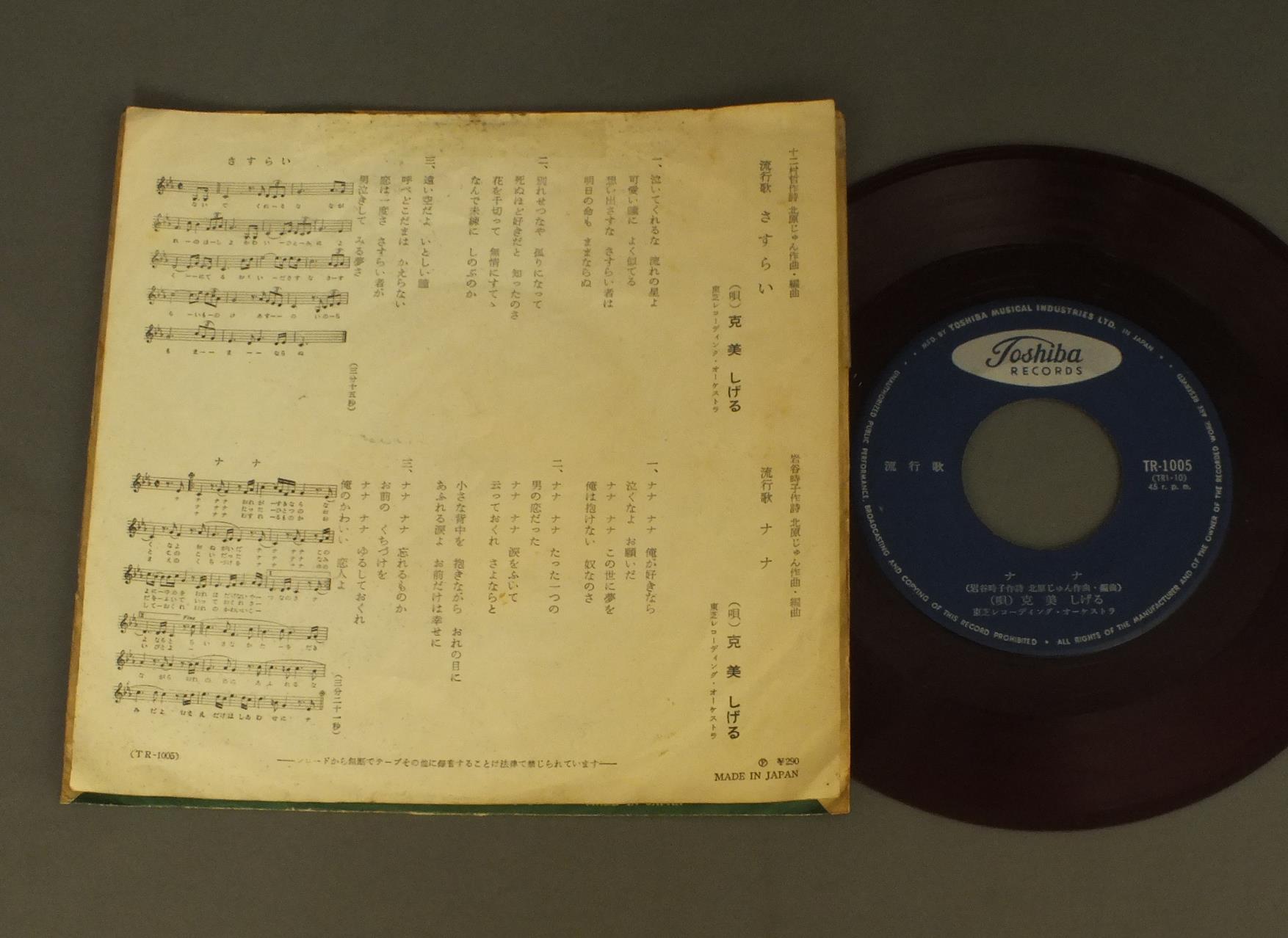 克美しげる/さすらい 赤盤 TR1005 製造国:日本盤 / Media:7inch外観:VG+盤の状態:VG+ 価格(税込):¥1,320(売約済) 送料 7inch:定形外郵便 360円~LP:定形外郵便 660円~送料は、注文の最終画面で確認頂けます。 > > / 外観 (VG+)特記事項:特記なし。外観VG+の共通説明:ダメージやや有り。シミ、ヨゴレ、スレなど多少~やや多め。 盤の状態 (VG+)特記事項:薄いスリキズ・細かいスレやや多め。プチ出そうな小キズ、線キズは数カ所で、全体的には軽微なものが中心です。少し聴いてみましたが、音自体はしっかりクリアーに鳴っているようでした。盤VG+の共通説明:盤面にスリキズが多少~やや有り、音に出そうなものも多少ある。 Tweet それぞれの画像をクリックすると、大きい写真が見られます こちらの商品もお勧めです 990円 YOSHIO TABATA田端義夫 / SHIMA SODACHI島育ち 880円 村田英雄-青山和子-安達明 他 / コロムビア歌のハイライト (第五集) 660円 KOJO TSURUTA鶴田浩二 / RED AND BLACK BLUES赤と黒のブルース 880円 KEN TSUMURA津村謙 / KAYO ALBUM津村謙歌謡アルバム 770円 三浦洸一 / ゴールデン・ヒット 660円 AKIRA MATSUDAIRA松平晃 / CIRCUS SONG懐かしの針音 松平晃 サーカスの唄 770円 YUJIRO ISHIHARA石原裕次郎 / YUJIRO ISHIHARA ORIGINAL BEST石原裕次郎オリジナルベスト 660円 CHIEKO SATOH佐藤千夜子 / BEST COLLECTIONオリジナル原盤による懐しの歌声シリーズ4 東京行進曲
