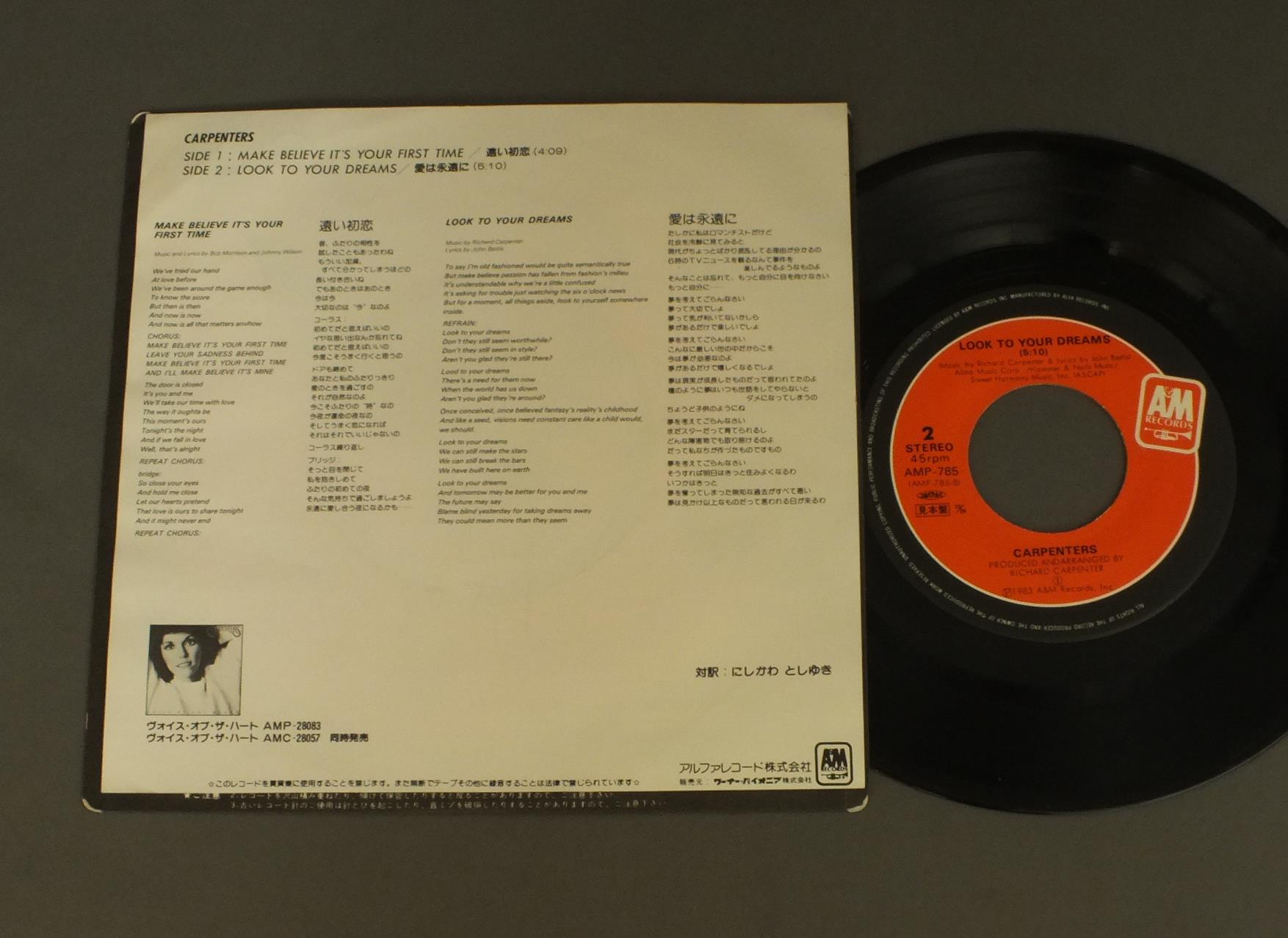 CARPENTERSカーペンターズ/MAKE BELIEVE IT`S YOUR FIRST TIME遠い初恋 AMP785 製造国:日本盤 / Media:7inch外観:EX+盤の状態:EX+ 価格(税込):¥550(売約済) 送料 7inch:定形外郵便 360円~LP:定形外郵便 660円~送料は、注文の最終画面で確認頂けます。 > > CARPENTERS/MAKE BELIEVE IT`S YOUR FIRST TIME 外観 (EX+)特記事項:特記なし。外観EX+の共通説明:中古としては美品、一見してきれいでダメージが軽微。シミ、ヨゴレ、スレ有っても僅か~少し。 盤の状態 (EX+)特記事項:薄いスリキズ・スレ少し。一見してきれいな状態です。盤EX+の共通説明:盤面の極薄いスリキズ、スレ少し程度 音に出そうなものは無いように見える(極軽微なソフトティック音は除く)。 Tweet それぞれの画像をクリックすると、大きい写真が見られます こちらの商品もお勧めです 770円 MARILYN MARTINマリリン・マーティン / MARILYN MARTINマリリン・マーティン 990円 CARLY SIMONカーリー・サイモン / TORCHトーチ 990円 DANIELLE LICARIダニエル・リカーリ / DANIELLE LICARIふたりの天使・シェルブールの雨傘 990円 TANYA TUKERタニア・タッカー / GREATEST HITS 660円 CRYSTAL GAYLEクリスタル・ゲイル / WE SHOULD BE TOGETHER夢のふれあい 770円 MELISSA MANCHESTERメリサ・マンチェスター / MELISSA想い出にさようなら 770円 CORA VAUCAIREコラ・ヴォーケール / COMPLAINTE DE LA BUTTEモンマルトルの丘 1,320円 OLIVIA NEWTON-JOHNオリビア・ニュートン・ジョン / PHYSICAL虹色の扉