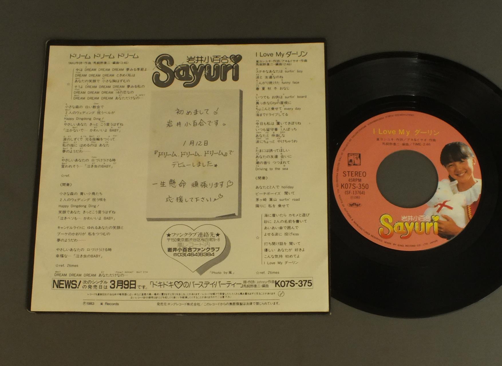 SAYURI岩井小百合/DREAM DREAM DREAMドリーム ドリーム ドリーム K07S350 製造国:日本盤 / Media:7inch外観:EX盤の状態:EX 価格(税込):¥440(売約済) 送料 7inch:定形外郵便 360円~LP:定形外郵便 660円~送料は、注文の最終画面で確認頂けます。 > > SAYURI/DREAM DREAM DREAM 外観 (EX)特記事項:シミ有り外観EXの共通説明:ダメージが限定的。中古品としては保存状態がよい方。シミ、ヨゴレ、スレ 少し~軽度。 盤の状態 (EX)特記事項:薄いスリキズ・スレ少しある感じ。一見してきれいな感じです。盤EXの共通説明:盤面のスリキズが薄いものが少し~軽度 音に出そうなものは無いように見える(軽微なソフトティック音は除く)。 Tweet それぞれの画像をクリックすると、大きい写真が見られます こちらの商品もお勧めです 880円 MAKO ISHINO石野真子 / MAKO2 880円 MOMOE YAMAGUCHI山口百恵 / 16s THEME16才のテーマ 1,210円 PINK LADYピンク・レディー / PINK LADY CHALLENGE CONCERTピンク・レディー・チャレンジ・コンサート 1,210円 SAORI MINAMI南沙織 / SUFFERING AGEヤングのテーマ 傷つく世代 1,210円 USHIRO-YUBI SASAREGUMIうしろゆびさされ組 / 1st LP ( FUWAFURA )ふ・わ・ふ・ら 770円 ERI NITTA新田恵利 / E-AREA 990円 PINK LADYピンク・レディー / CHALLENGE CONCERTチャレンジ・コンサート 880円 SONOKO KAWAI河合その子 / SONOKOその子