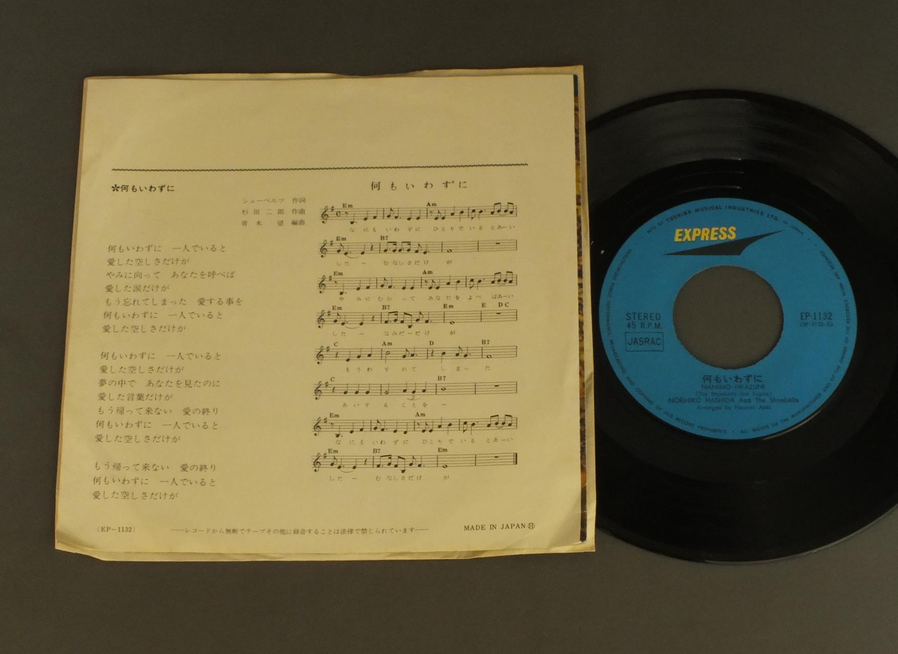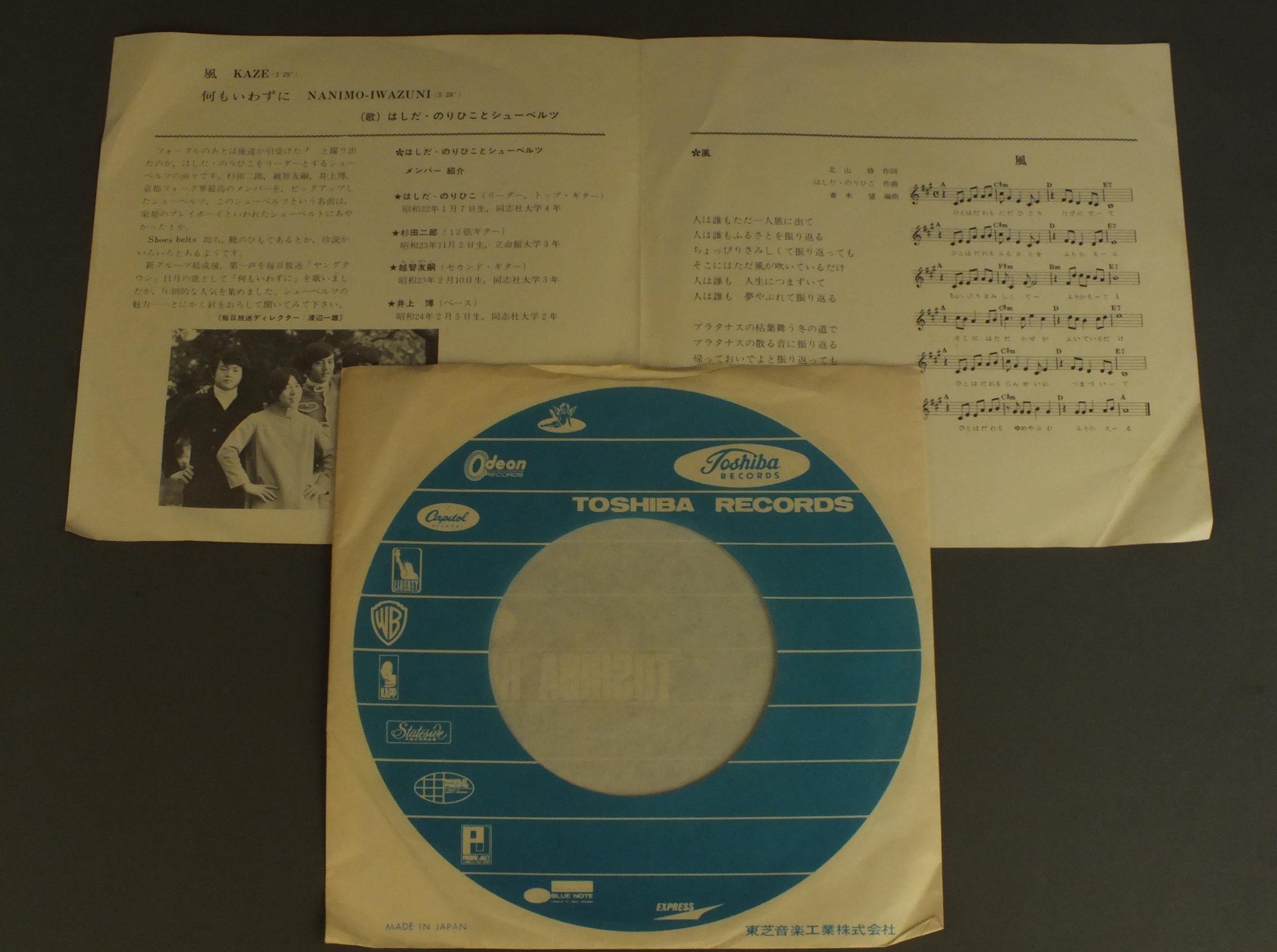 NORIHIKO HASHIDA & THE SHOEBELTSはしだのりひことシューベルツ/KAZE風 EP1132 製造国:日本盤 / Media:7inch外観:EX盤の状態:EX+ 価格(税込):¥330(売約済) 送料 7inch:定形外郵便 360円~LP:定形外郵便 660円~送料は、注文の最終画面で確認頂けます。 > > NORIHIKO HASHIDA & THE SHOEBELTS/KAZE 外観 (EX)特記事項:特記なし。外観EXの共通説明:ダメージが限定的。中古品としては保存状態がよい方。シミ、ヨゴレ、スレ 少し~軽度。 盤の状態 (EX+)特記事項:極薄いスリキズ・スレ少し。一見してきれいな状態です。盤EX+の共通説明:盤面の極薄いスリキズ、スレ少し程度 音に出そうなものは無いように見える(極軽微なソフトティック音は除く)。 Tweet それぞれの画像をクリックすると、大きい写真が見られます こちらの商品もお勧めです 440円 NEW SADISTIC PINKニュー・サディスティック・ピンク / FIRST LIVE 880円 TETSUO SAITOH斉藤哲夫 / BYE BYE GOODBYEバイバイグッドバイサラバイ 770円 IRUKAイルカ / NOEL`S FANTASTIC TRIPノエルの不思議な冒険 660円 KOUSETSU MINAMI南こうせつ / KAERIMICHIかえり道 770円 KIMIHIKO SATO佐藤公彦 / KEME VOL.2ケメ2 明日天気になあれ 1,320円 NOBUYASU OKABAYASHI岡林信康 / MACHI HA SUTEKINA CARNIVAL街はステキなカーニバル 770円 NATARSHER SEVENナターシャー・セブン / GOOD LOOKIN`道 世界のうた編 3,080円 UTANOICHI唄の市 / 2nd ALBUMセカンド