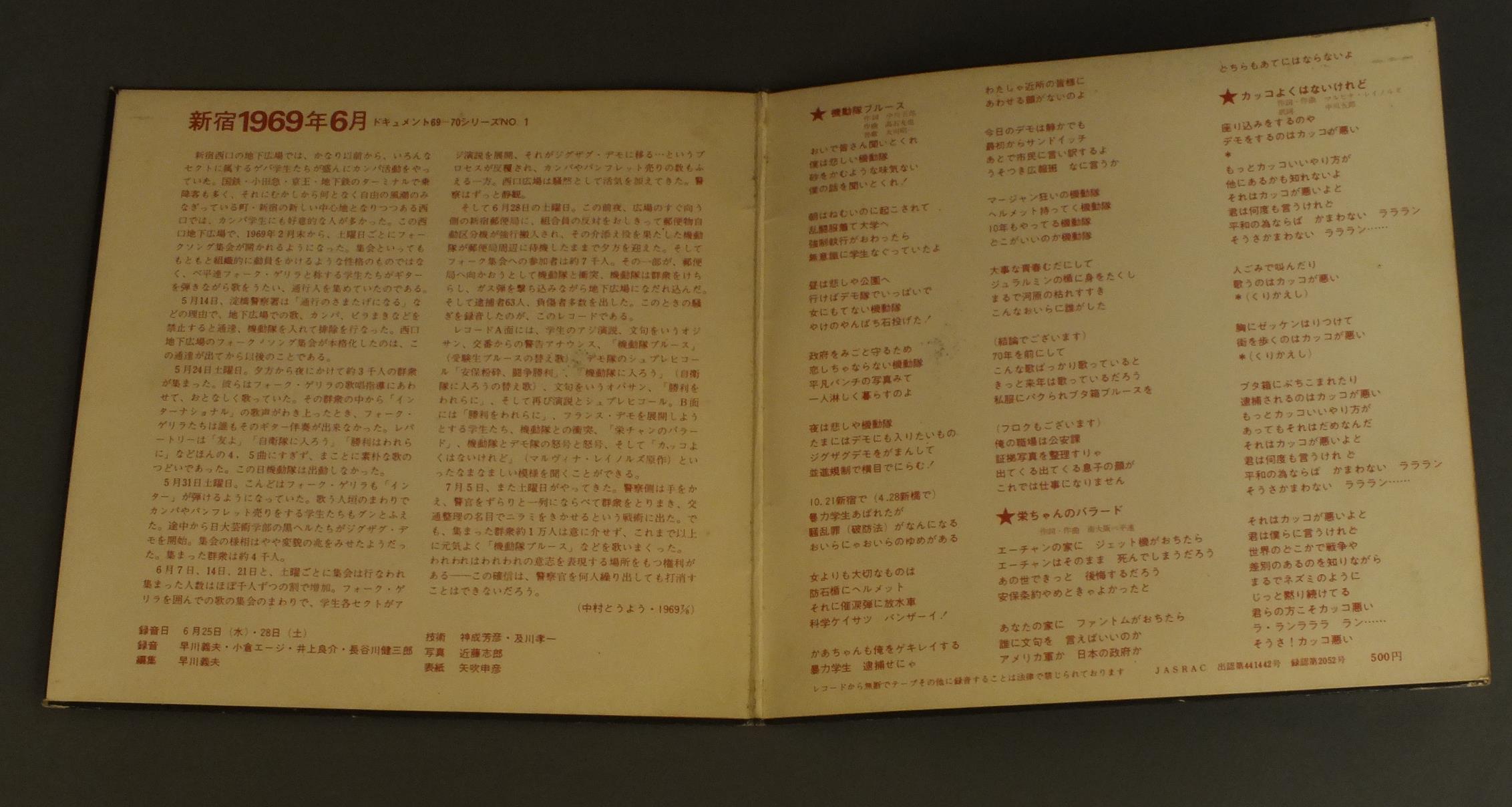 URCドキュメント69-70シリーズ 早川義男/新宿1969年6月 URD2001 製造国:日本盤 / Media:7inch外観:EX盤の状態:EX 価格(税込):¥2,750(売約済) 送料 7inch:定形外郵便 360円~LP:定形外郵便 660円~送料は、注文の最終画面で確認頂けます。 > > / 外観 (EX)特記事項:特記なし。外観EXの共通説明:ダメージが限定的。中古品としては保存状態がよい方。シミ、ヨゴレ、スレ 少し~軽度。 盤の状態 (EX)特記事項:薄いスリキズ・スレ軽くある感じ。殆どが軽微なものの様子です。盤EXの共通説明:盤面のスリキズが薄いものが少し~軽度 音に出そうなものは無いように見える(軽微なソフトティック音は除く)。 Tweet それぞれの画像をクリックすると、大きい写真が見られます こちらの商品もお勧めです 1,980円 JIRO`Sジローズ / BRAND NEW SONGS JORO`S 2新しい唄 ジローズ 2 3,080円 UTANOICHI唄の市 / 2nd ALBUMセカンド 1,760円 FIVE BALLOONS五つの赤い風船 / 1st ALBUMフォーク・アルバム 第1集 2,200円 YUTAKA SADOYAMA佐渡山豊 / MOTTO CHIKAKUHEもっと近くへ 880円 IRUKAイルカ / SHURIKUSUイルカのうた-イルカ・シュリークス時代 770円 TAKURO YOSHIDAよしだたくろう / ON STAGEオン・ザ・ステージ ともだち 1,210円 TAKUROU YOSHIDA吉田拓郎 / NINGEN-NANTE人間なんて 770円 IRUKAイルカ / JULIAジュリア