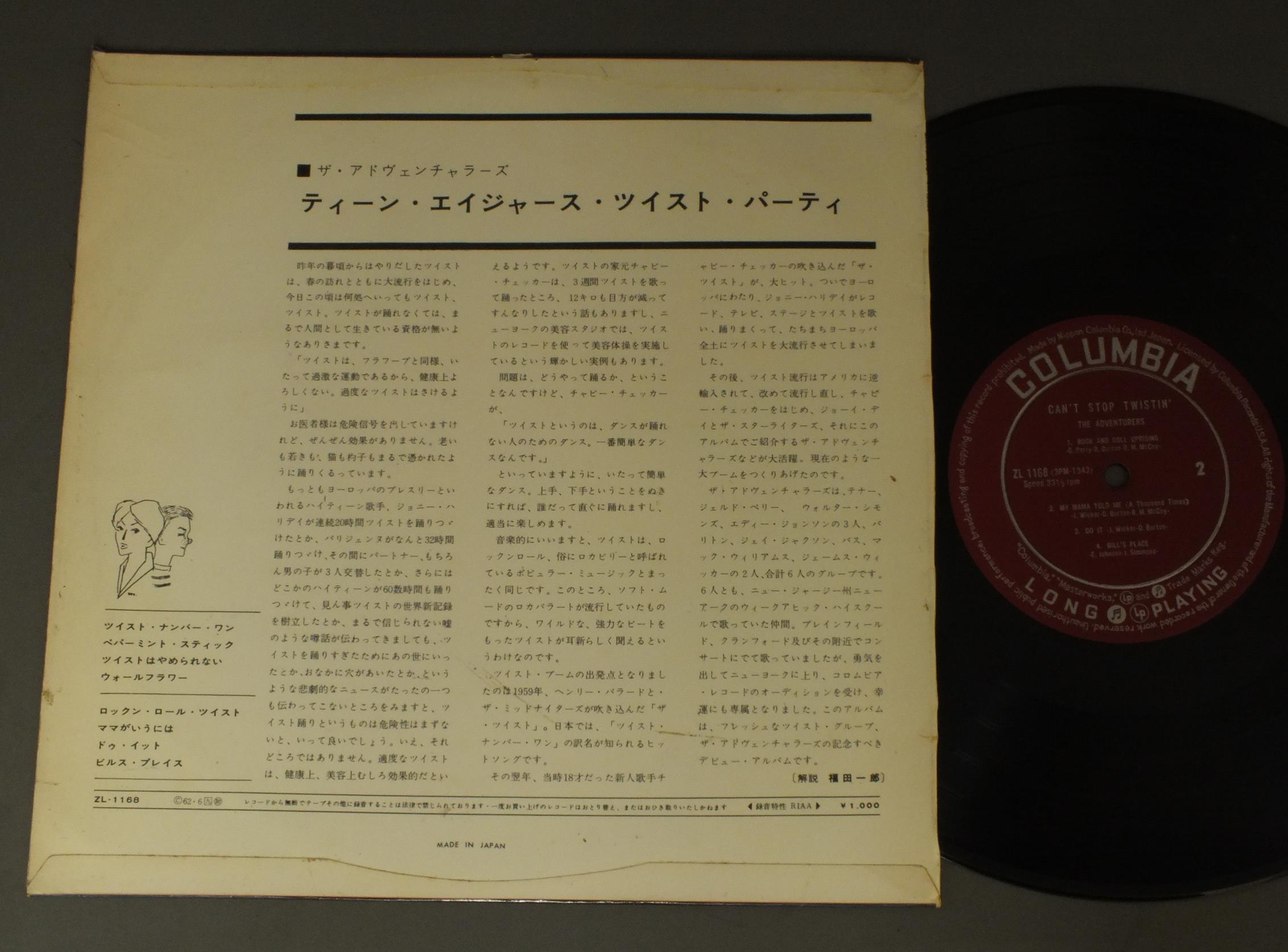 ADVENTURERSアドヴェンチャーズ/CAN`T STOP TWISTIN`ティーン・エイジャーズ・ツイスト・パーティ ZL1168 製造国:日本盤 / Media:10inch外観:EX-盤の状態:EX- 価格(税込):¥1,100(売約済) 送料 7inch:定形外郵便 360円~LP:定形外郵便 660円~送料は、注文の最終画面で確認頂けます。 > > ADVENTURERS/CAN`T STOP TWISTIN` 外観 (EX-)特記事項:特記なし。外観EX-の共通説明:ダメージ軽度~多少。 中古品としては普通の状態。シミ、ヨゴレ、スレなど軽く~多少。 盤の状態 (EX-)特記事項:薄いスリキズ・細かい表面スレ軽くある感じです。プチ出そうな所は少し。軽微なものが中心の様子です。盤EX-の共通説明:盤面のスリキズが多少有り。音に出そうなものは殆ど無いように見える~さほど気にならないぐらいの軽いプチ数カ所程度。 その他:ペラジャケ。 Tweet それぞれの画像をクリックすると、大きい写真が見られます こちらの商品もお勧めです 770円 MIRACLESミラクルズ / LOVE CRAZYラブ・クレイジー 1,210円 SMOKEY ROBINSONスモーキー・ロビンソン / ESSARエサール 1,650円 OHIO PLAYERS / BACK 1,320円 GRAND MASTER FLASHグランド・マスター・フラッシュ / THEY SAID IT COULDN`T BE DONEサイン・オブ・ザ・タイムス 770円 STEVIE WONDERスティービー・ワンダー / IN SQUARE CIRCLEイン・スクエア・サークル 660円 SHIRLEY CAESARシャーリー・シーザー / CHRISTMASINGクリスマシング 440円 PEABO BRYSONピーボ・ブライソン / TAKE NO PRISONERSテイク・ノー・プリズナーズ 1,320円 DIANA ROSS & THE SUPREMESダイアナ・ロスとシュープリームス / THE BEST OF DIANA ROSS & THE SUPREMESダイアナ・ロスとシュープリームスの全て