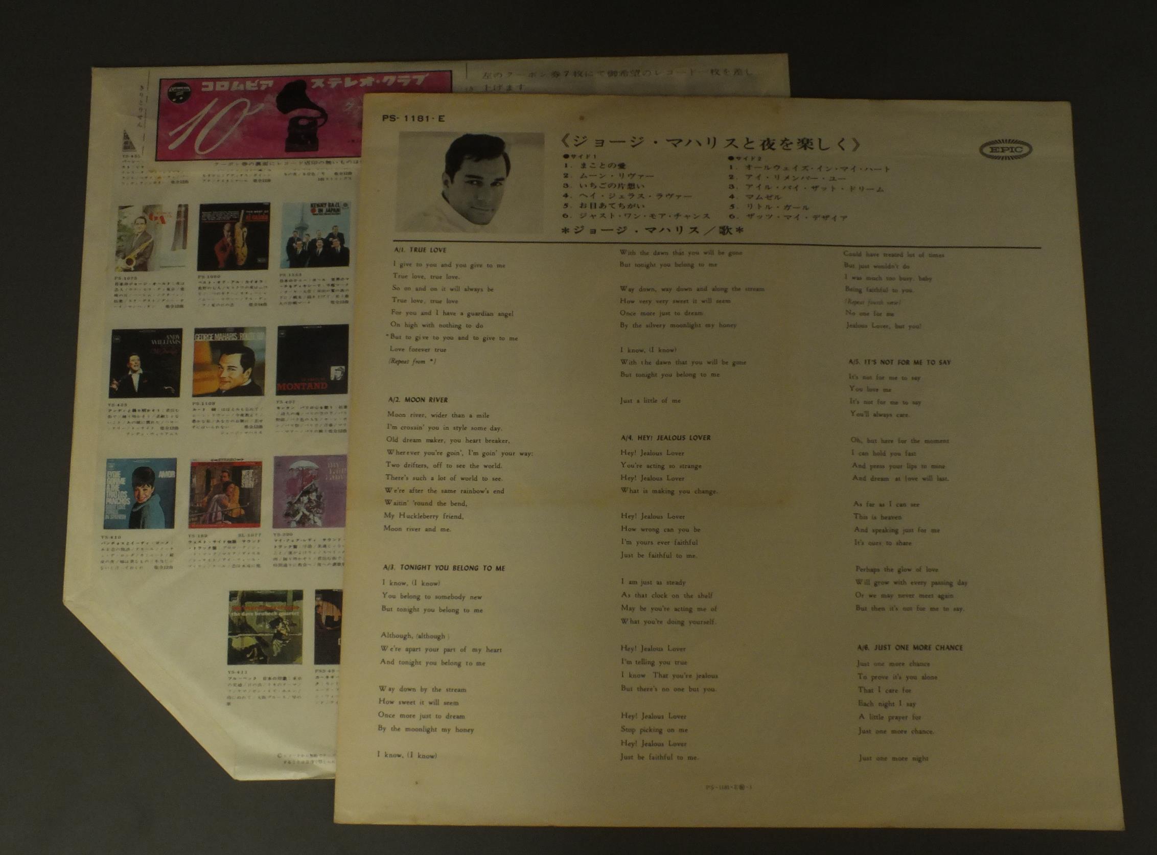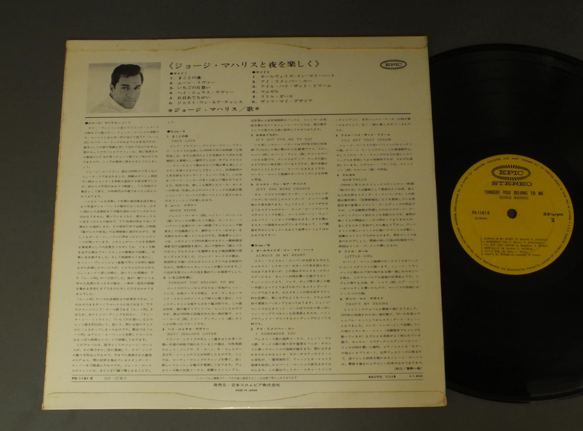 GEORGE MAHARISジョージ・マハリス/TONIGHT YOU BELONG TO MEジョージ・マハリスと夜を楽しく PS1181E 製造国:日本盤 / Media:LP外観:EX盤の状態:EX- 価格(税込):¥2,165(売約済) 送料 7inch:定形外郵便 360円~LP:定形外郵便 660円~送料は、注文の最終画面で確認頂けます。 > > GEORGE MAHARIS/TONIGHT YOU BELONG TO ME 外観 (EX)特記事項:特記なし。外観EXの共通説明:ダメージが限定的。中古品としては保存状態がよい方。シミ、ヨゴレ、スレ 少し~軽度。 盤の状態 (EX-)特記事項:薄いスリキズ・細かい表面スレ軽くある感じ。全体的には殆どが軽微なものの様子です。盤EX-の共通説明:盤面のスリキズが多少有り。音に出そうなものは殆ど無いように見える~さほど気にならないぐらいの軽いプチ数カ所程度。 その他:ペラジャケ Tweet それぞれの画像をクリックすると、大きい写真が見られます こちらの商品もお勧めです 1,210円 ART GARFUNKELアート・ガーファンクル / ANGEL CLAREエンジェル・クレア 1,320円 NEIL DIAMONDニール・ダイアモンド / JONATHAN LIVINGSTON SEAGULLかもめのジョナサン 770円 HUBERT KAHヒューバート・カー / ANGEL 07エンジェル07 770円 ELTON JOHNエルトン・ジョン / ROCK OF THE WESTIESロック・オブ・ザ・ウェスティーズ 770円 BERTIE HIGGINSバーティ・ヒギンズ / JUST ANOTHER DAY IN PARADISEカサブランカ 1,210円 TACOタコ / LET`S FACE THE MUSICフェイス・ザ・ミュージック 440円 NEIL DIAMONDニール・ダイアモンド / SERENADE永遠のセレナーデ 1,650円 ELTON JOHNエルトン・ジョン / ELTON JOHNエルトン・ジョン