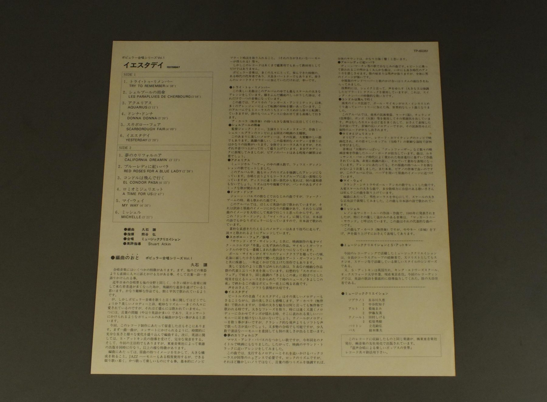 HIROSHI KUMAGAYA熊谷弘/YESTERDAYポピュラー合唱シリーズVOL.1 TP60351 製造国:日本盤 / Media:LP外観:EX盤の状態:EX+ 価格(税込):¥550(売約済) 送料 7inch:定形外郵便 360円~LP:定形外郵便 660円~送料は、注文の最終画面で確認頂けます。 > > HIROSHI KUMAGAYA/YESTERDAY 外観 (EX)特記事項:特記なし。外観EXの共通説明:ダメージが限定的。中古品としては保存状態がよい方。シミ、ヨゴレ、スレ 少し~軽度。 盤の状態 (EX+)特記事項:極薄いスリキズ・スレ少し。一見してきれいな状態です。盤EX+の共通説明:盤面の極薄いスリキズ、スレ少し程度 音に出そうなものは無いように見える(極軽微なソフトティック音は除く)。 帯の状態 ():特記なし。 その他:見本盤 Tweet それぞれの画像をクリックすると、大きい写真が見られます こちらの商品もお勧めです 770円 RENATO BRUSONレナード・ブルゾーン / LIVE IN CONCERT AT THE WIGMORE HALL LONDONロンドン・リサイタル・ライブ 990円 PRO CANTIONE ANTIQUA LONDONブルーノ・ターナー - プロ・カンツィーオーネ・アンティカ / JOHANNES OCKEGHEM - MISSA PRO DEFUNCTISオケゲム - 死者のためのミサ曲 1,320円 STADE-KATZシュターデ-カッツ / F.V.STADE RECITAL LIVEリサイタル・ライヴ! 990円 JAROFFジャーロフ / DARK EYES RUSSIAN FOLK SONGS黒い瞳-ロシア民謡名曲集 990円 RAYMOND LEPPARDレイモンド・レパード / MONTEVERDI-MADRIGALI AMOROSIモンテヴェルディ-愛のマドリガーレ 990円 KARL FORSTER-WOLFGANG MEYER etcカルル・フォルスター-ヴォルフガンク・マイヤー 他 / SCHUBERT-DEUTSCHE MESSE GEISTLICHE MUSIK SERIES VOL15シューベルト-ドイツ・ミサ曲 宗教音楽シリーズ 第15集 1,870円 CLUYTENS - VIENNA PHIL.クリュイタンス - ウィーン・フィル / HUMPERDINCK - HANSEL UND GRETEL 2LP BOXフンパーディンク - ヘンゼルとグレーテル 2枚組 1,980円 YUZO SOTOYAMA - OHSAKA PHIL. ORCH.外山雄三 - 大阪フィル - 大阪労音フロイデ合唱団 / YUZO SOTOYAMA - SYM. HONOH + AUTOGRAPHED外山雄三 - 炎の歌 ( 外山サイン付 )