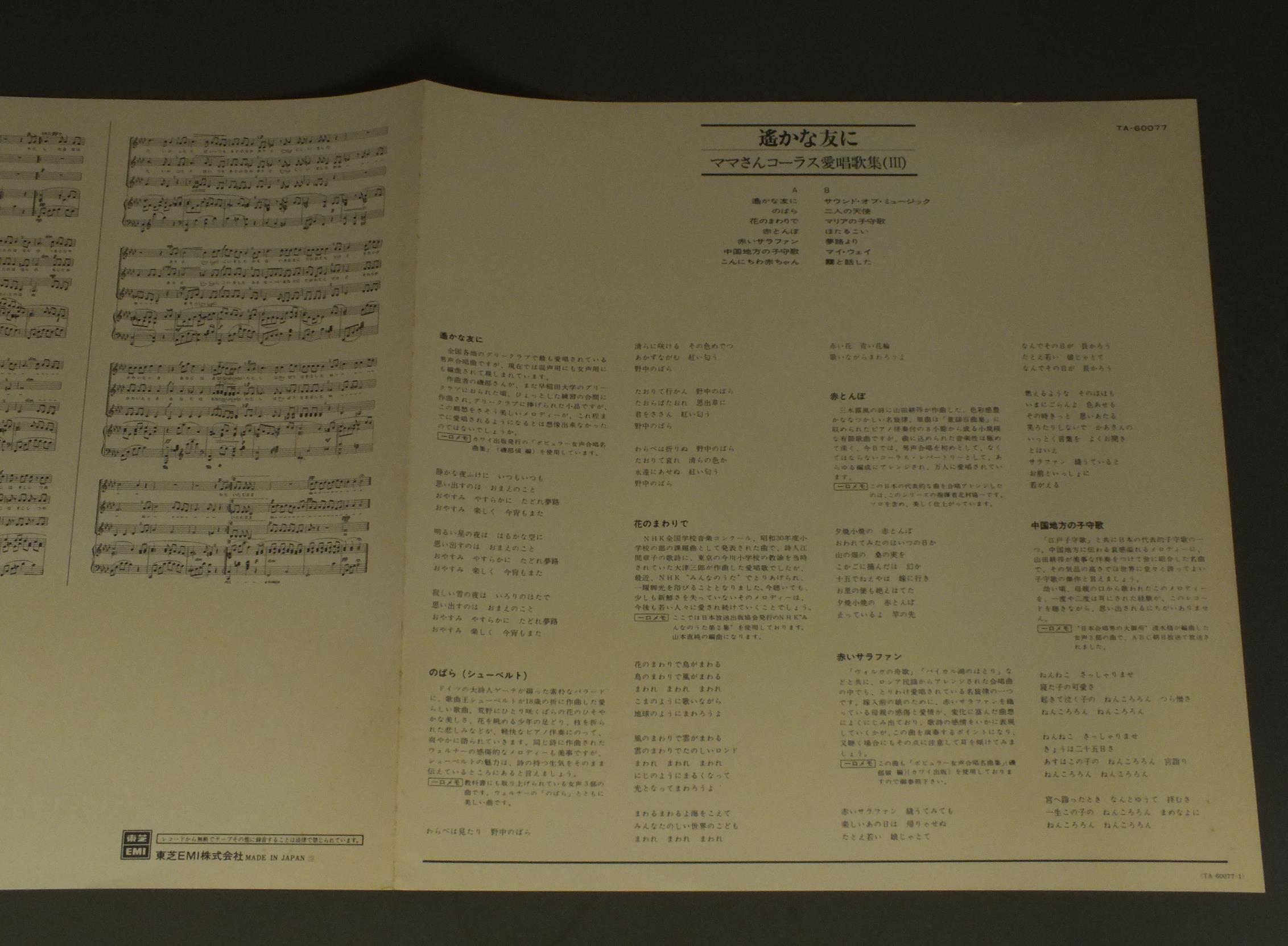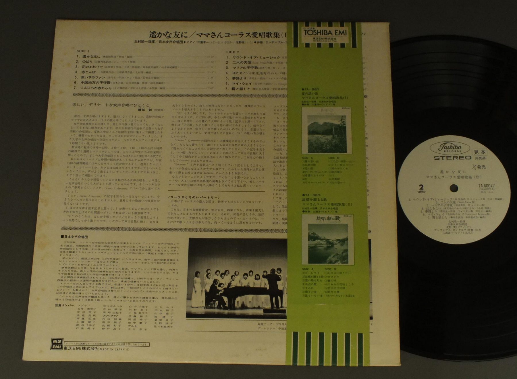 北村協一/遥かな友に/ママさんコーラス愛唱歌集(3) TA60077 製造国:日本盤 / Media:LP外観:VG+盤の状態:EX+ 価格(税込):¥990(売約済) 送料 7inch:定形外郵便 360円~LP:定形外郵便 660円~送料は、注文の最終画面で確認頂けます。 > > / 外観 (VG+)特記事項:シミ有り外観VG+の共通説明:ダメージやや有り。シミ、ヨゴレ、スレなど多少~やや多め。 盤の状態 (EX+)特記事項:極薄いスリキズ・スレ少し。一見してきれいな状態です。盤EX+の共通説明:盤面の極薄いスリキズ、スレ少し程度 音に出そうなものは無いように見える(極軽微なソフトティック音は除く)。 帯の状態 ():特記なし。 その他:見本盤 Tweet それぞれの画像をクリックすると、大きい写真が見られます こちらの商品もお勧めです 990円 HEINZ WALLBERGハインツ・ワルベルク / BALTSA-OPERN-RECITALバルツァ-オペラ・リサイタル 990円 MIWAKO MATSUMOTO松本美和子 / ARIE ANTICHE ITALIANE 1 CARO MIO BENイタリア古典歌曲集1 カロ ミオ ベン 2,420円 MUTI - NEW PHILHARMONIA ORCH.ムーティエ - ニュー・フィルハーモニア管弦楽団 / VERDI - UN BALLO IN MASCHERA 3LP BOXヴェルディ - 仮面舞踏会 3枚組 1,320円 ELLY AMELINGエリー・アメリンク / SINGT LIEDER BRAHMSブラームス歌曲集 990円 MADELEINE GREYマドレーヌ・グレイ / CHANTS D`AUVERGNE etcマドレーヌ・グレイ 名唱集-オーヴェルニュの歌 他 990円 JULIA HAMARIユリア・ハマリ / JULIA HAMARI ALT RECITALユリア・ハマリ リサイタル 990円 STADE - ALMEIDA - ROYAL PHILHARMONICフレデリカ・フォン・シュターデ / CANTELOUBE CHANTS D`AUVERGNEオーヴェルニュの歌 990円 MARIO ROSSIマリオ・ロッシ / SCHWARZKOPF 1952-12-1 シュヴァルツコップ 1952-12-1 ユリナッチペトリ 1954-1-4