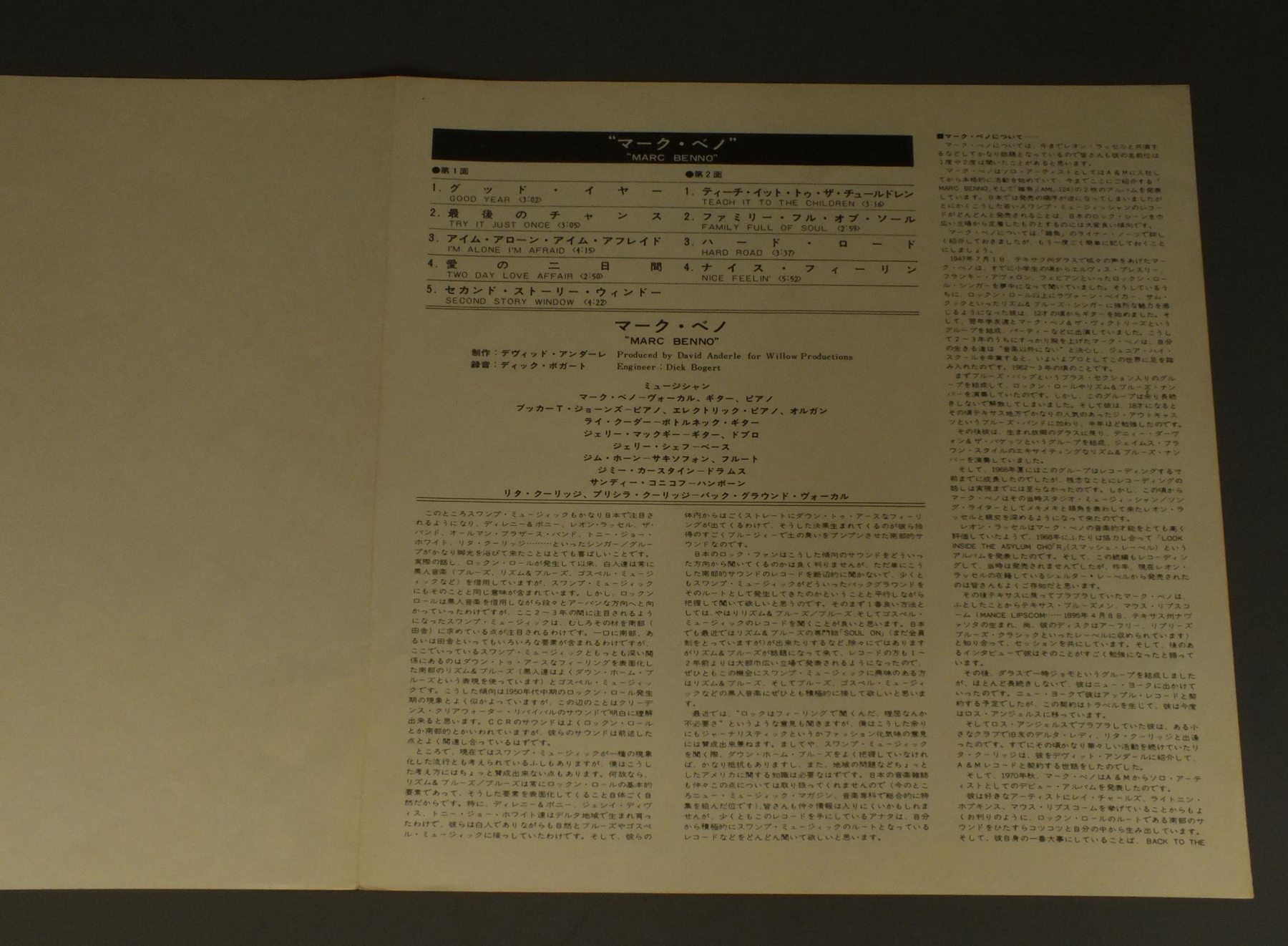 MARC BENNOマーク・ベノ/MARC BENNOマーク・ベノ AML144 製造国:日本盤 / Media:LP外観:EX盤の状態:EX- 価格(税込):¥1,650(売約済) 送料 7inch:定形外郵便 360円~LP:定形外郵便 660円~送料は、注文の最終画面で確認頂けます。 > > MARC BENNO/MARC BENNO 外観 (EX)特記事項:特記なし。外観EXの共通説明:ダメージが限定的。中古品としては保存状態がよい方。シミ、ヨゴレ、スレ 少し~軽度。 盤の状態 (EX-)特記事項:薄いスリキズ・細かい表面スレ軽くある感じです。プチ出そうな所は少し。軽微なものが中心の様子です。盤EX-の共通説明:盤面のスリキズが多少有り。音に出そうなものは殆ど無いように見える~さほど気にならないぐらいの軽いプチ数カ所程度。 Tweet それぞれの画像をクリックすると、大きい写真が見られます こちらの商品もお勧めです 662円 RICK SPRINGFIELDリック・スプリングフィールド / SUCCESS HASN`T SPOILED ME YETアメリカン・ガール 880円 ROBERT PALMERロバート・パーマー / PRIDEプライド 440円 JOHNNY MATHISジョニー・マティス / KILLING ME SOFTLY WITH HER SONGやさしく歌って 770円 JIM PHOTOGLOジム・フォトグロ / FOOL IN LOVE WITH YOUフール・イン・ラブ 770円 BERTIE HIGGINSバーティ・ヒギンズ / JUST ANOTHER DAY IN PARADISEカサブランカ 880円 NEIL DIAMONDニール・ダイアモンド / NEIL DIAMONDアイム・ア・ビリーバー 660円 ROBERT GOULETロバート・グーレ / SINCERELY YOURS 60s ISSUEニュー・トップ・ガイ ロバート・グーレは歌う ペラジャケ 1,320円 NEIL DIAMONDニール・ダイアモンド / HOT AUGUST NIGTグリーク・シアター・コンサート