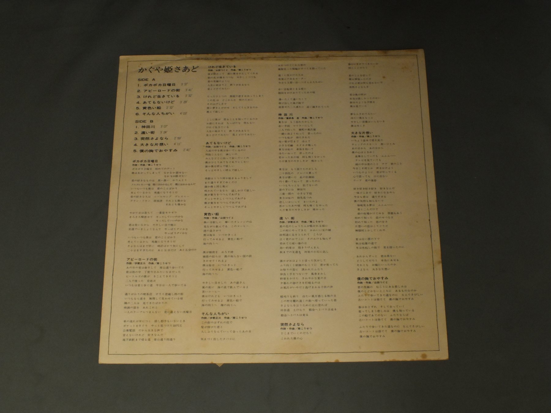 南こうせつとかぐや姫/かぐや姫さあど GW4007 製造国:日本盤 / Media:LP外観:EX盤の状態:EX 価格(税込):¥440(売約済) 送料 7inch:定形外郵便 360円~LP:定形外郵便 660円~送料は、注文の最終画面で確認頂けます。 > > / 外観 (EX)特記事項:シミ有り外観EXの共通説明:ダメージが限定的。中古品としては保存状態がよい方。シミ、ヨゴレ、スレ 少し~軽度。 盤の状態 (EX)特記事項:薄いスリキズ・スレ軽くある感じ。殆どが軽微なものの様子です。盤EXの共通説明:盤面のスリキズが薄いものが少し~軽度 音に出そうなものは無いように見える(軽微なソフトティック音は除く)。 Tweet それぞれの画像をクリックすると、大きい写真が見られます こちらの商品もお勧めです 770円 JIRO SUGITA杉田二郎 / DAIMEI NO NAI AI NO UTA題名のない愛の唄 1,980円 FRUIDO古井戸 / YESTERDAYSイエスタデイズ 1,210円 SHIGERU IZUMIYA泉谷しげる / LIVEライブ泉谷 440円 CHANCHAKOちゃんちゃこ / 1st ALBUMちゃんちゃこファースト 1,980円 HAKO YAMAZAKI山崎ハコ / NINGEN MAGAI人間まがい 770円 SHIGERU IZUMIYA泉谷しげる / GOLD RUSH黄金狂時代 770円 IRUKAイルカ / NOEL`S FANTASTIC TRIPノエルの不思議な冒険 2,200円 TAKUROU YOSHIDA吉田拓郎 / ON STAGEオン・ステージ