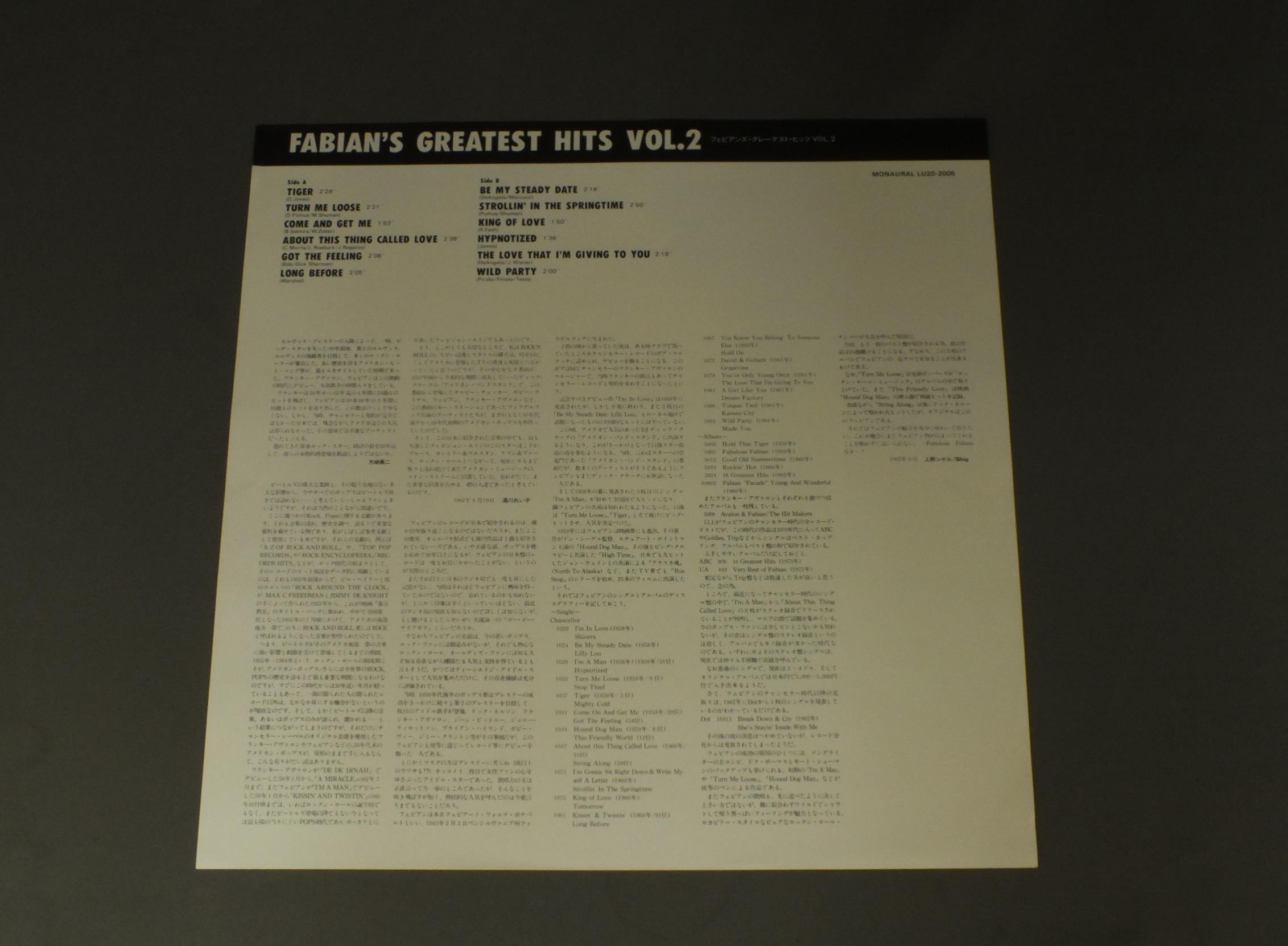 FABIANフェビアン/GREATEST HITS! VOL.2グレーテスト・ヒッツ VOL.2 LU20 2004 製造国:日本盤 / Media:LP外観:EX+盤の状態:EX+帯:EX+ 価格(税込):¥1,713(売約済) 送料 7inch:定形外郵便 360円~LP:定形外郵便 660円~送料は、注文の最終画面で確認頂けます。 > > FABIAN/GREATEST HITS! VOL.2 外観 (EX+)特記事項:特記なし。外観EX+の共通説明:中古としては美品、一見してきれいでダメージが軽微。シミ、ヨゴレ、スレ有っても僅か~少し。 盤の状態 (EX+)特記事項:極薄いスリキズ・スレ少し。一見してきれいな状態です。盤EX+の共通説明:盤面の極薄いスリキズ、スレ少し程度 音に出そうなものは無いように見える(極軽微なソフトティック音は除く)。 帯の状態 (EX+):特記なし。 Tweet それぞれの画像をクリックすると、大きい写真が見られます こちらの商品もお勧めです 1,650円 ELVIS PLESLEYエルヴィス.プレスリー / ELVIS-THAT`S THE WAY IT ISエルヴィス.オン・ステージVOL.1 1,210円 ELVIS PRESLEY / ON STAGE FEBRUARY 1970プレスリー・オン・ステージ 1970 440円 VENTURESベンチャーズ / POPS IN JAPANポップス・イン・ジャパン 1,210円 ELVIS PRESLEY / IN PERSON AT THE INTERNATIONAL HOTEL LAS VEGAS.NEVADA 990円 RICK NELSONリック・ネルソン / ALBUM SEVEN BY RICKアルバム・セブン・バイ・リック 1,210円 EVERLY BROTHERSエヴァリー・ブラザース / DATE WITH EVERY BROTHERSデイト・ウィズ・エヴァリー・ブラザーズ 1,210円 ELVIS PRESLEYエルヴィス・プレスリー / THAT`S THE WAY IT ISこの胸のときめきを 1,320円 ELVIS PRESLEY / THAT`S THE WAY IT ISこの胸のときめきを