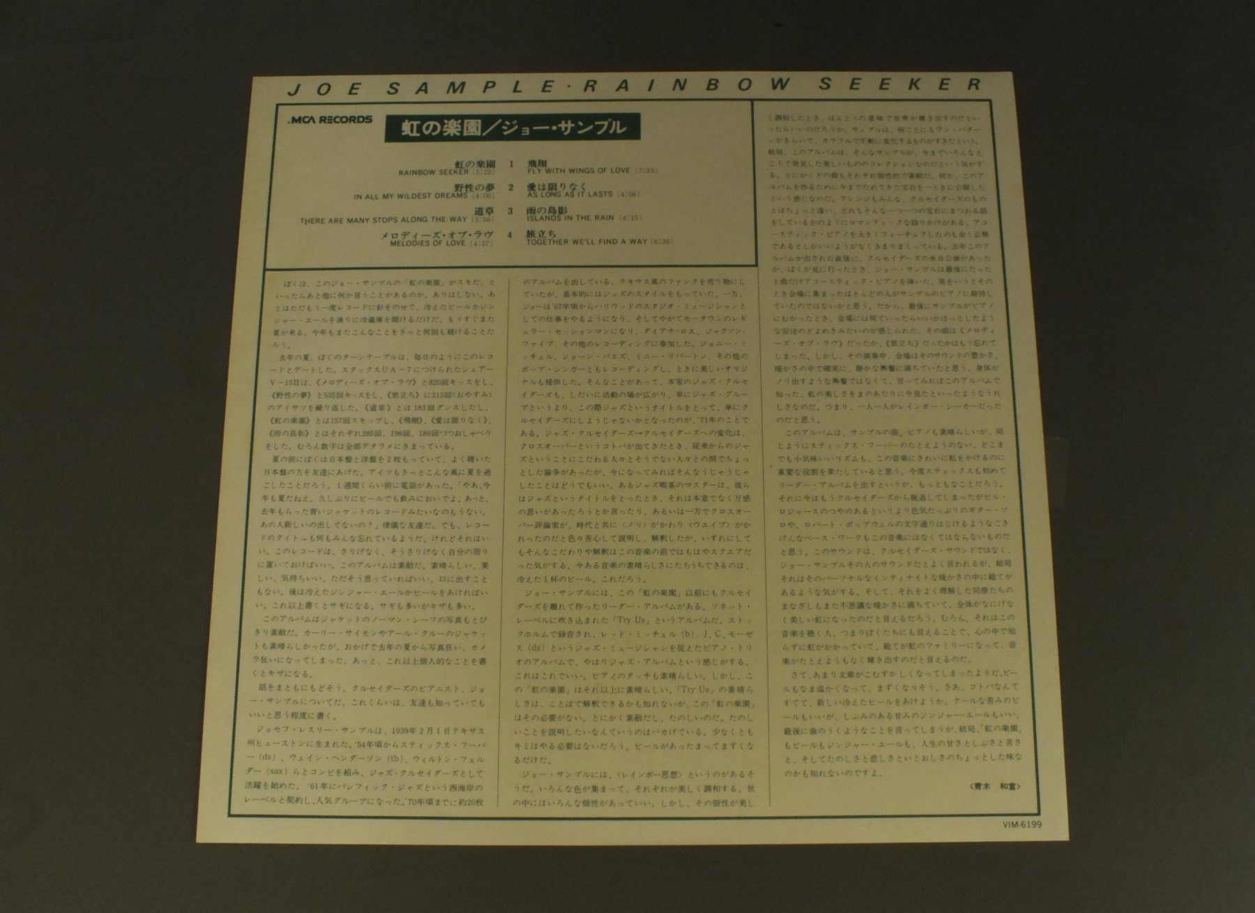 JOE SAMPLEジョー・サンプル/RAINBOW SEEKER虹の楽園 VIM6199 製造国:日本盤 / Media:LP外観:EX盤の状態:EX+帯:EX 価格(税込):¥1,100(売約済) 送料 7inch:定形外郵便 360円~LP:定形外郵便 660円~送料は、注文の最終画面で確認頂けます。 > > JOE SAMPLE/RAINBOW SEEKER 外観 (EX)特記事項:特記なし。外観EXの共通説明:ダメージが限定的。中古品としては保存状態がよい方。シミ、ヨゴレ、スレ 少し~軽度。 盤の状態 (EX+)特記事項:極薄いスリキズ・スレ少し。一見してきれいな状態です。盤EX+の共通説明:盤面の極薄いスリキズ、スレ少し程度 音に出そうなものは無いように見える(極軽微なソフトティック音は除く)。 帯の状態 (EX):特記なし。 Tweet それぞれの画像をクリックすると、大きい写真が見られます こちらの商品もお勧めです 1,650円 KENJI OHMURA etc大村憲司・渡辺香津美 & リー・リトナー / CONCIERTO DE ARANJUEZアランフェス協奏曲 770円 MAINIERI & BERNHARDTマイニエリ & バーンハート / FREE SMILESフリー・スマイル 1,320円 CUSCOクスコ / PLANET VOYAGE惑星旅行 660円 HERB ALPERTハーブ・アルパート / MAGIC MANマジック・マン 1,210円 RETURN TO FOREVER FEATURING CHICK COREAリターン・トゥ・フォーエヴァー / NO MYSTERYノー・ミステリー 1,210円 RON CARTERロン・カーター / THE MAN WITH THE BASS.RON CARTERザ・マン・ウィズ・ザ・ベース ロン・カーター 660円 DAVE VALENTINデイヴ・バレンティン / LEGENDS伝説 770円 CHUCK MANGIONEチャック・マンジョーネ / FUN&GAMESファン・アンド・ゲームス