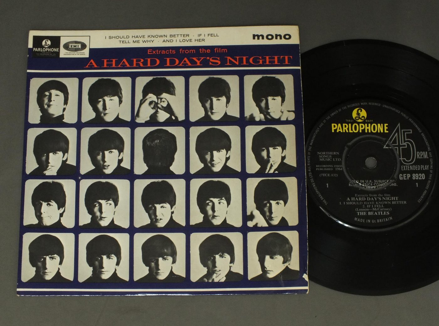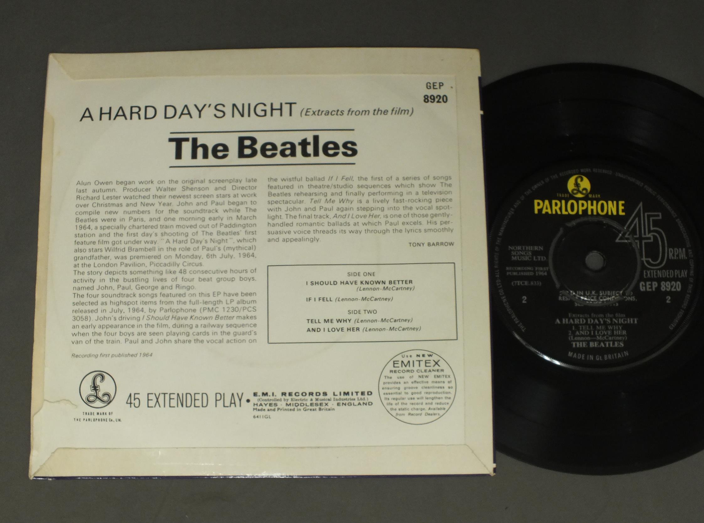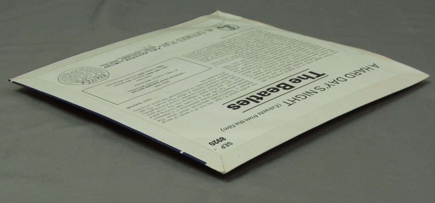 BEATLES/EXTRACTS FROM THE FILM A HARD DAY`S NIGHT EP GEP8920 製造国:英国盤 / Media:7inchMatrix:1N/1/DO | 2N/2/OH外観:EX盤の状態:EX 価格(税込):¥9,900(売約済) 送料 7inch:定形外郵便 360円~LP:定形外郵便 660円~送料は、注文の最終画面で確認頂けます。 > > BEATLES/EXTRACTS FROM THE FILM A HARD DAY`S NIGHT EP 外観 (EX)特記事項:表ジャケは全体的にコーティングのヨレシワやスレ、よごれ等は少ない感じですが、レコード取り出し口付近に多少ヨレや剥がれ小有。裏ジャケもよごれは少なくきれいな状態ですが、レコード取り出し口下の方に横に切れ有り。外観EXの共通説明:ダメージが限定的。中古品としては保存状態がよい方。シミ、ヨゴレ、スレ 少し~軽度。 盤の状態 (EX)特記事項:薄いスリキズ・スレ軽く有る感じ。殆どが軽微なものの様子で、きれいな印象。曲間など、静かなところを中心に聴いて見ましたが、チリノイズ少ないきれいな再生具合でした。盤EXの共通説明:盤面のスリキズが薄いものが少し~軽度 音に出そうなものは無いように見える(軽微なソフトティック音は除く)。 Tweet それぞれの画像をクリックすると、大きい写真が見られます こちらの商品もお勧めです 5,500円 GEORGE HARRISON / LIVING IN THE MATERIAL WORLD 5,500円 GEORGE HARRISON / THIRTY THREE & 1/3 4,950円 JOHN & YOKO - PLASTIC ONO BANDF / SOME TIME IN NEW YORK CITY 5,500円 JOHN LENNON / SHAVED FISH 5,500円 BEATLES / AT THE HOLLYWOOD BOWL