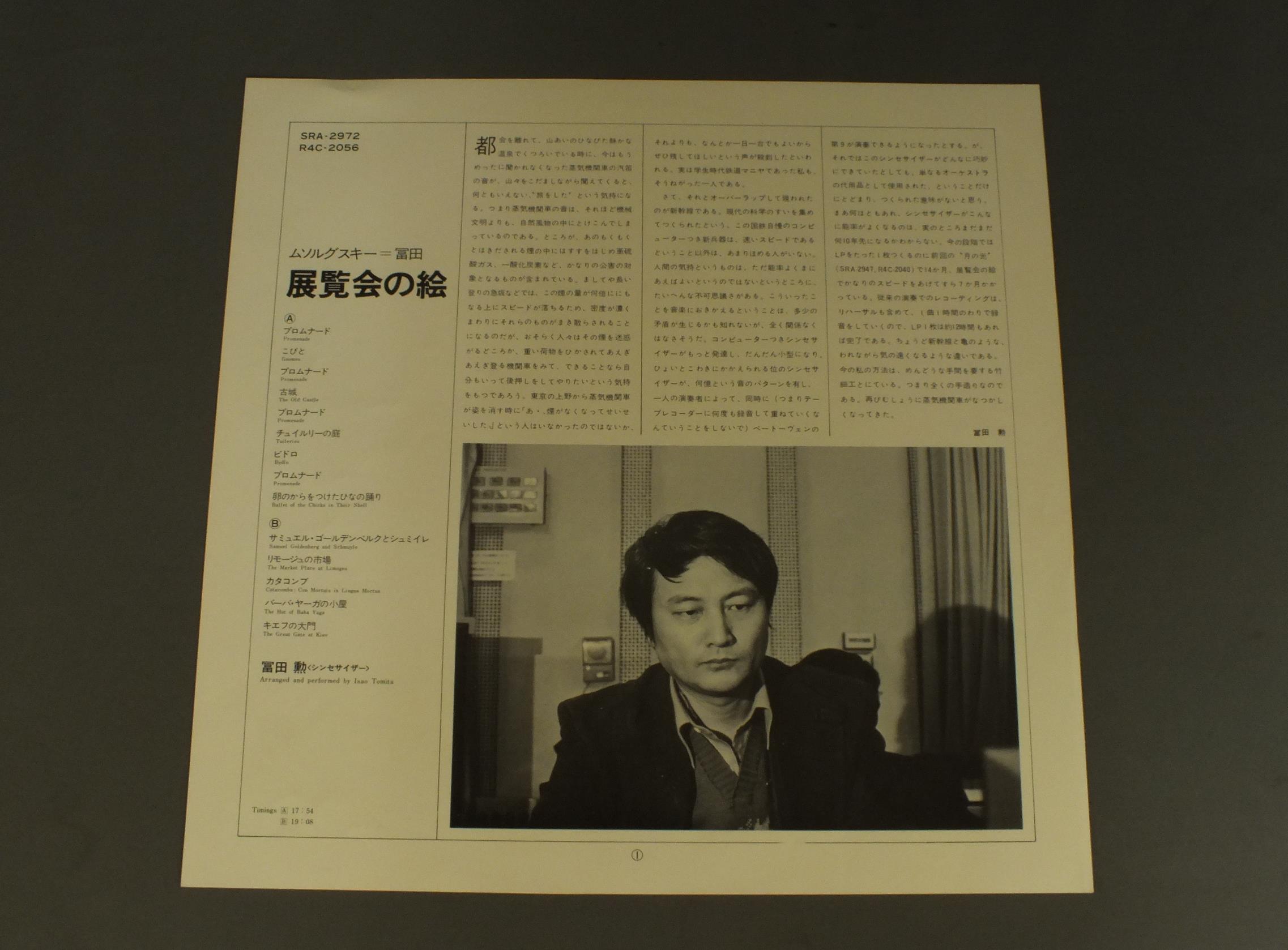 ISAO TOMITA冨田勲/MOUSSORGSKY-TOMITA/PICTURES AT AN EXHIBITIONムソルグスキー-冨田/展覧会の絵 SRA2972 製造国:日本盤 / Media:LP外観:EX盤の状態:EX 価格(税込):¥1,320(売約済) 送料 7inch:定形外郵便 360円~LP:定形外郵便 660円~送料は、注文の最終画面で確認頂けます。 > > ISAO TOMITA/MOUSSORGSKY-TOMITA/PICTURES AT AN EXHIBITION 外観 (EX)特記事項:裏ジャケ背下に印字テープ有り。外観EXの共通説明:ダメージが限定的。中古品としては保存状態がよい方。シミ、ヨゴレ、スレ 少し~軽度。 盤の状態 (EX)特記事項:薄いスリキズ・スレ少しある感じ。一見してきれいな感じです。盤EXの共通説明:盤面のスリキズが薄いものが少し~軽度 音に出そうなものは無いように見える(軽微なソフトティック音は除く)。 Tweet それぞれの画像をクリックすると、大きい写真が見られます こちらの商品もお勧めです 660円 KITARO喜多郎 / KI 氣 1,210円 KITARO喜多郎 / OASIS KITAROオアシス 喜多郎 770円 FRANCOIS GLORIEUXフランソワ・グロリュー / FRANCOIS GLORIEUX PLAYS THE BEATLESグロリュー ビートルズを弾く 770円 KITARO喜多郎 / 1st ALBUM天界 660円 ISAO TOMITA冨田勲 / HOLST-TOMITA-THE PLANETSホルスト-冨田編-組曲 惑星 770円 KITARO喜多郎 / IN PERSONイン・パースン 770円 ISAO TOMITA冨田勲 / MOUSSORGSKY-PICTURES AT AN EXHIBITIONムソルグスキー 展覧会の絵 440円 KITARO喜多郎 / TEN KAI ASTRAL TRIP天界