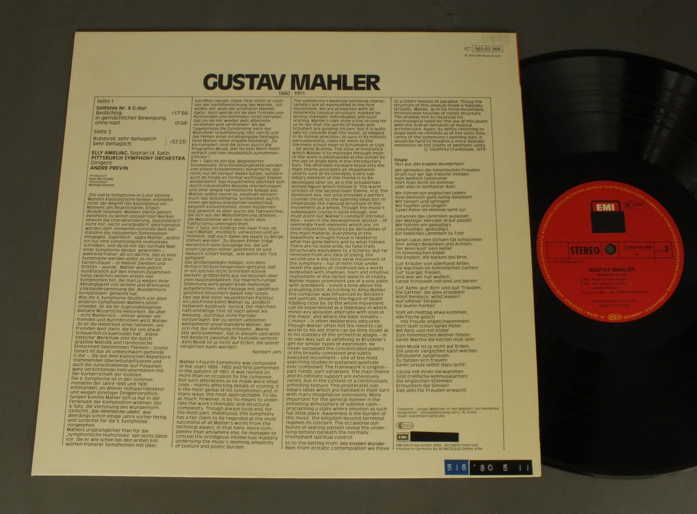 AMELING/PREVIN/MAHLER:SYM. NO.4 1C063 03 368 製造国:独盤 / Media:LP外観:EX盤の状態:EX+ 価格(税込):¥1,980(売約済) 送料 7inch:定形外郵便 360円~LP:定形外郵便 660円~送料は、注文の最終画面で確認頂けます。 > > AMELING/PREVIN/MAHLER:SYM. NO.4 外観 (EX)特記事項:裏ジャケ背下に印字テープ有り。外観EXの共通説明:ダメージが限定的。中古品としては保存状態がよい方。シミ、ヨゴレ、スレ 少し~軽度。 盤の状態 (EX+)特記事項:極薄いスリキズ・スレ少し。一見してきれいな状態です。盤EX+の共通説明:盤面の極薄いスリキズ、スレ少し程度 音に出そうなものは無いように見える(極軽微なソフトティック音は除く)。 Tweet それぞれの画像をクリックすると、大きい写真が見られます こちらの商品もお勧めです 1,980円 THOMAS-PIAZZINI / WAGNER DIE HAUSMUSIK 1,650円 BOHM / MOZART KLAVIERKONZERT 1,320円 MUTI / FRANCK-SYM. 2,420円 SEIJI OZAWA小沢征爾 / RIMSKY-KORSSAKOFF/SCHEHERAZADE 1,430円 KARAJAN / WEBER OUVERTUREN 1,430円 SCHMIND-ISSERSTEDT / BEETHOVEN SYM. NO7 990円 BOULT / R.VAUGHAN WILLIAMS-ENGLISH FOLK SONG SUITE 990円 MUNCH / PROKOFIEV-ROMEO&JULIET -EXCERPT-