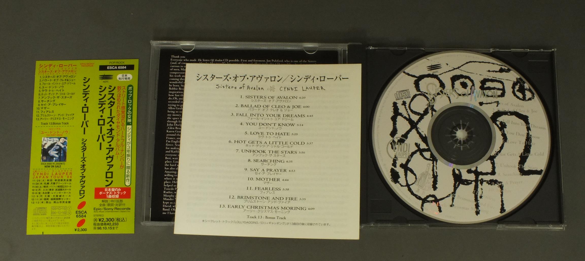 CYNDI LAUPERシンディ・ローパー/SISTERS OF AVALONシスターズ・オヴ・アヴァロン ESCA6584 製造国:日本盤 / Media:CD外観:EX+盤の状態:EX+帯:EX+ 価格(税込):¥330 送料 7inch:定形外郵便 360円~LP:定形外郵便 660円~送料は、注文の最終画面で確認頂けます。 > > CYNDI LAUPER/SISTERS OF AVALON 外観 (EX+)特記事項:あまりヨレやよごれ等は無くきれいな感じ。外観EX+の共通説明:中古としては美品、一見してきれいでダメージが軽微。シミ、ヨゴレ、スレ有っても僅か~少し。 盤の状態 (EX+)特記事項:微細なスリキズが少々。きれいな感じの盤面です。盤EX+の共通説明:盤面の極薄いスリキズ、スレ少し程度 音に出そうなものは無いように見える(極軽微なソフトティック音は除く)。 帯の状態 (EX+):あまりヨレやよごれ等は無くきれいな感じ。 Tweet それぞれの画像をクリックすると、大きい写真が見られます こちらの商品もお勧めです 1,100円 KARLA BONOFFカーラ・ボノフ / RESTLESS NIGHTSささやく夜 1,980円 JUDY COLLINSジュディ・コリンズ / BREAD & ROSESパンと薔薇の人生 1,650円 KATE BUSHケイト・ブッシュ / LION HEARTライオン・ハート