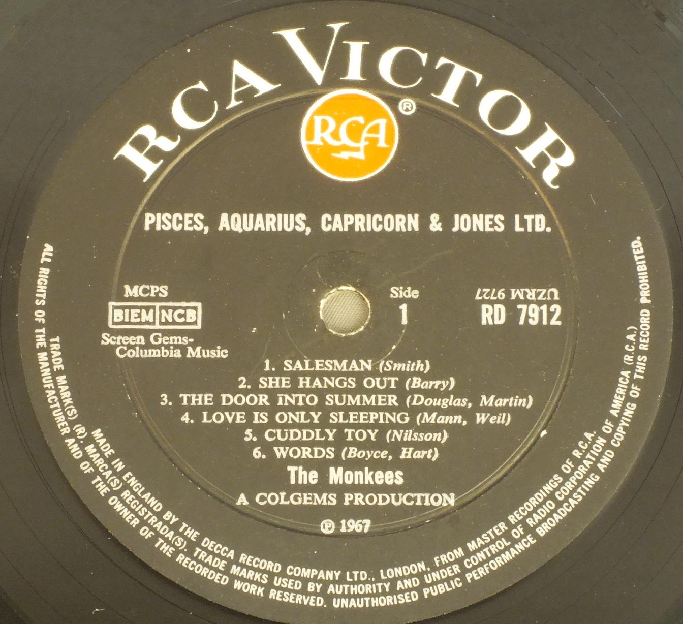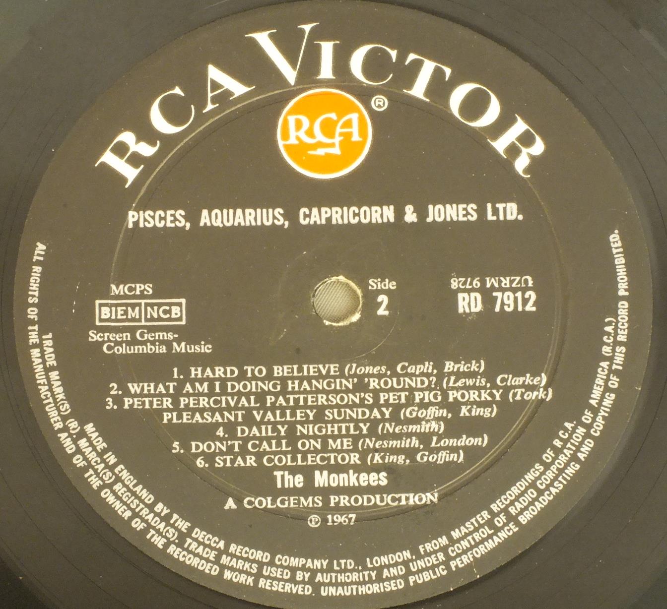 MONKEES/PISCES AQUARIUS CAPRICORN AND JONES LTD RD7912 製造国:英国盤 / Media:LPMatrix:1K外観:EX盤の状態:VG+ 価格(税込):¥2,750(売約済) 送料 7inch:定形外郵便 360円~LP:定形外郵便 660円~送料は、注文の最終画面で確認頂けます。 > > MONKEES/PISCES AQUARIUS CAPRICORN AND JONES LTD 外観 (EX)特記事項:英国盤は表ジャケが厚手のコーティング仕様。全体的にコーティングのヨレシワも少なく、スレやスリキズ等も薄い感じのきれいな状態。裏ジャケ側もよごれ等は少ないです。外観EXの共通説明:ダメージが限定的。中古品としては保存状態がよい方。シミ、ヨゴレ、スレ 少し~軽度。 盤の状態 (VG+)特記事項:B面1曲目に、溝に沿ったキズが有りますが、針飛びは無く、2回転ぐらいノイズが出ます。盤VG+の共通説明:盤面にスリキズが多少~やや有り、音に出そうなものも多少ある。 Tweet それぞれの画像をクリックすると、大きい写真が見られます こちらの商品もお勧めです 1,210円 STYX / KILROY WAS HERE 770円 KENNY ROGERS & THE FRIST EDITION / TRANSITION 770円 PLAYER / DANGER ZONE 2,200円 CANDYMAN / BRING YOU CANDYPOWER 1,320円 CLARENCE CLEMONS AND THE RED BANK ROCKERS / RESCUE 1,320円 GUESS WHO / ROCKIN` 1,650円 JEFFERSON AIRPLANE / BARK 2,200円 CANDYMAN / BRING YOU CANDYPOWER