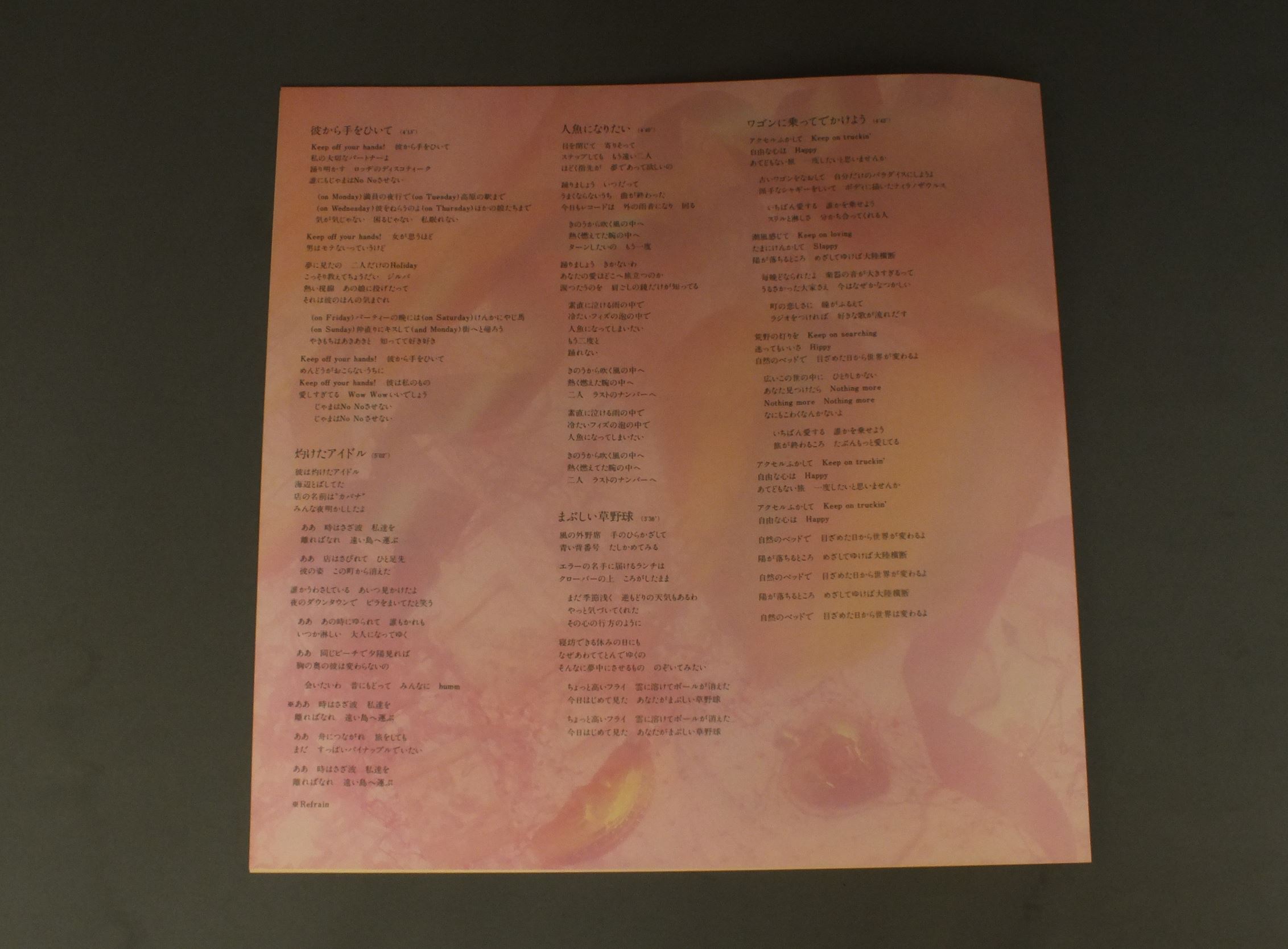 YUMING松任谷由実/SURF & SNOW VOLUME ONEサーフ・アンド・スノウ ETP90034 製造国:日本盤 / Media:LP外観:EX盤の状態:EX+帯:EX 価格(税込):¥1,100(売約済) 送料 7inch:定形外郵便 360円~LP:定形外郵便 660円~送料は、注文の最終画面で確認頂けます。 > > YUMING/SURF & SNOW VOLUME ONE 外観 (EX)特記事項:特記なし。外観EXの共通説明:ダメージが限定的。中古品としては保存状態がよい方。シミ、ヨゴレ、スレ 少し~軽度。 盤の状態 (EX+)特記事項:極薄いスリキズ・スレ少し。一見してきれいな状態です。盤EX+の共通説明:盤面の極薄いスリキズ、スレ少し程度 音に出そうなものは無いように見える(極軽微なソフトティック音は除く)。 帯の状態 (EX):特記なし。 Tweet それぞれの画像をクリックすると、大きい写真が見られます こちらの商品もお勧めです 1,320円 TAMAKI SAWA沢たまき / DON`T SMOKE IN BEDベッドで煙草を吸わないで 770円 AMI OZAKI尾崎亜美 / STOP MOTIONストップ・モーション 770円 NOA HORIGUCHI堀ロノア / SHOKAN-BAKO書簡箱 1,320円 NANA KINOMI木の実ナナ / BEST OF NANAベスト・オブ・ナナ-うぬぼれワルツ 440円 MUNEYUKI SATOHさとう宗幸 / AOBAJO KOIUTA青葉城恋歌 1,650円 TAKAYUKI INOUE井上堯之 / WATER MINDウォーター・マインド 1,320円 YASUHA泰葉 / RESERVEDリザーブド 440円 YASUHIRO SUZUKI鈴木康博 / SINCERELY