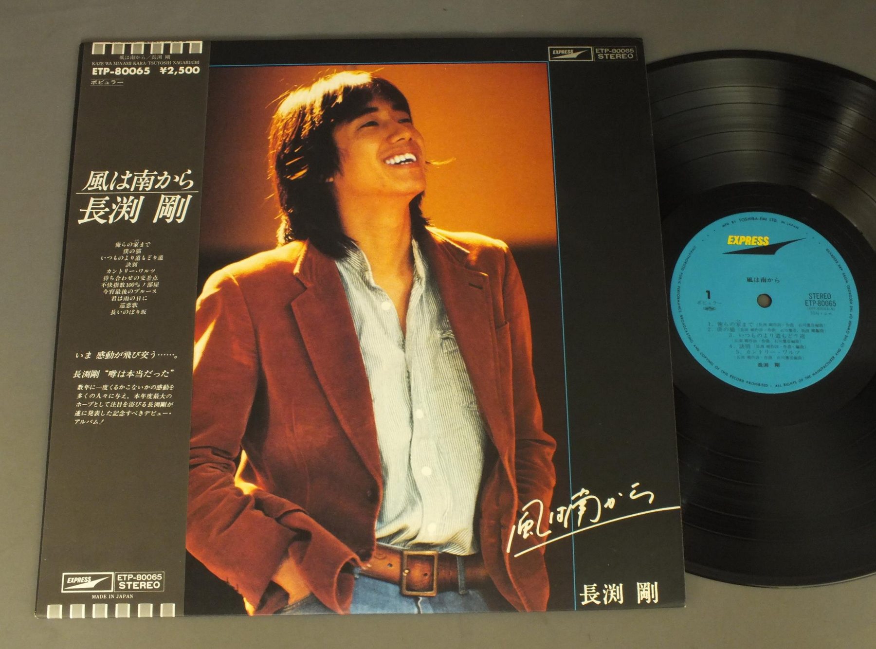 TSUYOSHI NAGABUCHI長渕剛/WIND FROM SOUTH風は南から ETP80065 製造国:日本盤 / Media:LP外観:EX+盤の状態:EX+帯:EX 価格(税込):¥2,057(売約済) 送料 7inch:定形外郵便 360円~LP:定形外郵便 660円~送料は、注文の最終画面で確認頂けます。 > > TSUYOSHI NAGABUCHI/WIND FROM SOUTH 外観 (EX+)特記事項:特記なし。外観EX+の共通説明:中古としては美品、一見してきれいでダメージが軽微。シミ、ヨゴレ、スレ有っても僅か~少し。 盤の状態 (EX+)特記事項:薄いスリキズ・スレ少し。一見してきれいな状態です。盤EX+の共通説明:盤面の極薄いスリキズ、スレ少し程度 音に出そうなものは無いように見える(極軽微なソフトティック音は除く)。 帯の状態 (EX):特記なし。 Tweet それぞれの画像をクリックすると、大きい写真が見られます こちらの商品もお勧めです 1,650円 YUMI ARAI etc荒井由実他 / YUMING SUMMER SONG BOOKユーミン・サマー・ソング・ブック 1,210円 TAKURO YOSHIDAよしだたくろう / ON STAGEオン・ステージ - ともだち 440円 KUWATA BAND桑田バンド / NIPPON NO ROCK BAND 1,210円 MIYUKI NAKAJIMA中島みゆき / OKAERINASAIおかえりなさい 770円 KUMIKO YAMASHITA山下久美子 / BABY BABY 770円 KOICHI MORITA & TOP GALLANTS森田公一 & トップギャラン / BEST HITSヒット全曲集 990円 YOUSUI INOUE井上陽水 / LIVE陽水ライヴ-もどり道 770円 TAKURO YOSHIDAよしだたくろう / OTOGIZOSHI伽草子