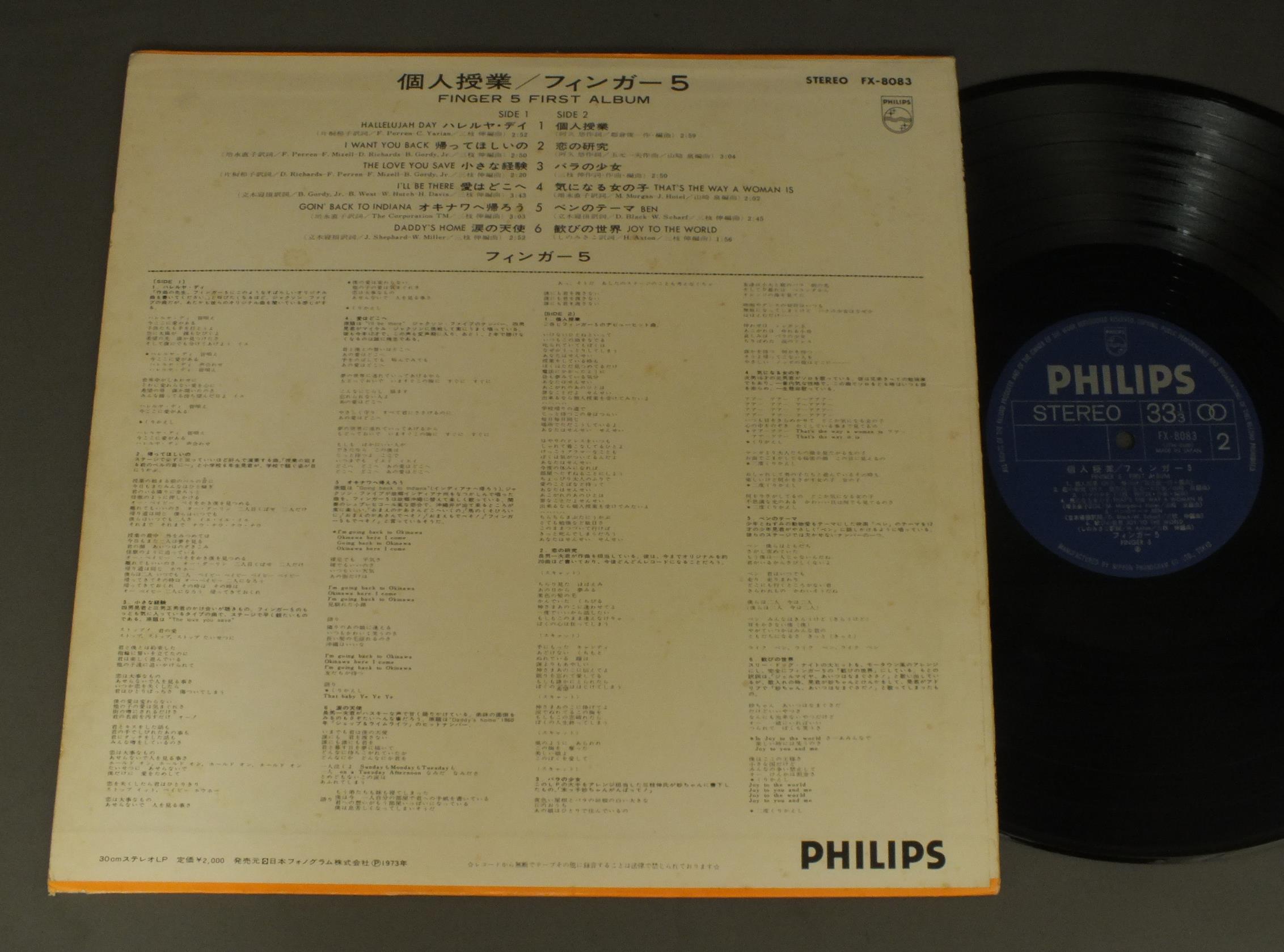 FINGER 5フィンガー5/FIRST ALBUM FINGER 5個人授業 FX8083 製造国:日本盤 / Media:LP外観:EX-盤の状態:EX- 価格(税込):¥2,097(売約済) 送料 7inch:定形外郵便 360円~LP:定形外郵便 660円~送料は、注文の最終画面で確認頂けます。 > > FINGER 5/FIRST ALBUM FINGER 5 外観 (EX-)特記事項:裏ジャケにシミ。ヘリスレ有。外観EX-の共通説明:ダメージ軽度~多少。 中古品としては普通の状態。シミ、ヨゴレ、スレなど軽く~多少。 盤の状態 (EX-)特記事項:薄いスリキズ・細かい表面スレ軽くある感じ。全体的には殆どが軽微なものの様子です。盤EX-の共通説明:盤面のスリキズが多少有り。音に出そうなものは殆ど無いように見える~さほど気にならないぐらいの軽いプチ数カ所程度。 Tweet それぞれの画像をクリックすると、大きい写真が見られます こちらの商品もお勧めです 440円 YASUHIRO SUZUKI鈴木康博 / SINCERELY 880円 TAKURO YOSHIDA吉田拓郎 / ROLLING 30 + FREE 7inchローリング30+おまけ7インチ 1,320円 SHIGERU MATSUZAKI松崎しげる / WATASHI NO UTA ORETACHI NO ASA私の歌 俺たちの朝 770円 KOICHI MORITA & TOP GALLANTS`森田公一とトップギャラン / BEST HITSヒット全曲集 770円 KUMIKO YAMASHITA山下久美子 / DANCIN`IN THE KITCHEN 660円 MASAMICHI SUGI杉真理 / SYMPHONY #10シンフォニー10 770円 CANDIESキャンディーズ / CANDY LABELキャンディ・レーベル 1,430円 ZIG ZAG / FLAMINGO