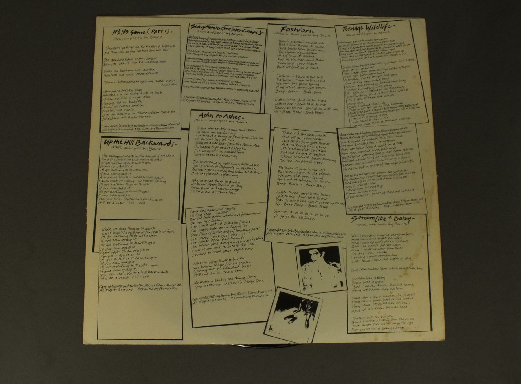 DAVID BOWIE/SCARY MONSTERS AQL1 3647 製造国:米国盤 / Media:LP外観:EX 価格(税込):¥1,320(売約済) 送料 7inch:定形外郵便 360円~LP:定形外郵便 660円~送料は、注文の最終画面で確認頂けます。 > > DAVID BOWIE/SCARY MONSTERS 外観 (EX)特記事項:インナーにシミ外観EXの共通説明:ダメージが限定的。中古品としては保存状態がよい方。シミ、ヨゴレ、スレ 少し~軽度。 その他:まだ Tweet それぞれの画像をクリックすると、大きい写真が見られます こちらの商品もお勧めです 5,500円 DAVID BOWIE / LIVE IN BREMEN `78 UNOFFICIAL RELEASE