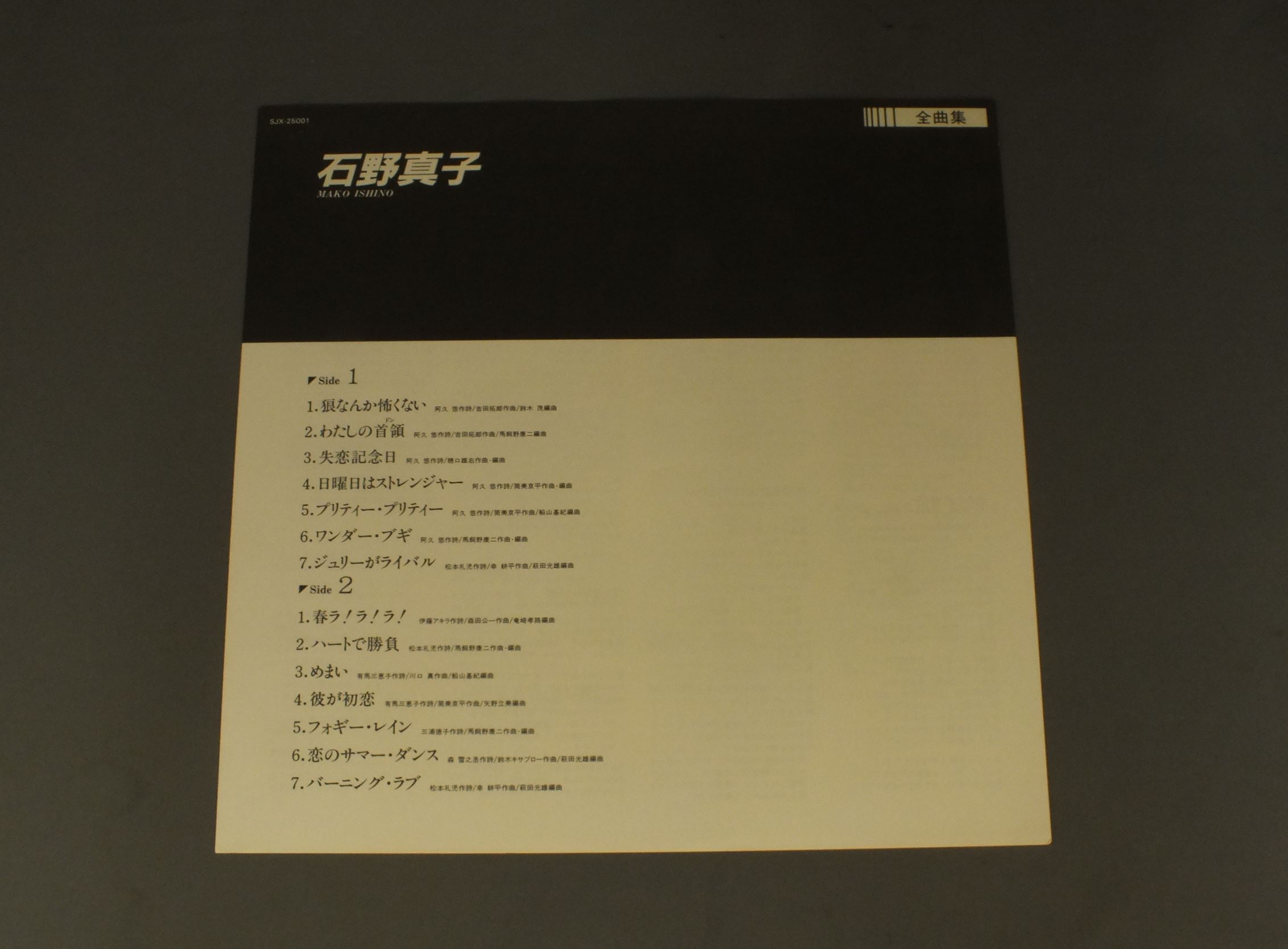 MAKO ISHINO石野真子/BEST全曲集 SJX25001 製造国:日本盤 / Media:LP外観:EX+盤の状態:EX+帯:EX+ 価格(税込):¥770(売約済) 送料 7inch:定形外郵便 360円~LP:定形外郵便 660円~送料は、注文の最終画面で確認頂けます。 > > MAKO ISHINO/BEST 外観 (EX+)特記事項:特記なし。外観EX+の共通説明:中古としては美品、一見してきれいでダメージが軽微。シミ、ヨゴレ、スレ有っても僅か~少し。 盤の状態 (EX+)特記事項:薄いスリキズ・スレ少し。一見してきれいな状態です。盤EX+の共通説明:盤面の極薄いスリキズ、スレ少し程度 音に出そうなものは無いように見える(極軽微なソフトティック音は除く)。 帯の状態 (EX+):特記なし。 Tweet それぞれの画像をクリックすると、大きい写真が見られます こちらの商品もお勧めです 1,210円 YUKO TOMITAとみたゆう子 / CLASSICAL HEARTクラシカル・ハート 770円 MIKI ASAKURA麻倉末稀 / LOVE AGAIN 1,320円 MIKI ASAKURA麻倉未稀 / LOVE AGAIN 880円 MOMOE YAMAGUCHI山口百恵 / 16s THEME16才のテーマ 550円 SONOKO KAWAI河合その子 / SONOKOその子 880円 MOMOE YAMAGUCHI山口百恵 / BEST HITS山口百恵ヒット全曲集 1,210円 PINK LADYピンク・レディー / AMERICA ! AMERICA ! AMERICA !アメリカ!アメリカ!アメリカ! 880円 MAKO ISHINO石野真子 / MAKO2