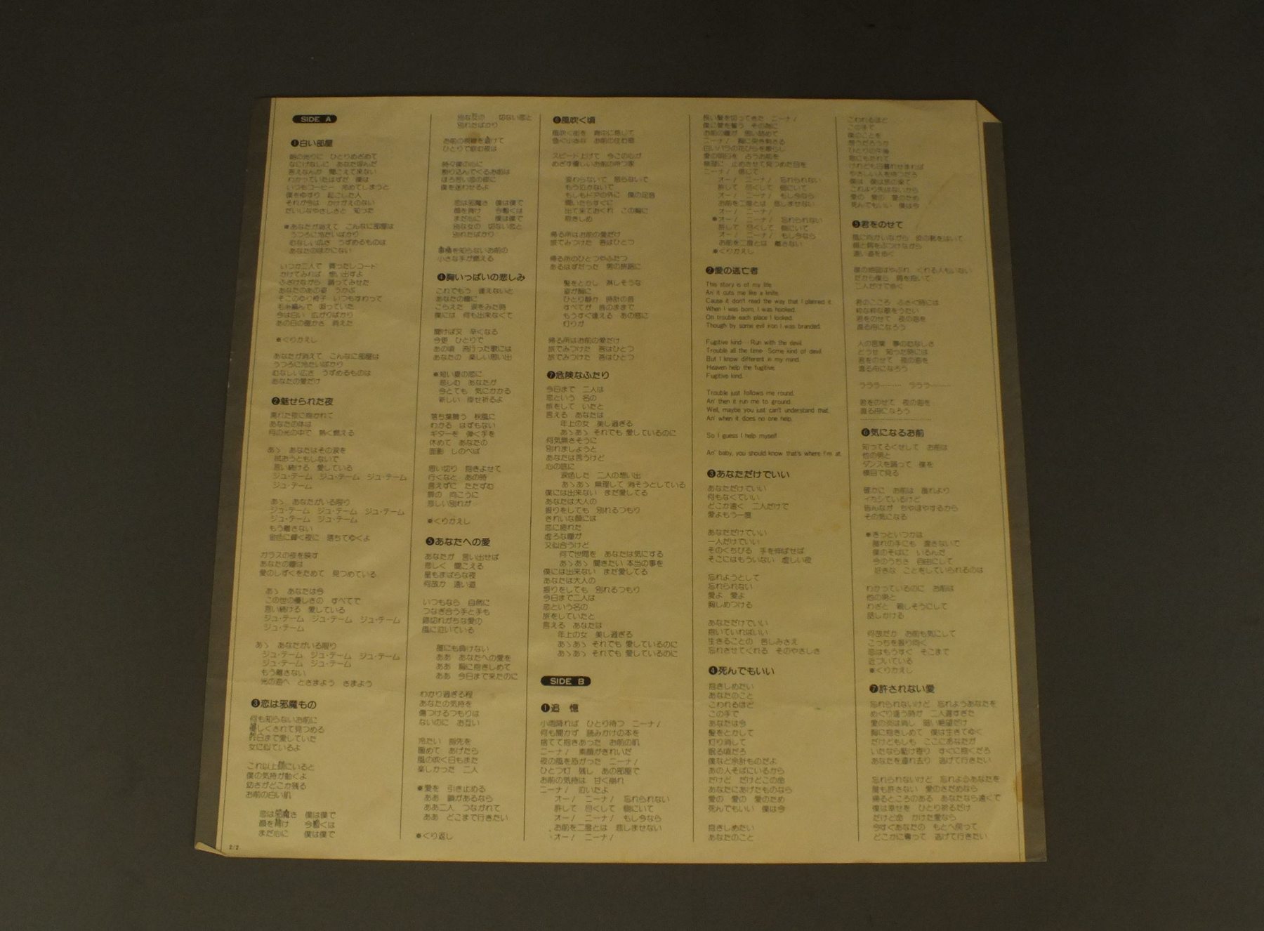 KENJI SAWADA沢田研二/PERFECT 14パーフェクト14 MR7501 製造国:日本盤 / Media:LP外観:EX盤の状態:VG+帯:EX 価格(税込):¥440(売約済) 送料 7inch:定形外郵便 360円~LP:定形外郵便 660円~送料は、注文の最終画面で確認頂けます。 > > KENJI SAWADA/PERFECT 14 外観 (EX)特記事項:天抜け。カードによごれやシワ外観EXの共通説明:ダメージが限定的。中古品としては保存状態がよい方。シミ、ヨゴレ、スレ 少し~軽度。 盤の状態 (VG+)特記事項:薄いスリキズ・細かいスレやや多め。プチ出そうな小キズ、線キズは数カ所で、全体的には軽微なものが中心です。少し聴いてみましたが、音自体はしっかりクリアーに鳴っているようでした。盤VG+の共通説明:盤面にスリキズが多少~やや有り、音に出そうなものも多少ある。 帯の状態 (EX):特記なし。 Tweet それぞれの画像をクリックすると、大きい写真が見られます こちらの商品もお勧めです 1,650円 MOMOE YAMAGUCHI山口百恵 / MOBIUS`S GAMEメビウス・ゲーム 990円 MASAMICHI SUGI杉真理 / STARGAZERスターゲイザー 770円 CHAGE & ASUKAチャゲ&飛鳥 / 4th ALBUN 21 CENTURY21世紀 880円 YOUSUI INOUE井上陽水 / EVERY NIGHT 1,320円 SHOGO HAMADA & THE FUSE浜田省吾 / CLUB SURFBOUND 770円 MIYUKI NAKAJIMA中島みゆき / OAKERINASAIおかえりなさい 990円 MIKI ASAKURA麻倉未稀 / LOVE AGAIN 1,320円 MARI AMACHI天地真理 / WHISPERING GREENLEAVES若葉のささやき/さよならだけ残して