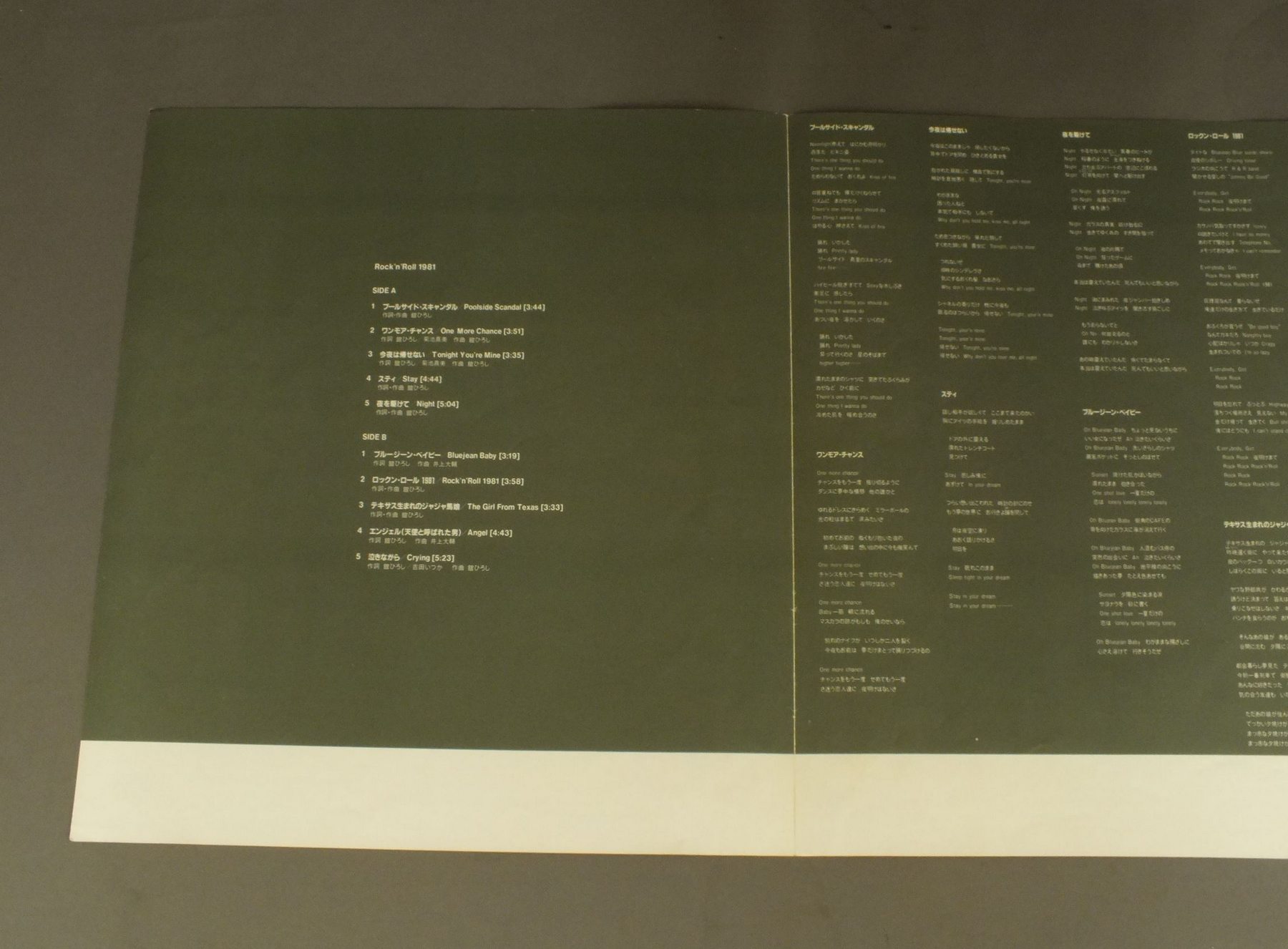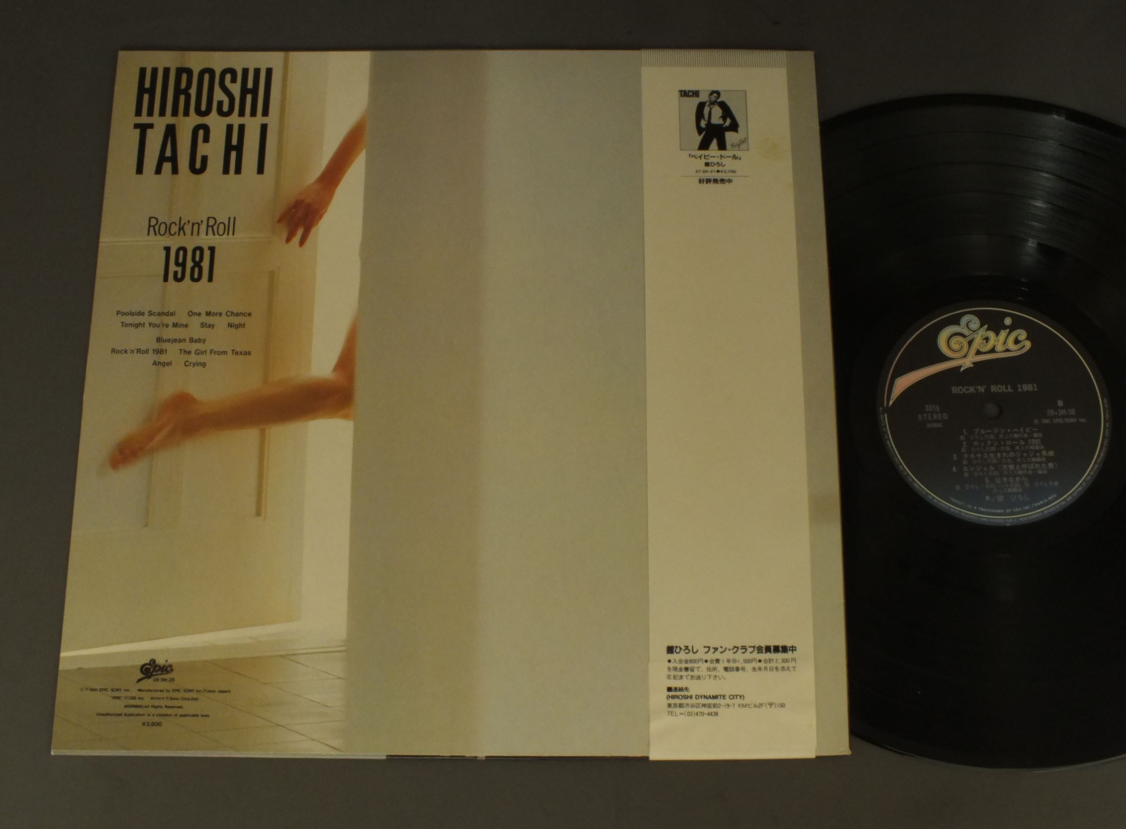 HIROSHI TACHI舘ひろし/ROCK`N` ROLL 1981ロックン・ロール1981 28 3H38 製造国:日本盤 / Media:LP外観:EX+盤の状態:EX帯:EX 価格(税込):¥770(売約済) 送料 7inch:定形外郵便 360円~LP:定形外郵便 660円~送料は、注文の最終画面で確認頂けます。 > > HIROSHI TACHI/ROCK`N` ROLL 1981 外観 (EX+)特記事項:特記なし。外観EX+の共通説明:中古としては美品、一見してきれいでダメージが軽微。シミ、ヨゴレ、スレ有っても僅か~少し。 盤の状態 (EX)特記事項:薄いスリキズ・スレ軽くある感じ。軽微なものの様子です。盤EXの共通説明:盤面のスリキズが薄いものが少し~軽度 音に出そうなものは無いように見える(軽微なソフトティック音は除く)。 帯の状態 (EX):特記なし。 Tweet それぞれの画像をクリックすると、大きい写真が見られます こちらの商品もお勧めです 770円 MASAAKI HIRAO平尾昌晃 / BIG STAR SERIESビッグスター・シリーズ 平尾昌晃 660円 BAKUFU SLUMPA爆風スランプ / YOIよい 1,210円 EIKICHI YAZAWA矢沢永吉 / KISS ME PLEASEキス・ミー・プリーズ 770円 EMU絵夢 / 2nd ALBUMII 1,320円 KEIKO SAITO斉藤慶子 / KEIKO MONO OMOI慶子、もの想い 880円 YOUSUI INOUE井上陽水 / NO INVITATION SHOW招待状のないショー 660円 TULIPチューリップ / MUGEN KIDO無限軌道 770円 YUMI MATSUTOYA松任谷由実 / DA・DI・DA