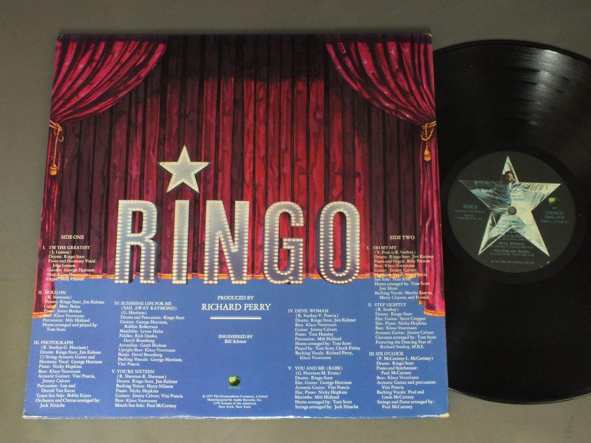 RINGO STAR/RINGO SWAL3413 製造国:米国盤 / Media:LP外観:EX盤の状態:EX+ 価格(税込):¥1,100(売約済) 送料 7inch:定形外郵便 360円~LP:定形外郵便 660円~送料は、注文の最終画面で確認頂けます。 > > RINGO STAR/RINGO 外観 (EX)特記事項:見開きにシミ。外観EXの共通説明:ダメージが限定的。中古品としては保存状態がよい方。シミ、ヨゴレ、スレ 少し~軽度。 盤の状態 (EX+)特記事項:極薄いスリキズ・スレ少し。一見してきれいな状態です。盤EX+の共通説明:盤面の極薄いスリキズ、スレ少し程度 音に出そうなものは無いように見える(極軽微なソフトティック音は除く)。 Tweet それぞれの画像をクリックすると、大きい写真が見られます こちらの商品もお勧めです 990円 PAUL MCCARTNEY / MCCARTNEY 2 770円 WINGS / VENUS AND MARS 3,080円 JOHN LENNON - YOKO ONOジョン・レノン/ヨーコ・オノ / DOUBLE FANTASYダブル・ファンタジー 1,320円 WINGS / VENUS AND MARS 550円 BEATLES / BEATLE TALK ( INTERVIEW 1964 & 66 ) UNOFFICAL RELEASE 2,200円 JOHN LENNON / MASTER SHOWMAN ( ORIGNAL MASTER RECORDING LAST LIVE ) UNOFFICIAL RELEASE 1,870円 BEATLES / BEATLES 1967-1970 770円 WINGS / VENUS AND MARS