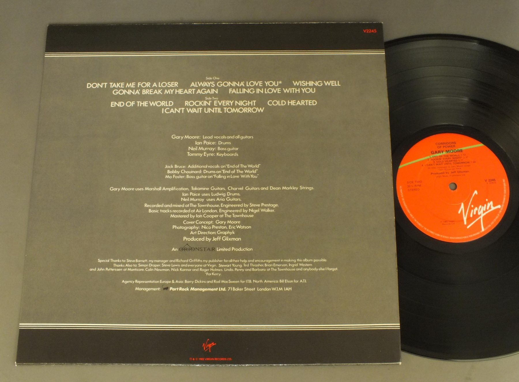 GARY MOORE/CORRIDORS OF POWER + FREE SINGLE V2245 製造国:英国盤 / Media:LPMatrix:A2 B3 / 7INCH A1 B2 外観:EX+盤の状態:EX 価格(税込):¥2,750(売約済) 送料 7inch:定形外郵便 360円~LP:定形外郵便 660円~送料は、注文の最終画面で確認頂けます。 > > GARY MOORE/CORRIDORS OF POWER + FREE SINGLE 外観 (EX+)特記事項:特記なし。外観EX+の共通説明:中古としては美品、一見してきれいでダメージが軽微。シミ、ヨゴレ、スレ有っても僅か~少し。 盤の状態 (EX)特記事項:薄いスリキズ・スレ軽くある感じ。殆どが軽微なものの様子です。盤EXの共通説明:盤面のスリキズが薄いものが少し~軽度 音に出そうなものは無いように見える(軽微なソフトティック音は除く)。 Tweet それぞれの画像をクリックすると、大きい写真が見られます こちらの商品もお勧めです 1,650円 IN/HUMANITY / HISTRORY BEHINED THE MYSTERY 1,650円 HEAVEN / HEAVEN 1,650円 HELIX / NO REST FOR THE WICKED 770円 SCHON & HAMMER / HERE TO STAY 1,760円 QUIET RIOT / CONDITION CRITICAL 770円 707 / MEGA FORCE7 1,540円 SAMSON / SURVIVORS 1,100円 ARASKA / HEART OF THE STORM