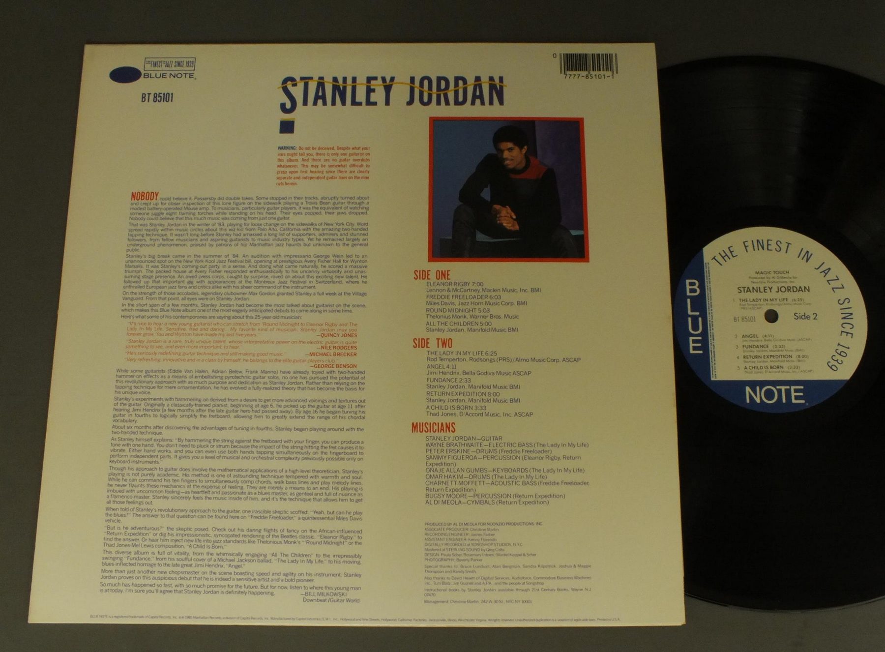 STANLEY JORDAN/MAGIC TOUCH BT85101 製造国:米国盤 / Media:LP外観:EX+盤の状態:EX 価格(税込):¥660(売約済) 送料 7inch:定形外郵便 360円~LP:定形外郵便 660円~送料は、注文の最終画面で確認頂けます。 > > STANLEY JORDAN/MAGIC TOUCH 外観 (EX+)特記事項:特記なし。外観EX+の共通説明:中古としては美品、一見してきれいでダメージが軽微。シミ、ヨゴレ、スレ有っても僅か~少し。 盤の状態 (EX)特記事項:薄いスリキズ・スレ少しある感じ。一見してきれいな感じです。盤EXの共通説明:盤面のスリキズが薄いものが少し~軽度 音に出そうなものは無いように見える(軽微なソフトティック音は除く)。 Tweet それぞれの画像をクリックすると、大きい写真が見られます こちらの商品もお勧めです 1,320円 TOM COSTER / T.C. 1,650円 TONY LEE / STREET OF DREAMS 770円 CRUSADERS / IMAGES 1,320円 DAVID SANBORN / A CHANGE OF HEART 770円 TOM SCOTT / DESIRE 770円 DAVID SANBORN / BACKSTREET 770円 DEODATO / SOMEWHERE OUT THERE 990円 GROVER WASHINTON JR / COME MORNING