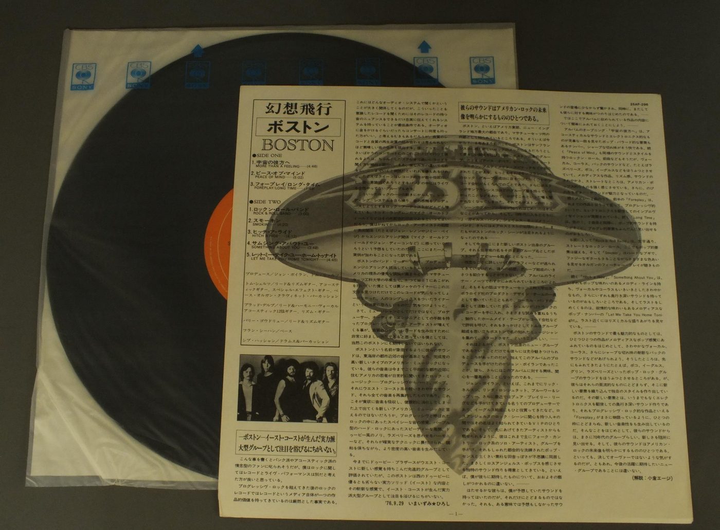BOSTONボストン/BOSTON幻想飛行 25AP296 製造国:日本盤 / Media:LP外観:EX盤の状態:EX 価格(税込):¥550(売約済) 送料 7inch:定形外郵便 360円~LP:定形外郵便 660円~送料は、注文の最終画面で確認頂けます。 > > BOSTON/BOSTON 外観 (EX)特記事項:特記なし。外観EXの共通説明:ダメージが限定的。中古品としては保存状態がよい方。シミ、ヨゴレ、スレ 少し~軽度。 盤の状態 (EX)特記事項:薄いスリキズ・スレ軽くある感じ。軽微なものの様子です。盤EXの共通説明:盤面のスリキズが薄いものが少し~軽度 音に出そうなものは無いように見える(軽微なソフトティック音は除く)。 Tweet それぞれの画像をクリックすると、大きい写真が見られます こちらの商品もお勧めです 1,100円 STYX酢亭久洲(スティクス) / REPPOO烈風 1,650円 STYXスティクス / PARADISE THEATREパラダイス・シアター 660円 DOOBIE BROTHERSドゥービー・ブラザーズ / ONE STEP CLOSERワン・ステップ・クローサー 1,540円 FIREFALLファイアフォール / CLOUDS ACROSS THE SUNロッキーの夕陽 440円 J.GEILS BANDJ.ガイルズ・バンド / SANCTUARY.サンクチュアリー(禁猟区) 1,210円 SILVER CONDORシルバー・コンドル / SILVER CONDOR夜明けのテイク・オフ 1,320円 KENNY ROGERS & THE FIRSY EDITIONケニー・ロジャーズとファースト・エディション / TELL IT ALL BROTHERテル・イット・オール・ブラザー 1,980円 RIC OCASEKリック・オケイセク / BEATITUDEビアティチュード